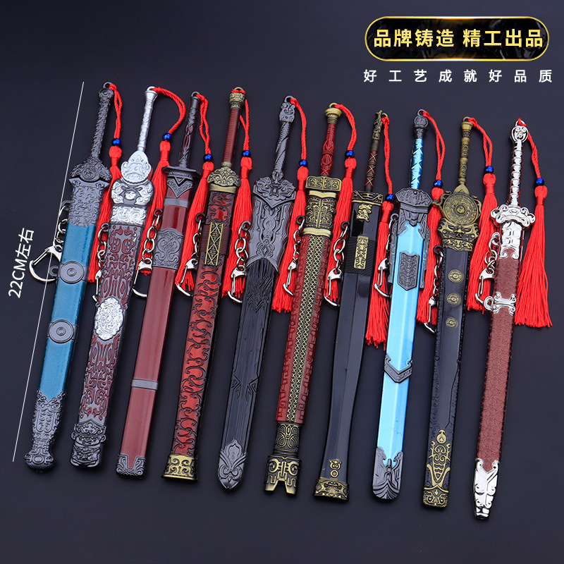 22CM-Сун Цюань с мечом; 22CM-Меч Цзылонга Итиана; Меч Дин Цинь, 22 см.; 22 см-меч Чжао Юнцин; 22CM-Чжоу Ю с мечом; 22 см-Волшебный меч; 22 см-Пожунский меч; 22CM-Меч гармонии Итянь; 22 см-водоотталкивающий меч; 22 см-меч Цинсяо; Меч Вэй Ван, 22 см