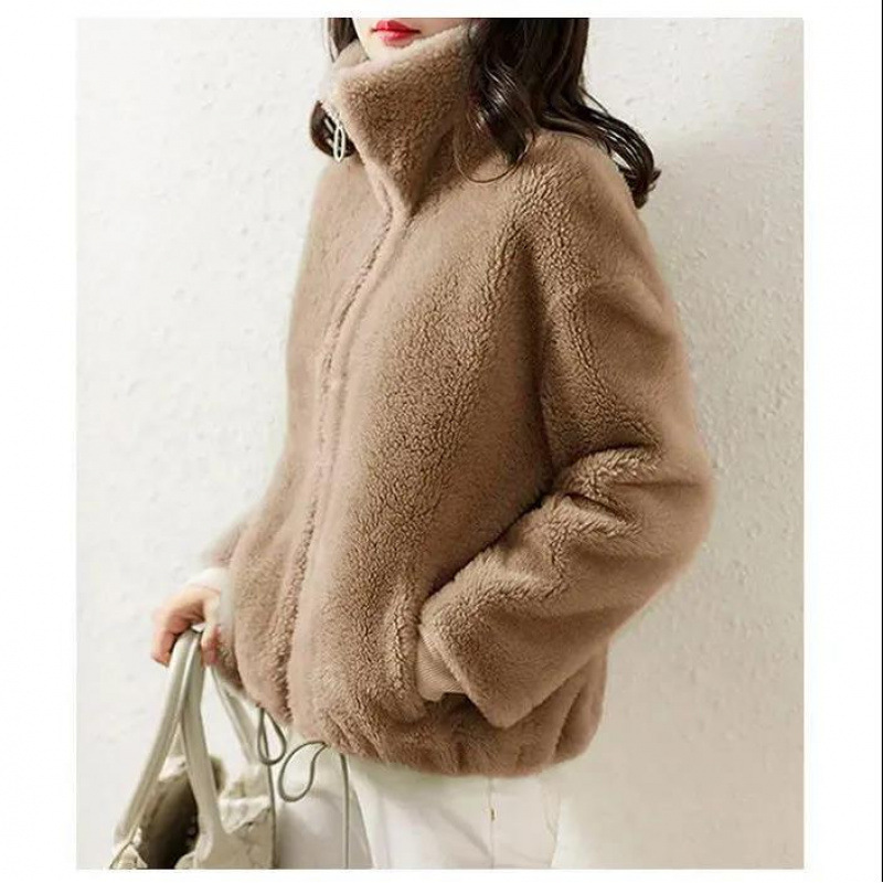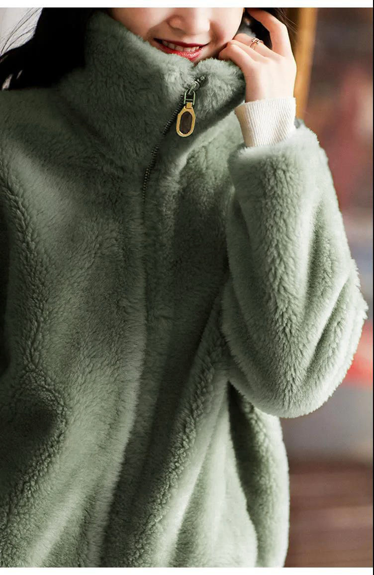 Плюшевый утолщение пальто женский прилив зимний флисс теплый высокий воротник свитер женский кардиган застежка-молния
