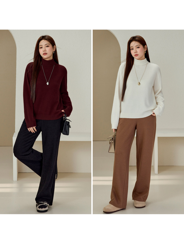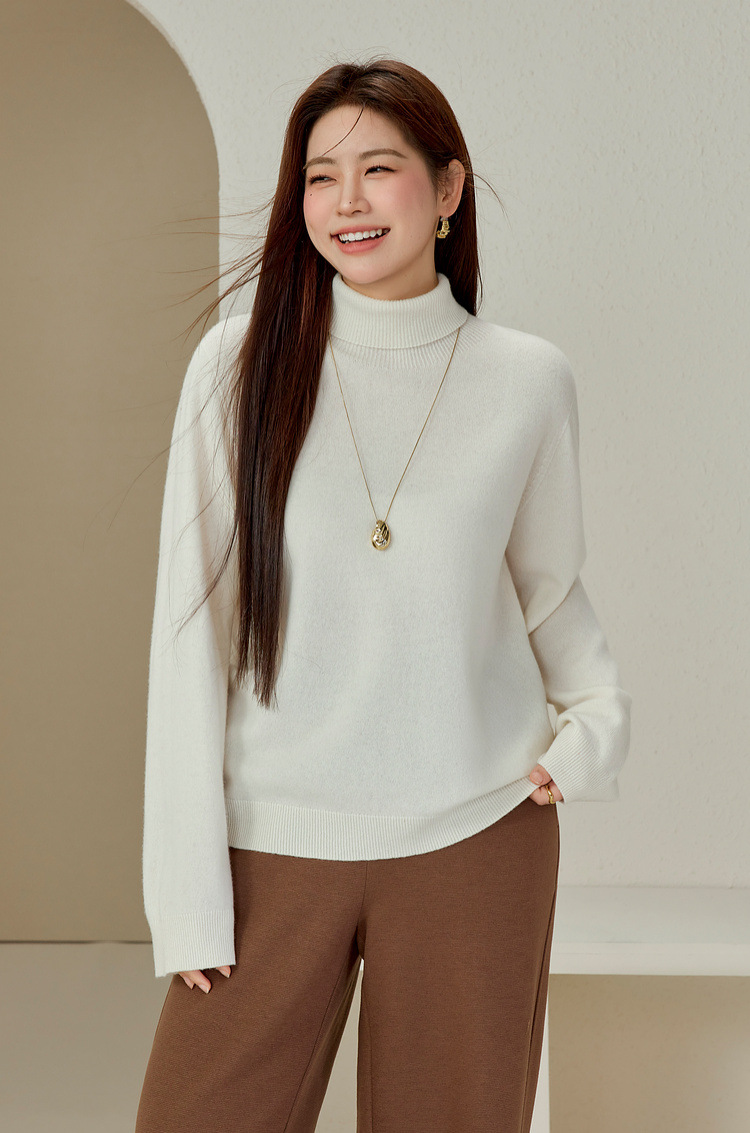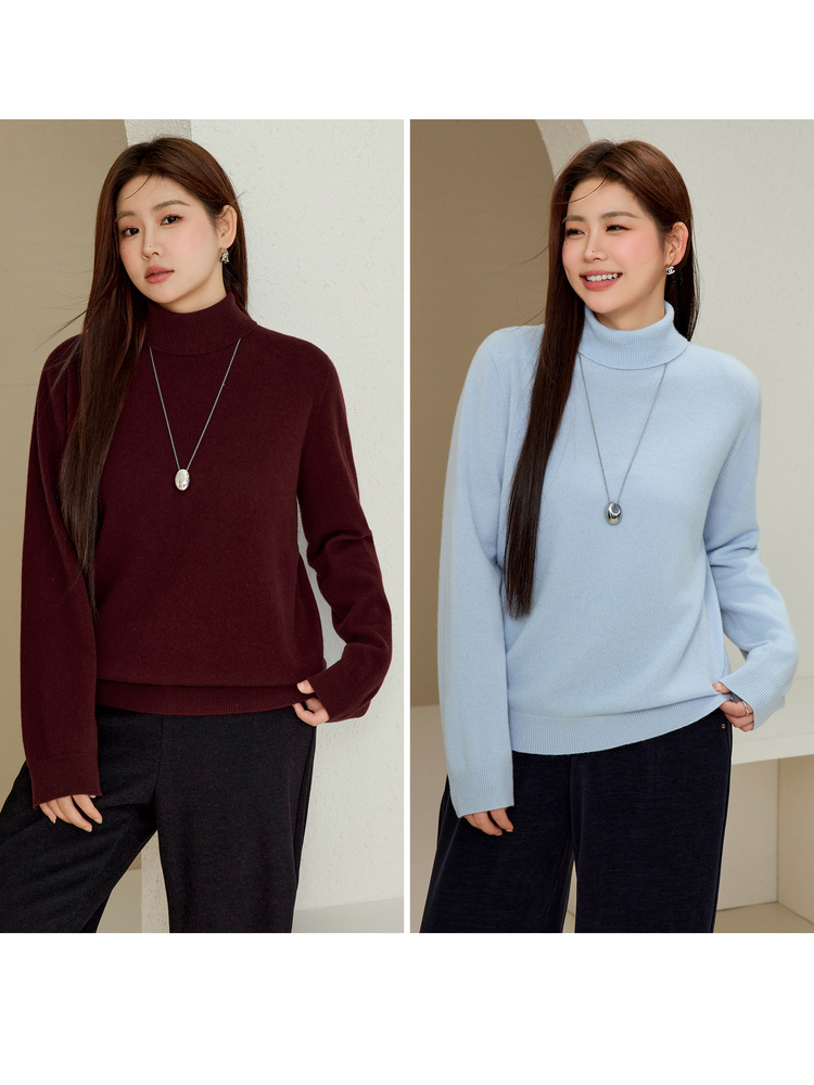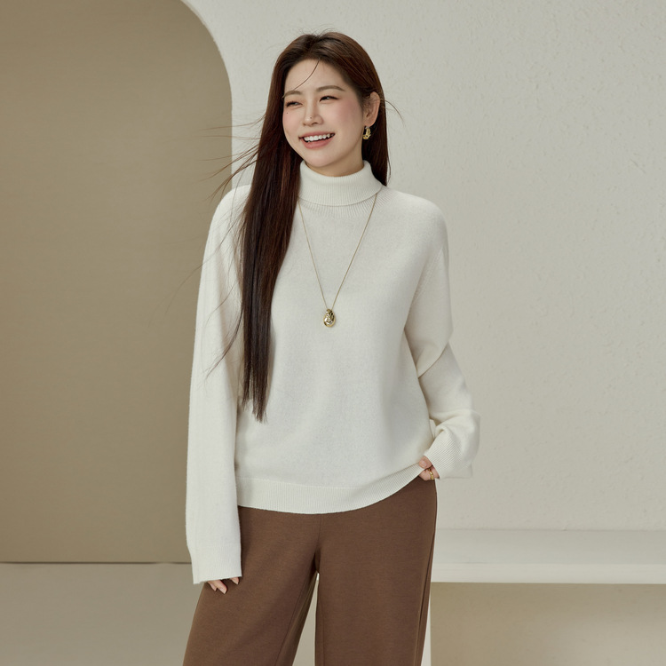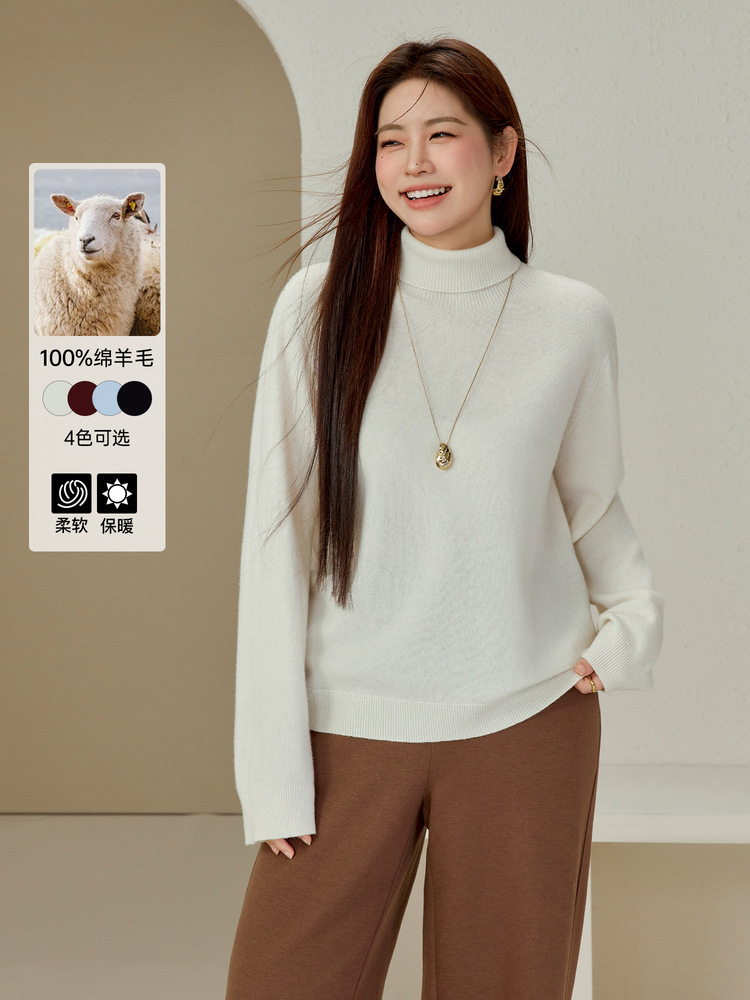 Цветное шоу большой размер женщины простой простой цвет овечьей шерсти темперамент дикий свитер толстый mm2024 зимний новый