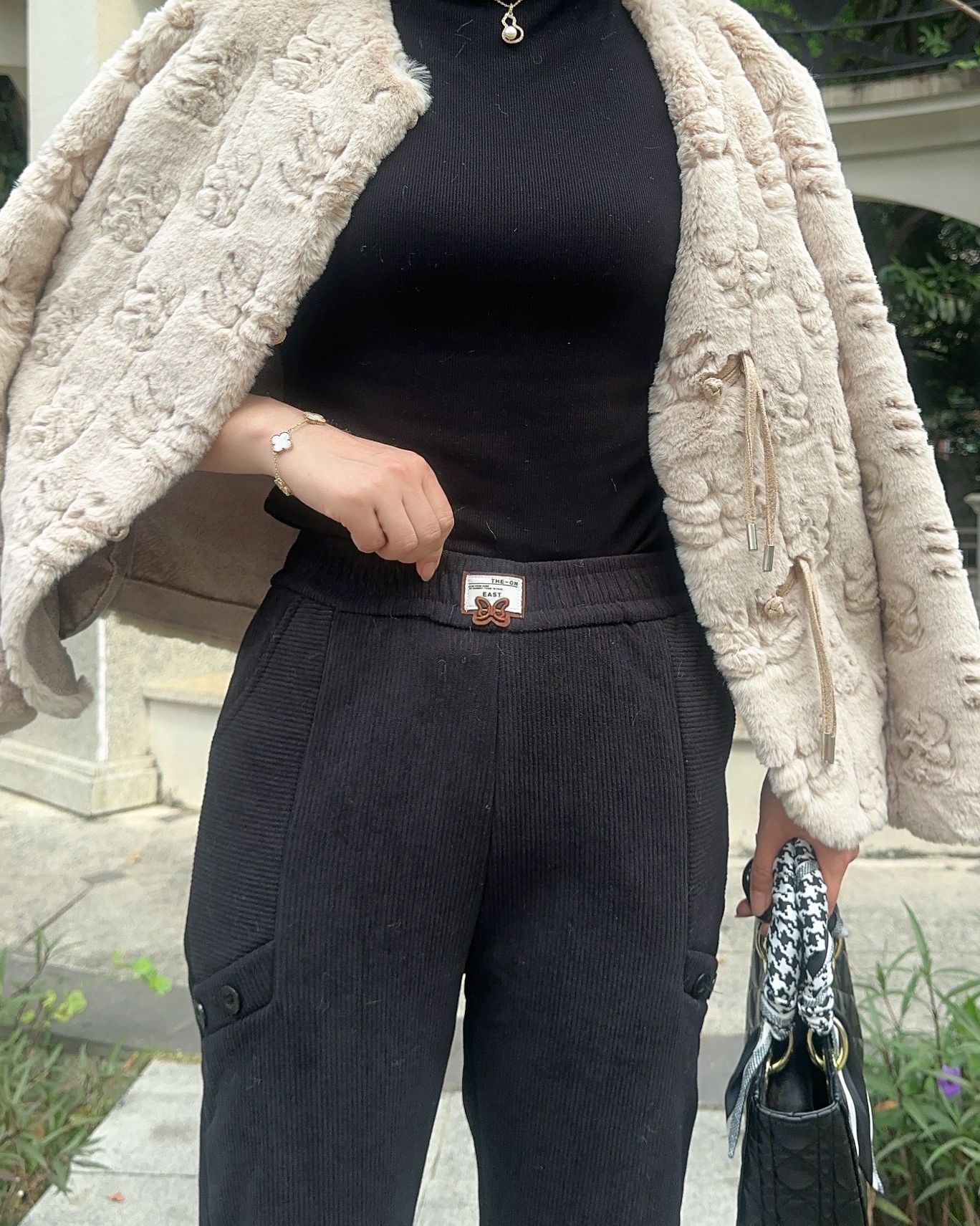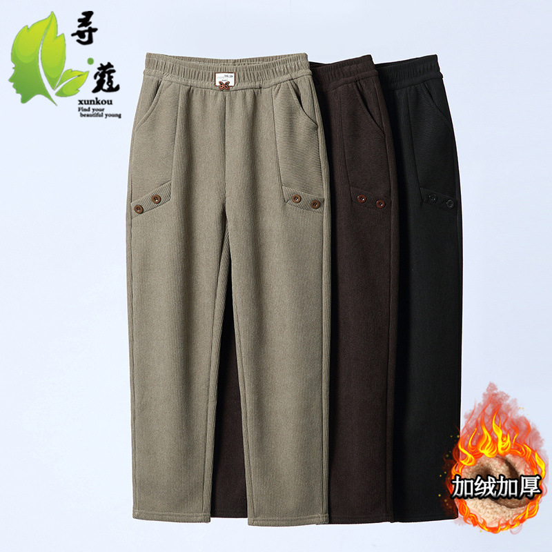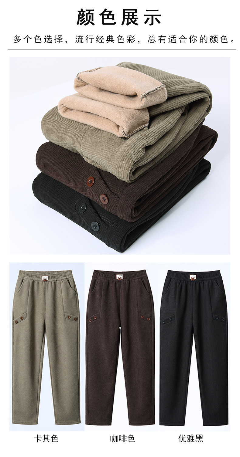 Брюки хаки [оксамитовые и утолщенные]; Черные брюки [оксамитовые и утолщенные]