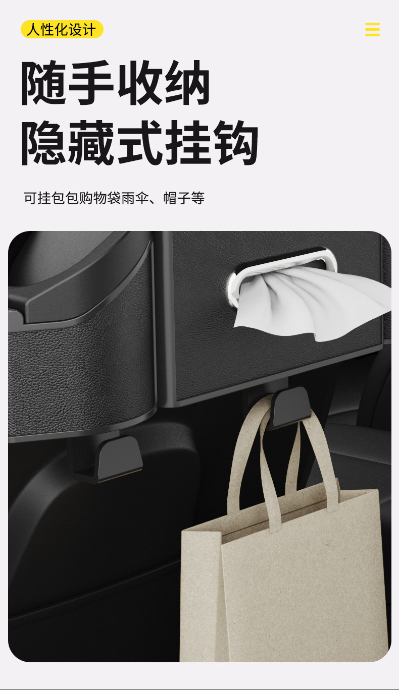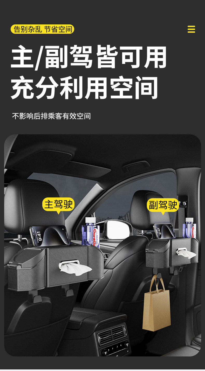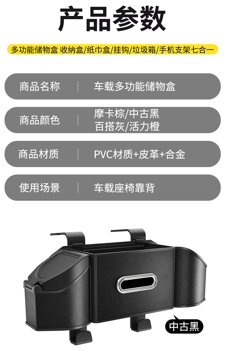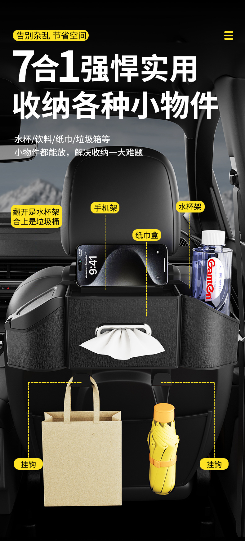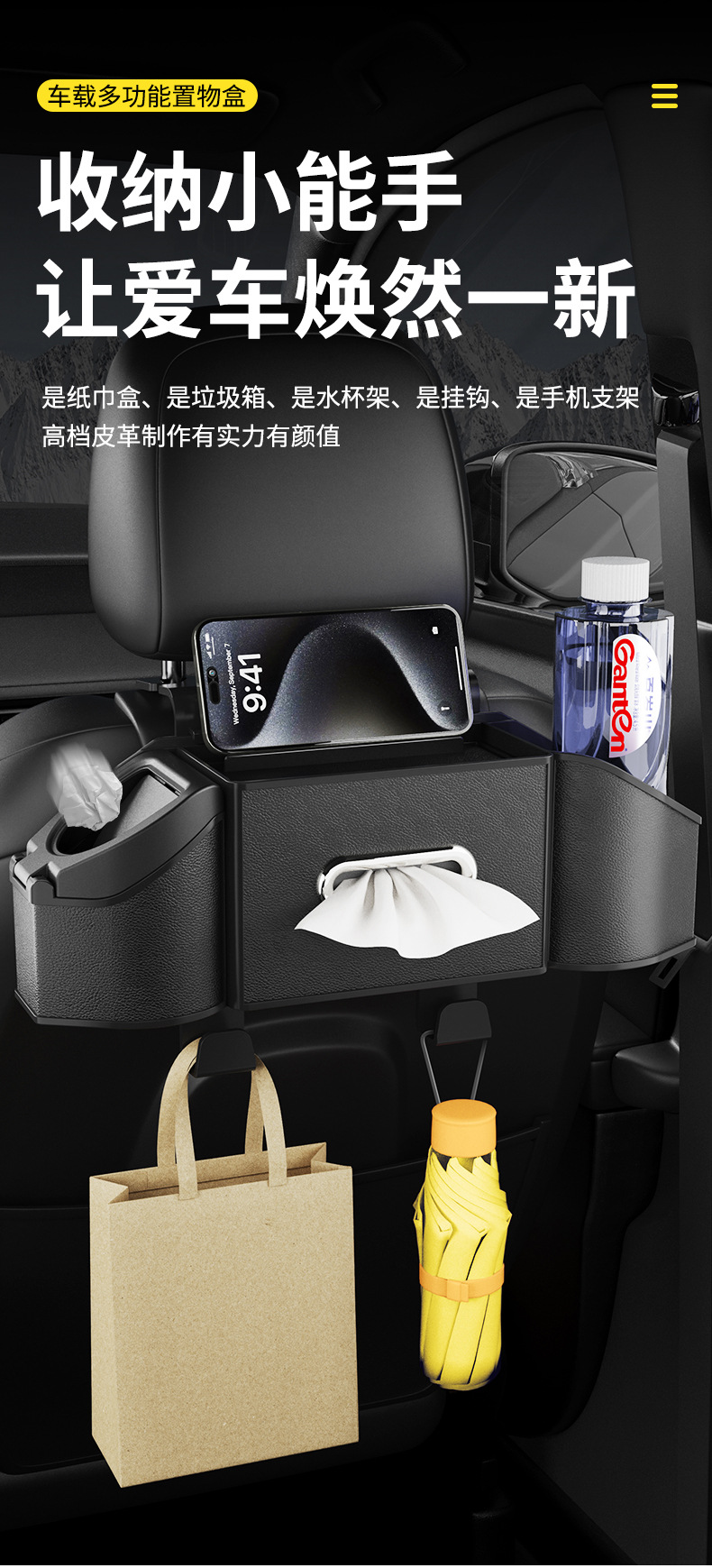 多功能储物盒收纳盒/纸巾盒/挂钩/垃圾箱/手机支架七合一