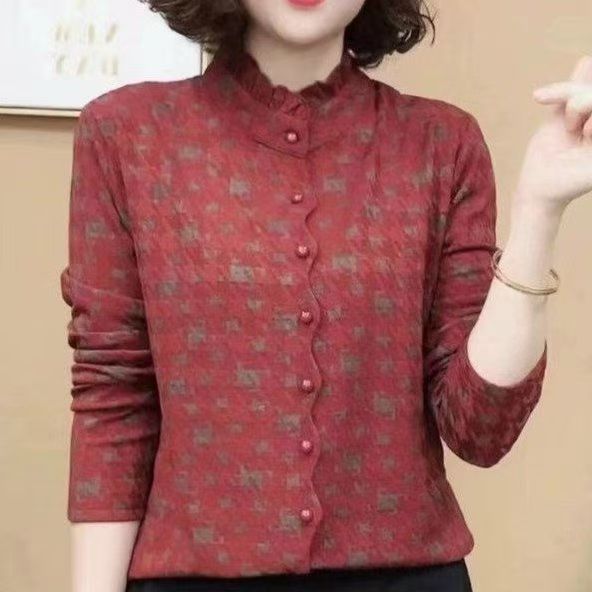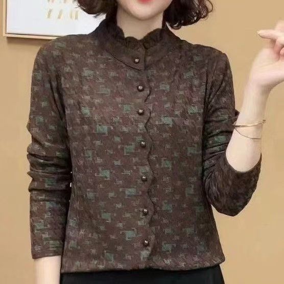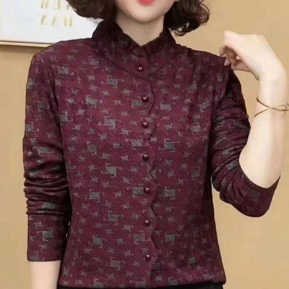 Элегантная женская футболка с длинным рукавом для женщин среднего и старшего возраста, весна-осень 2024, свободный крой, круглый вырез, одежда для мам, скрывающая живот