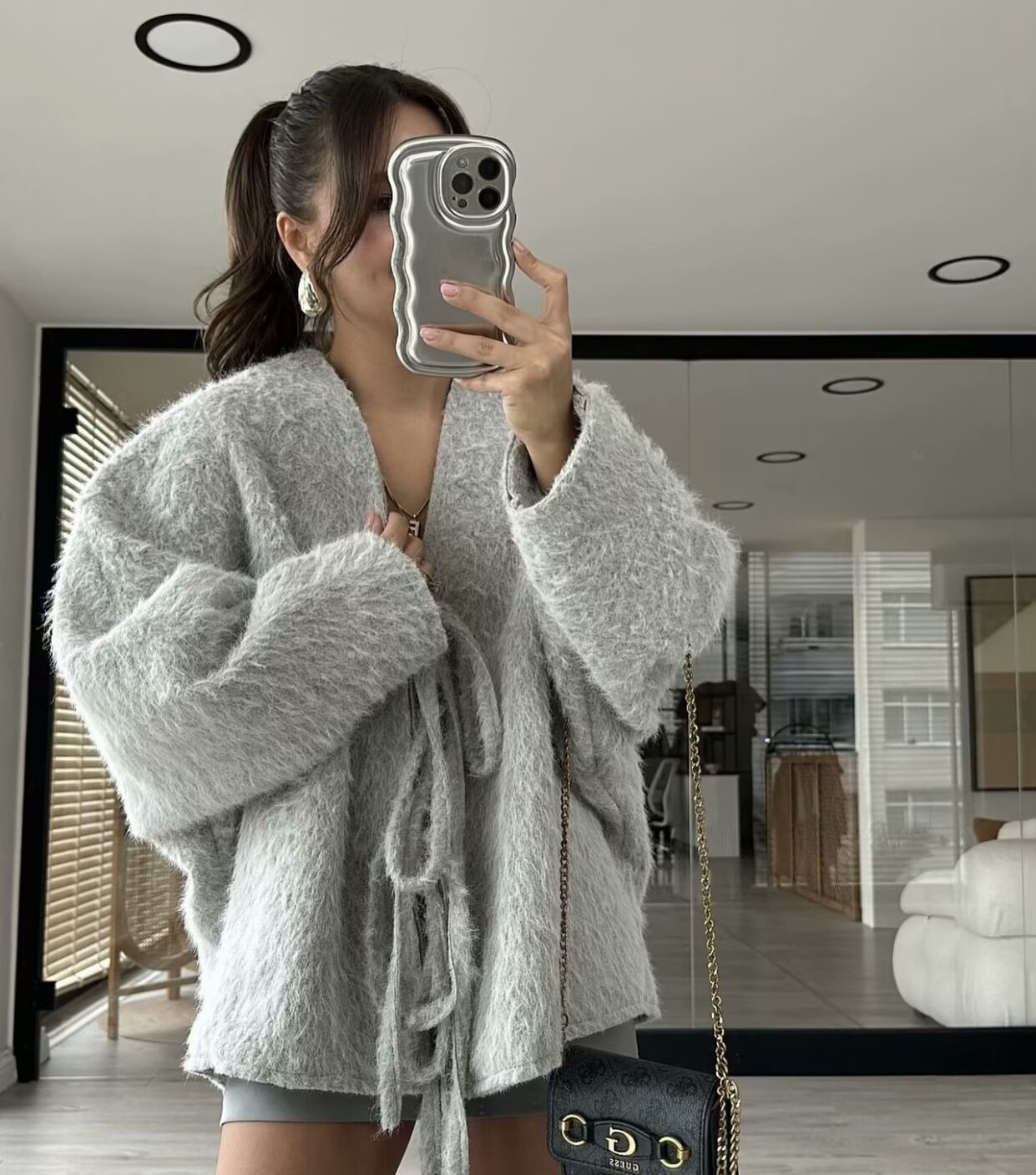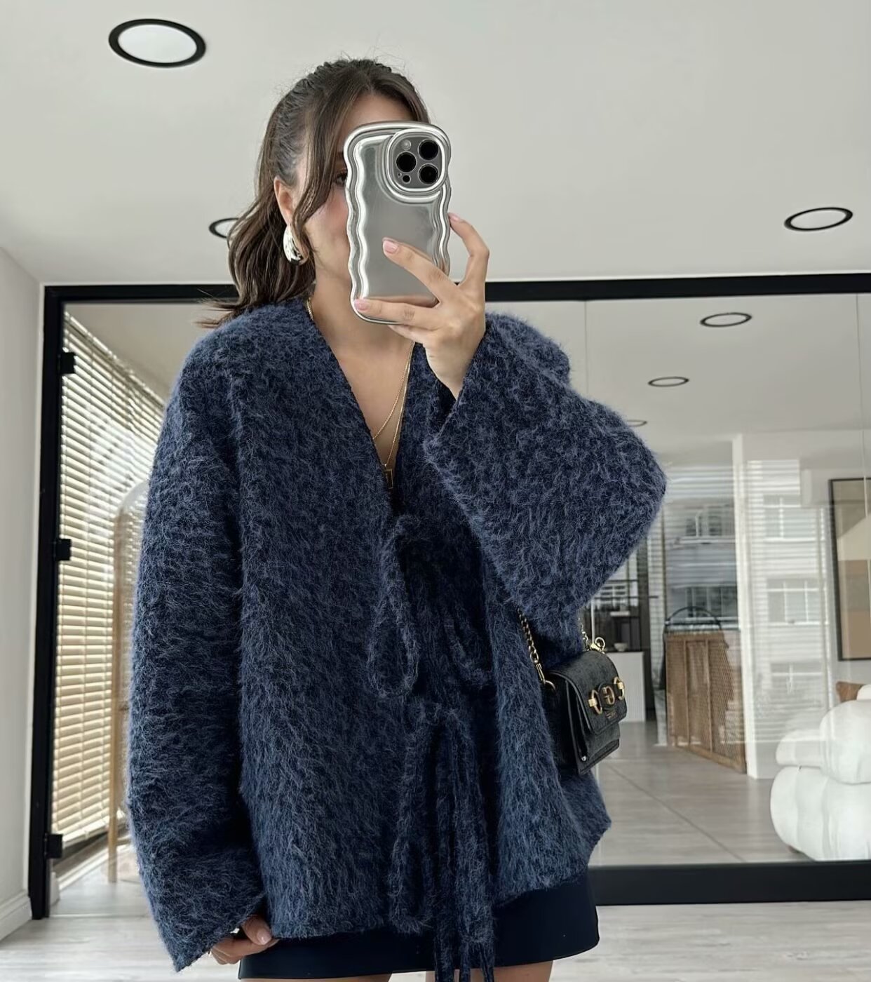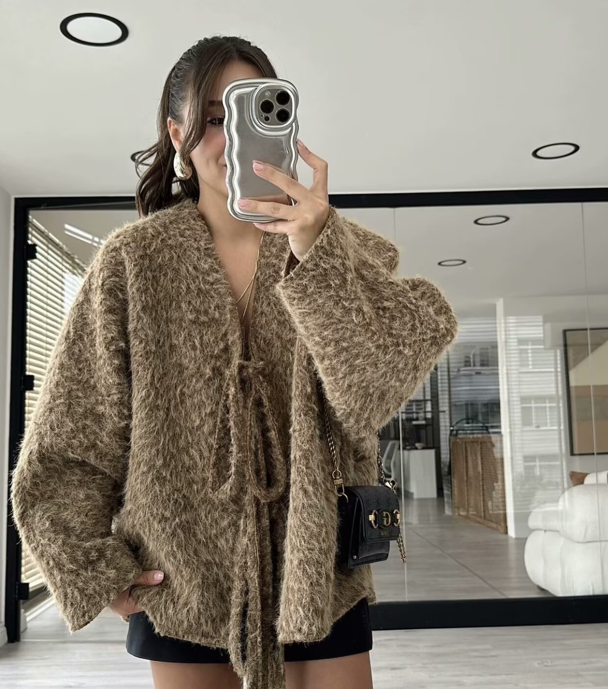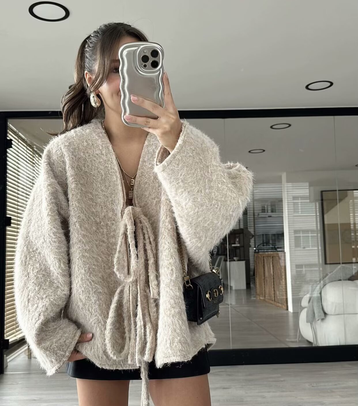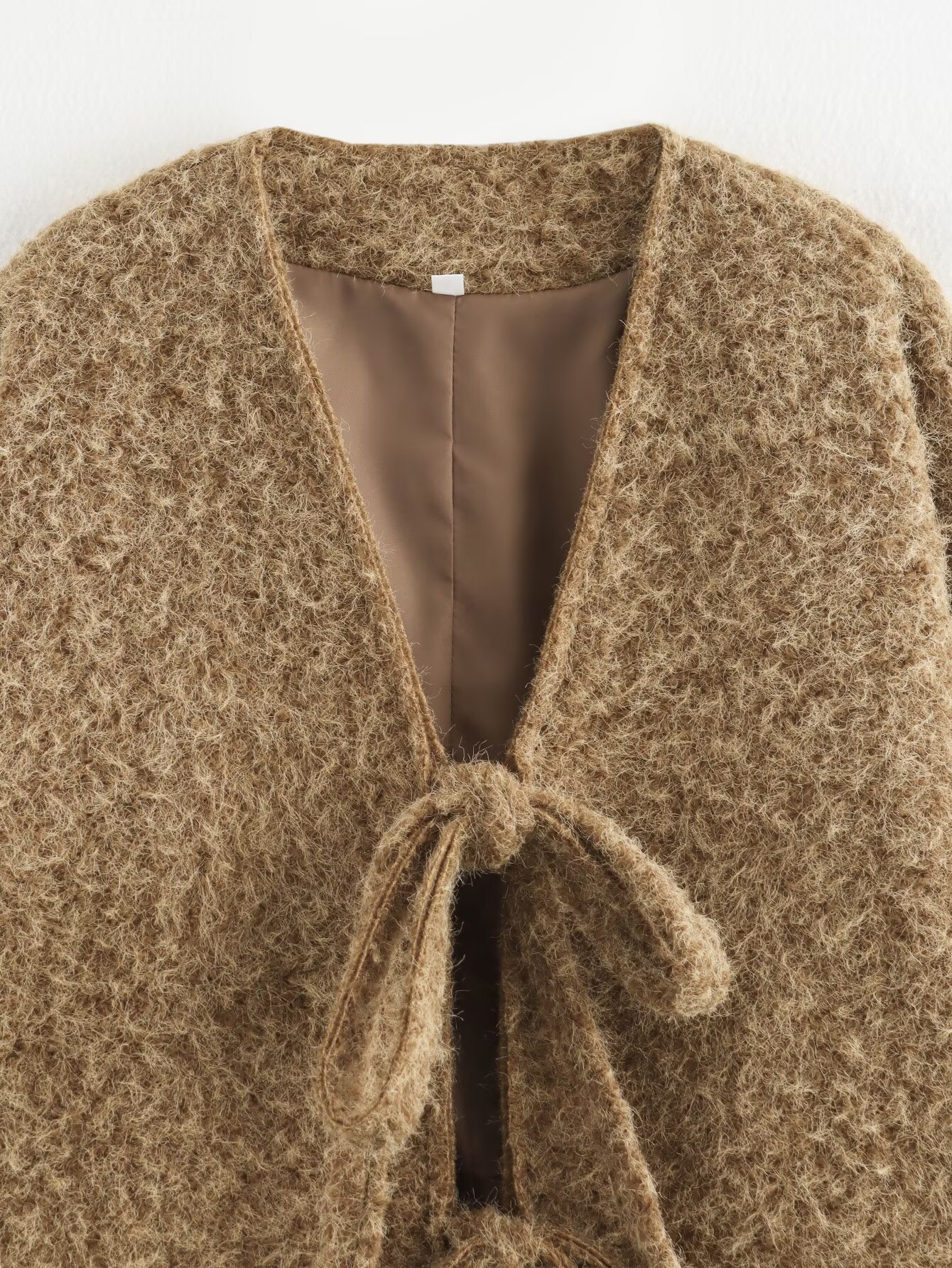 Женская одежда для внешней торговли, осень-зима 2025, в европейском и американском стиле, модная повседневная простая куртка с бантом и шнуровкой S8787