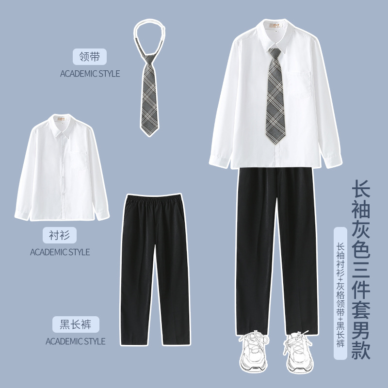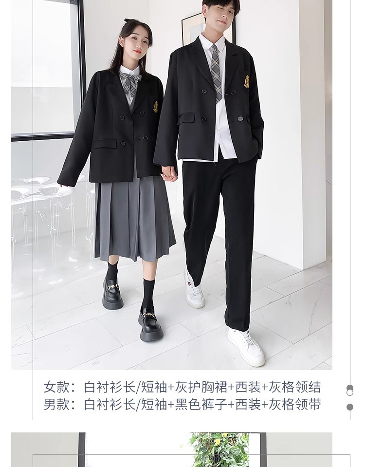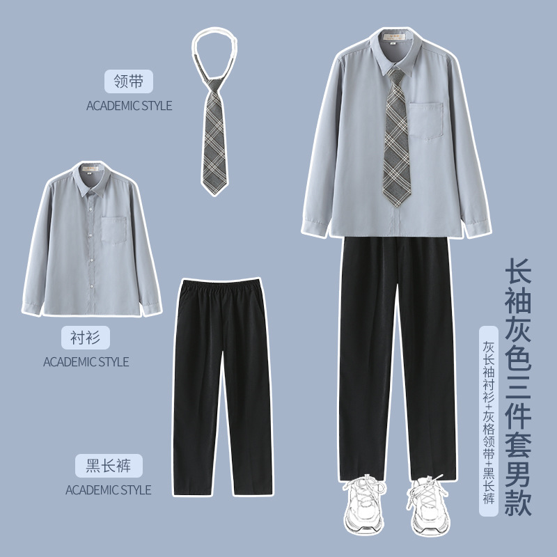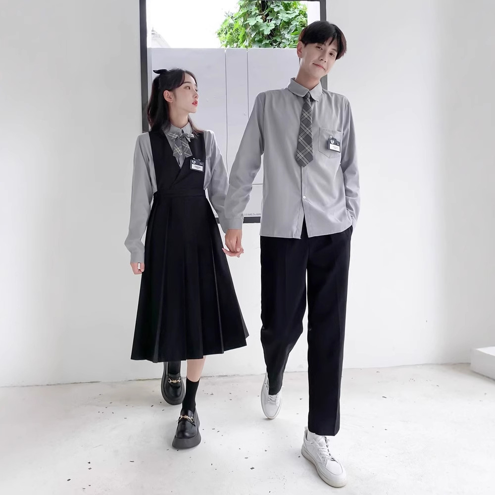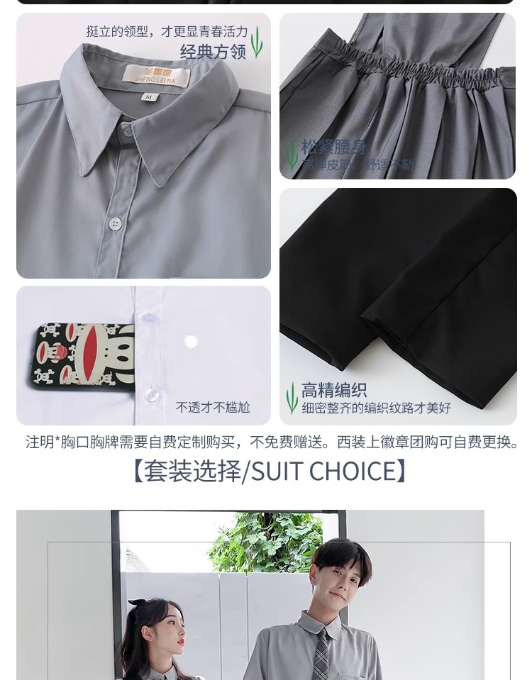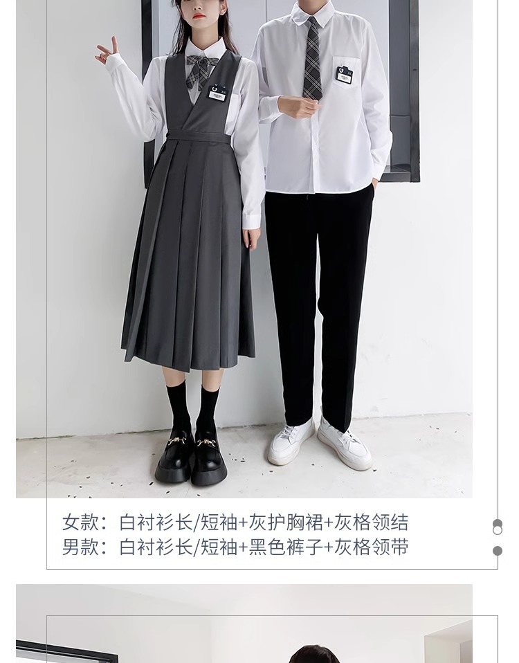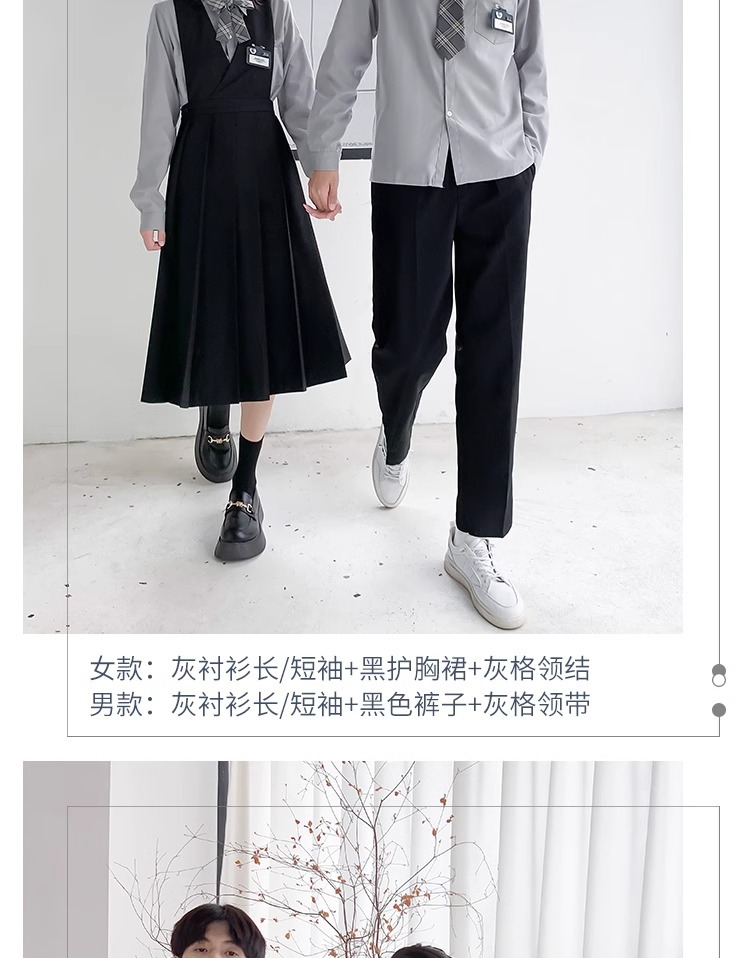 1 серый короткий рукав + черная юбка на груди + серый клетчатый галстук-бабочка; 2 серых коротких рукава + черные брюки + серый клетчатый галстук; 3 серых длинных рукава + черная юбка на груди + серый клетчатый галстук-бабочка; 4 серых длинных рукава + черные брюки + серый клетчатый галстук.; 5-серый длинный рукав + черная юбка на груди + черный костюм + серый клетчатый галстук-бабочка; 6 серых длинных рукавов + черные брюки + черный костюм + серый клетчатый галстук; 7 белых коротких рукавов + серая юбка на груди + серый клетчатый галстук-бабочка; 8 белых коротких рукавов + черные брюки + серый клетчатый галстук; 9 белых длинных рукавов + серая юбка на груди + серый клетчатый галстук-бабочка; 10 белых длинных рукавов + черные брюки + серый клетчатый галстук.; 11 белых длинных рукавов + серая юбка на груди + черный костюм + серый клетчатый галстук-бабочка; 12 белых коротких рукавов + черная юбка на груди + красный галстук-бабочка; 13 белых коротких рукавов + черные брюки + черный галстук; 14 белых длинных рукавов + черная юбка на груди + красный галстук-бабочка; 15 белых длинных рукавов + черные брюки + черный галстук; 16 белых длинных рукавов + черная юбка на груди + черный костюм + красный галстук-бабочка; 17 белых длинных рукавов + черные брюки + черный костюм + черный галстук; 18 белых длинных рукавов + черные брюки + черный костюм + черный галстук