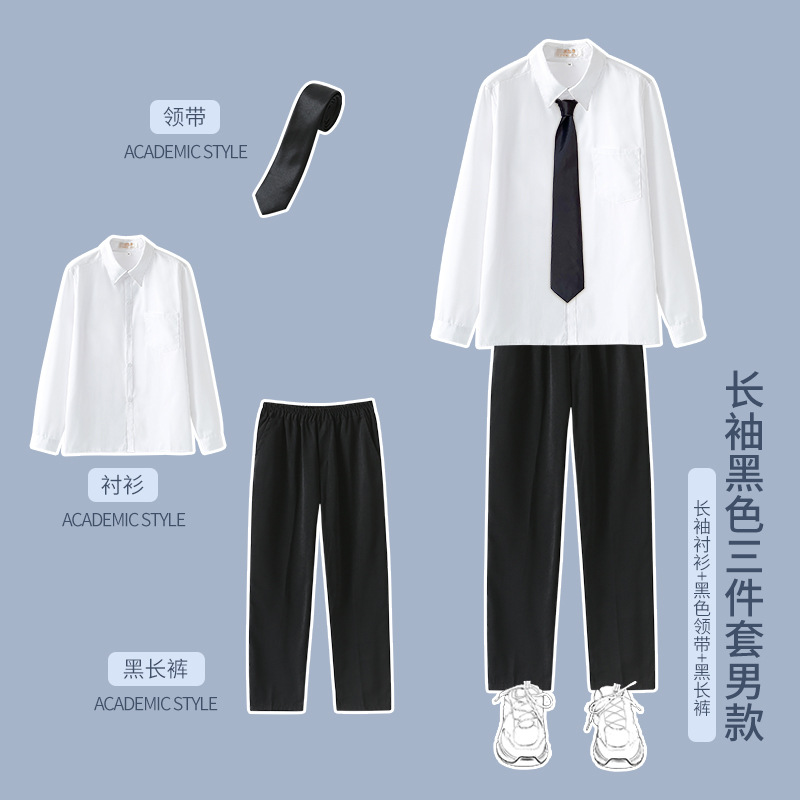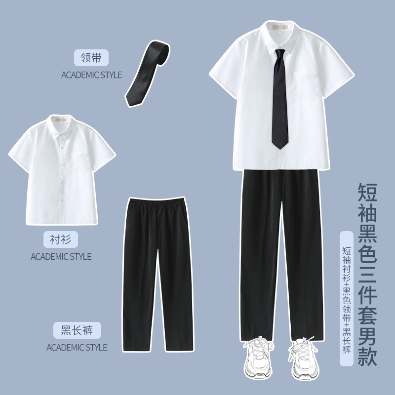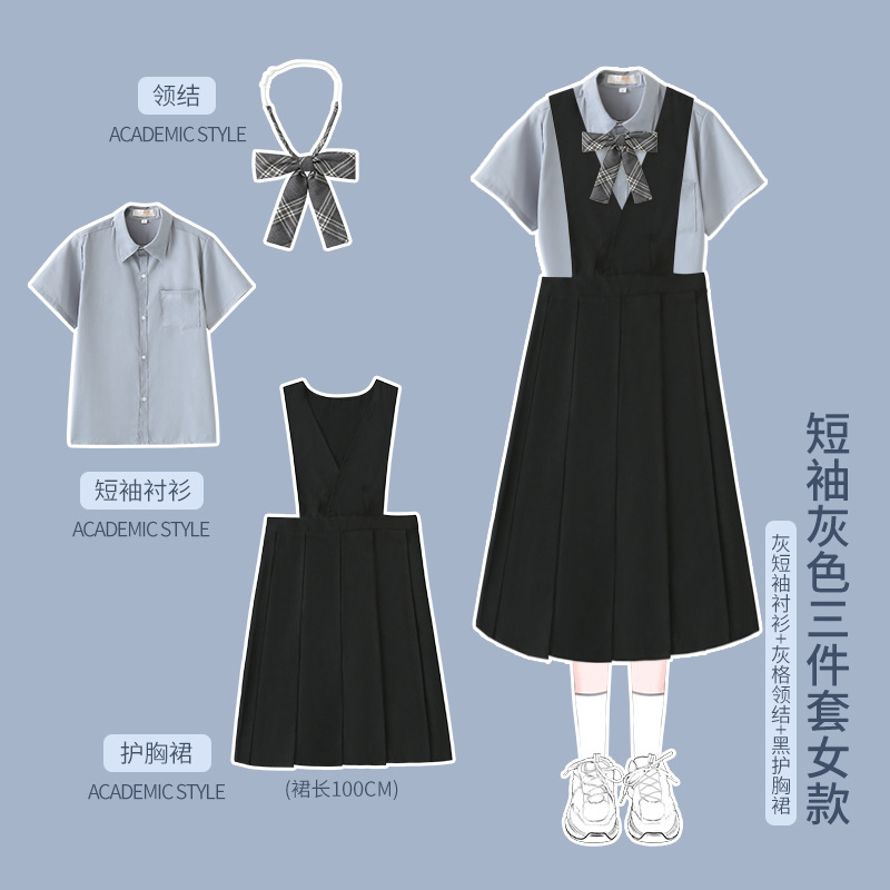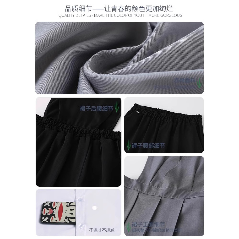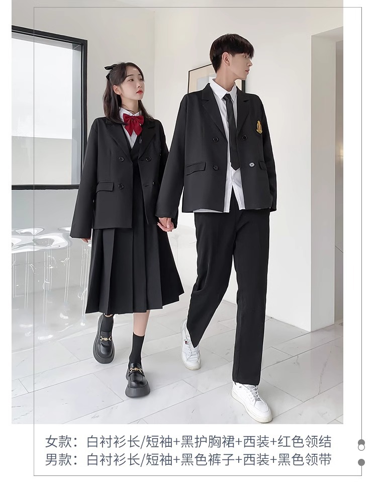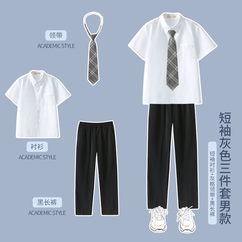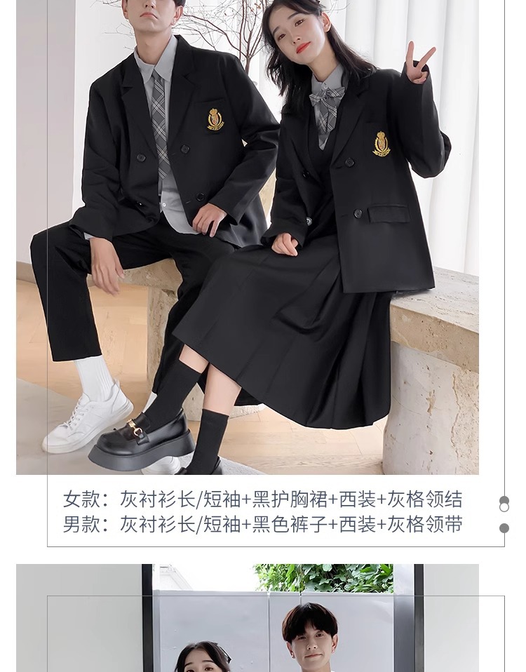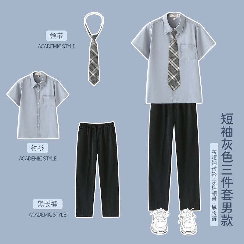 1 серый короткий рукав + черная юбка на груди + серый клетчатый галстук-бабочка; 2 серых коротких рукава + черные брюки + серый клетчатый галстук; 3 серых длинных рукава + черная юбка на груди + серый клетчатый галстук-бабочка; 4 серых длинных рукава + черные брюки + серый клетчатый галстук.; 5-серый длинный рукав + черная юбка на груди + черный костюм + серый клетчатый галстук-бабочка; 6 серых длинных рукавов + черные брюки + черный костюм + серый клетчатый галстук; 7 белых коротких рукавов + серая юбка на груди + серый клетчатый галстук-бабочка; 8 белых коротких рукавов + черные брюки + серый клетчатый галстук; 9 белых длинных рукавов + серая юбка на груди + серый клетчатый галстук-бабочка; 10 белых длинных рукавов + черные брюки + серый клетчатый галстук.; 11 белых длинных рукавов + серая юбка на груди + черный костюм + серый клетчатый галстук-бабочка; 12 белых коротких рукавов + черная юбка на груди + красный галстук-бабочка; 13 белых коротких рукавов + черные брюки + черный галстук; 14 белых длинных рукавов + черная юбка на груди + красный галстук-бабочка; 15 белых длинных рукавов + черные брюки + черный галстук; 16 белых длинных рукавов + черная юбка на груди + черный костюм + красный галстук-бабочка; 17 белых длинных рукавов + черные брюки + черный костюм + черный галстук; 18 белых длинных рукавов + черные брюки + черный костюм + черный галстук