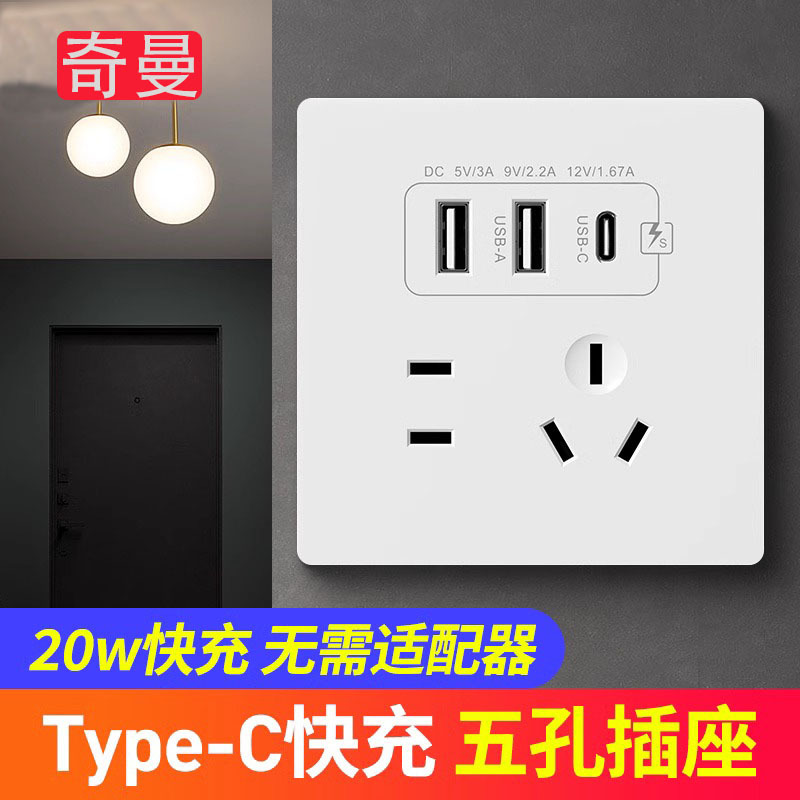 Тип Qiman 86 20W Быстрая зарядка USB розетка Панель настенный телефон зарядка Type- c Домашняя пятидверная розетка