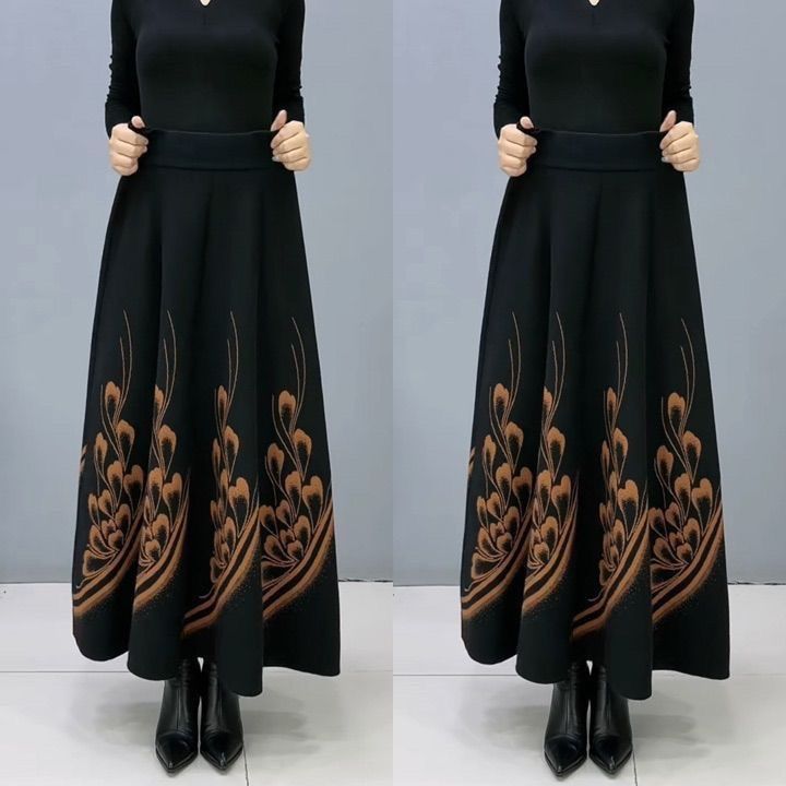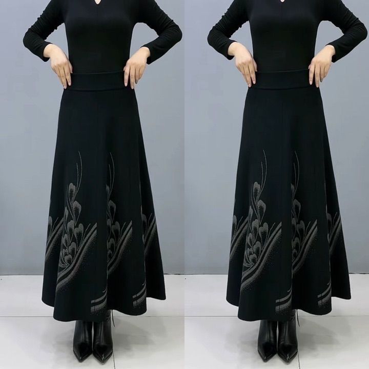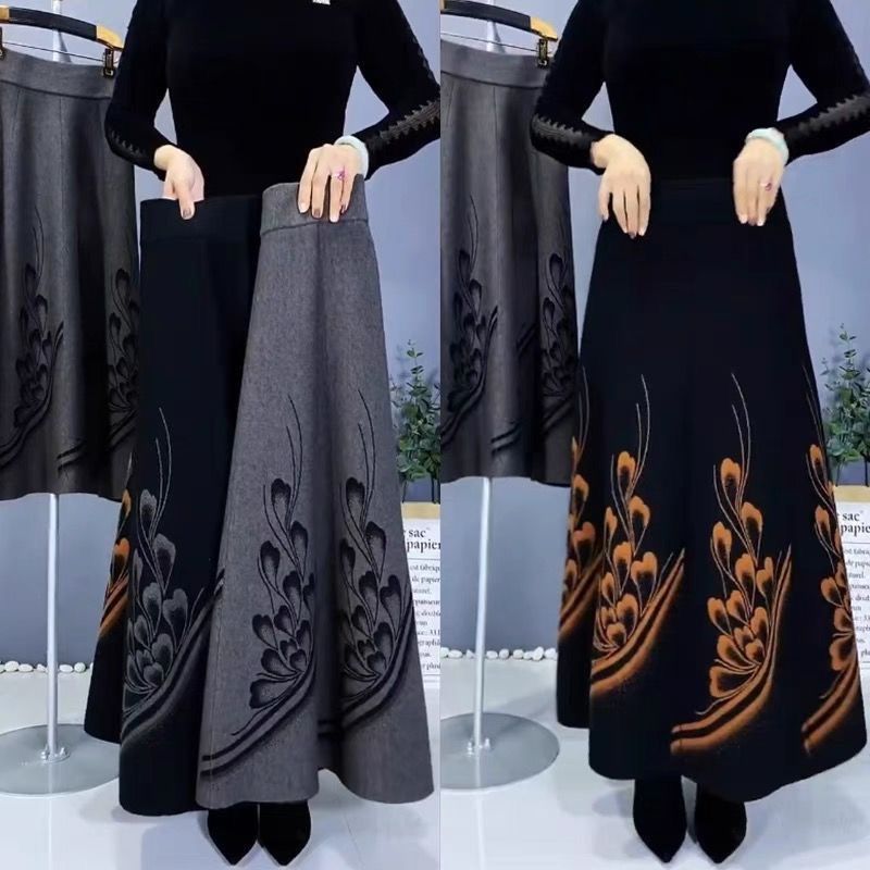 Трансграничная осень и зима толстая шерстяная юбка с бюстом женская высокая талия длинная юбка эластичная национальная юбка