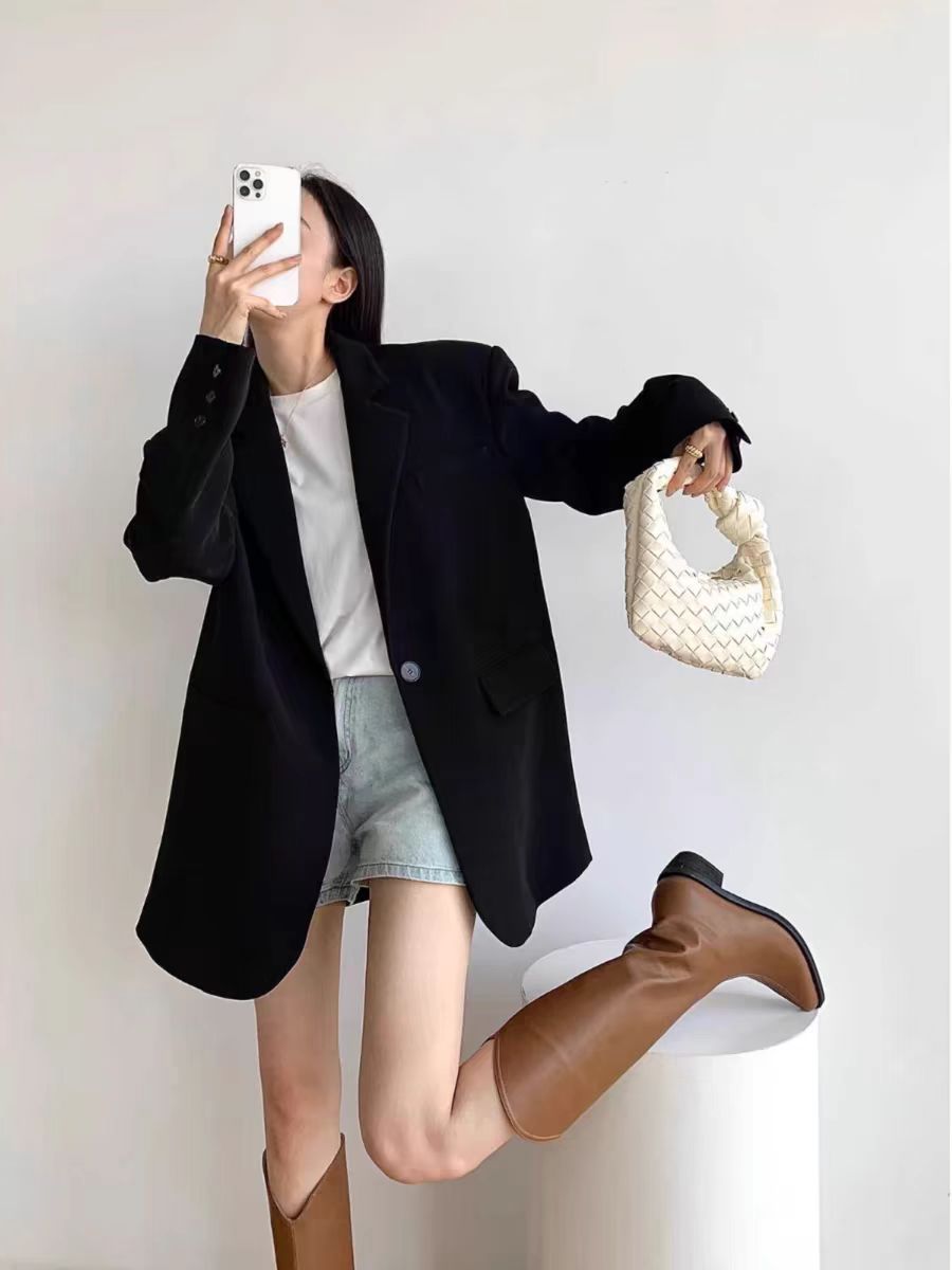Весенне-осенний костюм, черный темпераментный модный новый пиджак, повседневный маленький костюм в корейском стиле, маленький пиджак