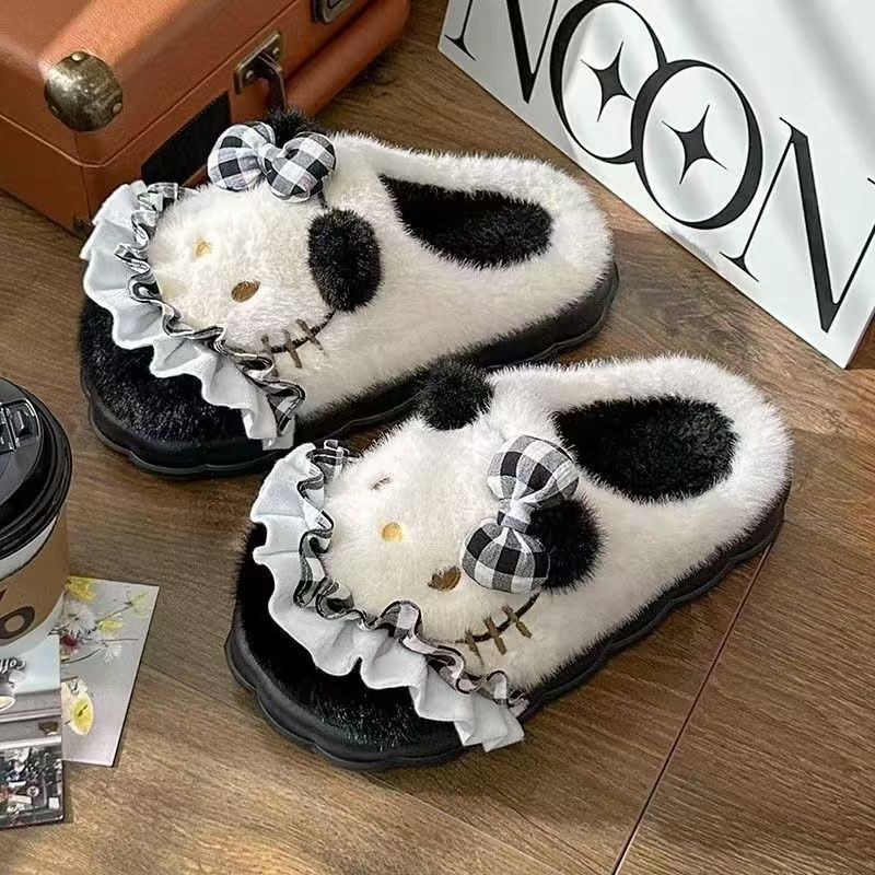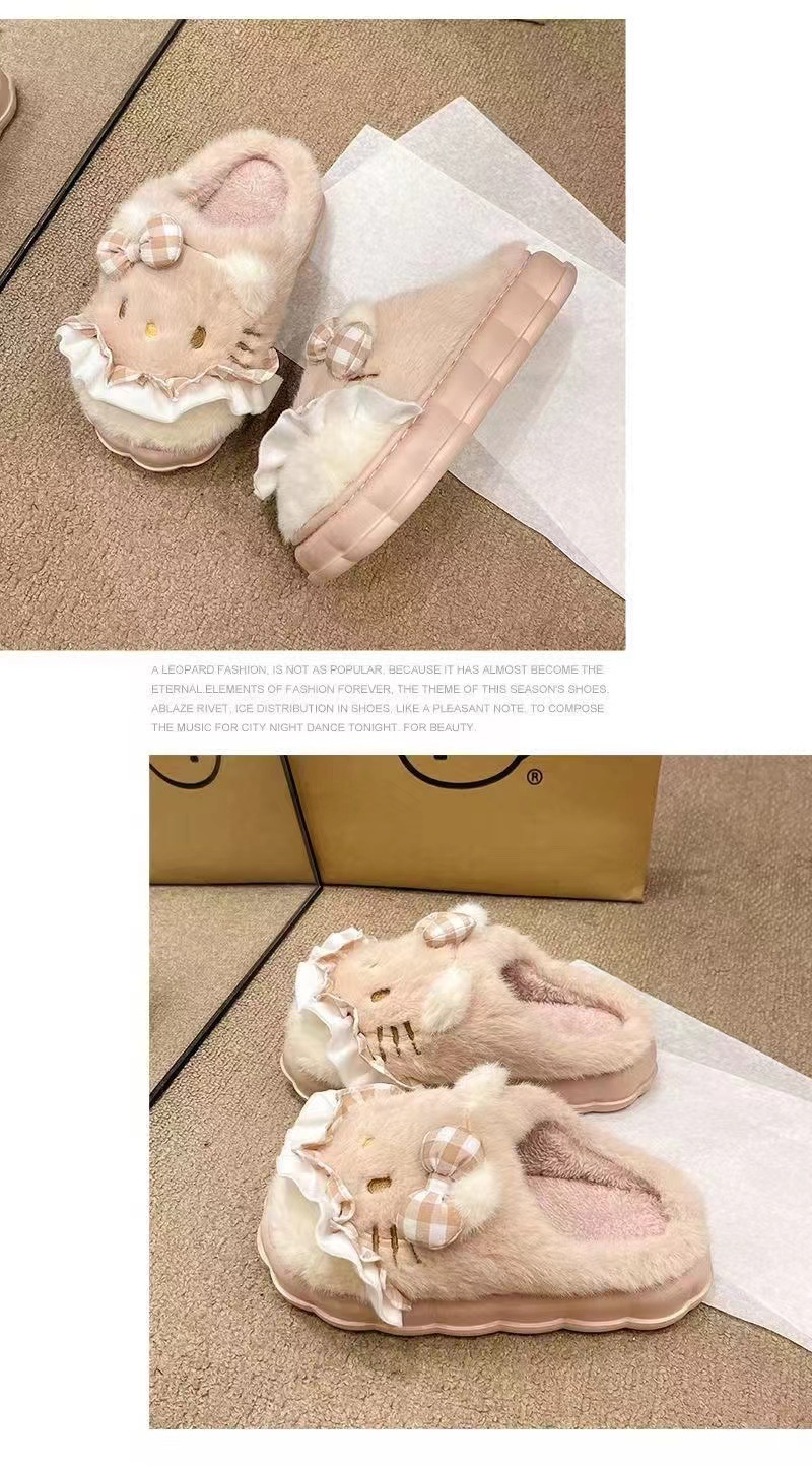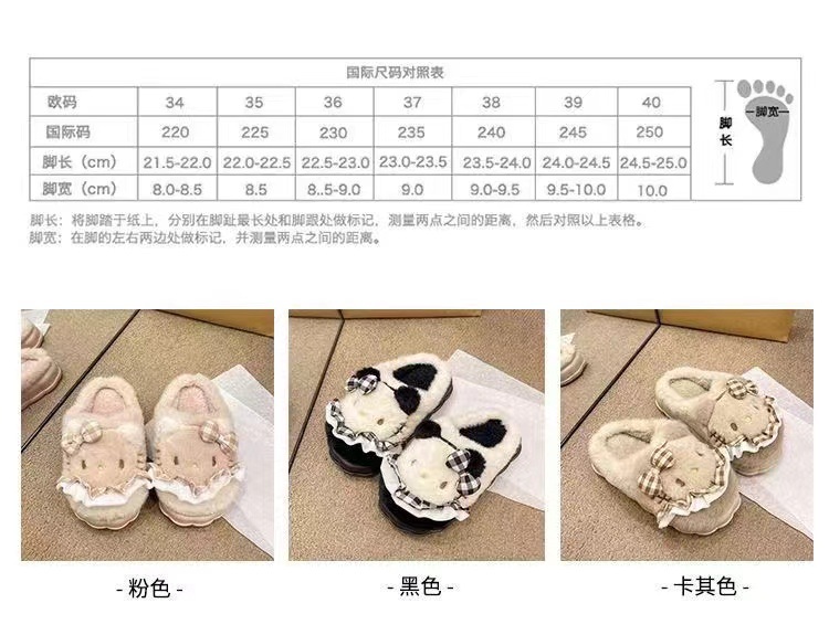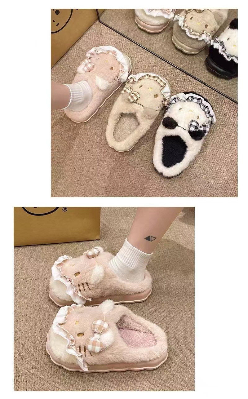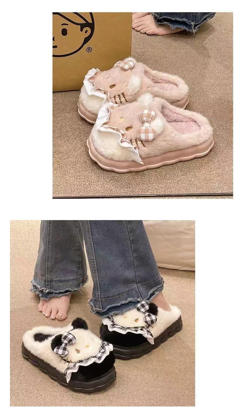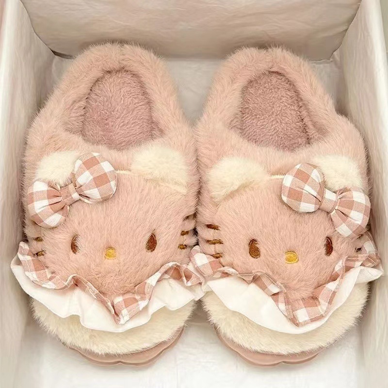 Тапочки KT Meow из хлопка для женщин, милые зимние тапочки с мультяшным принтом, на толстой нескользящей подошве, плюшевые, утолщенные, теплые, пушистые.
