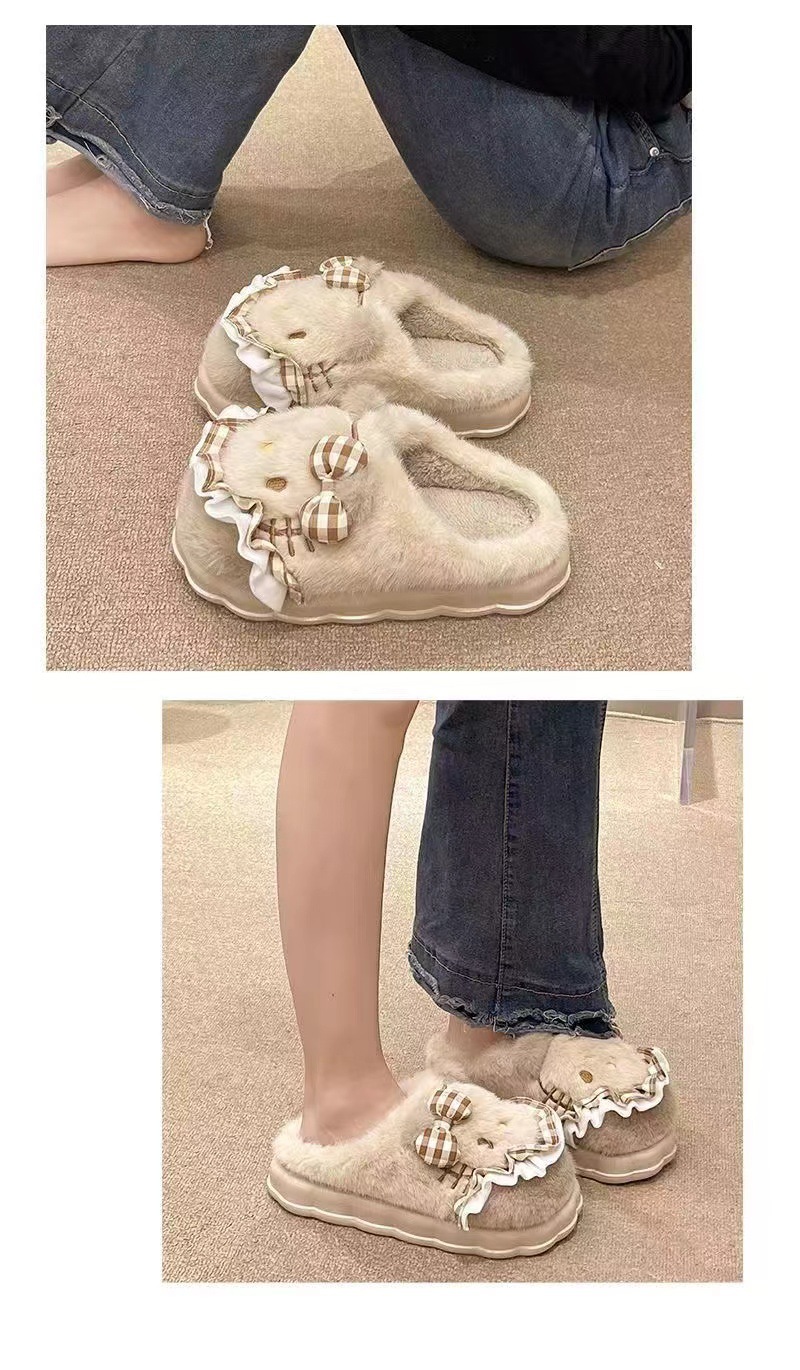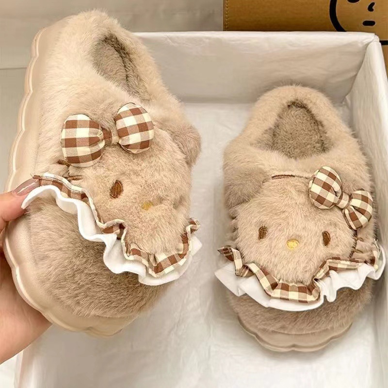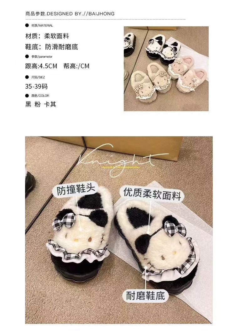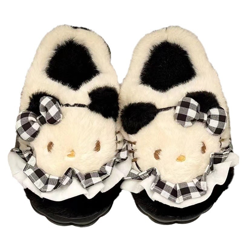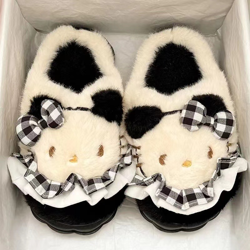 Тапочки KT Meow из хлопка для женщин, милые зимние тапочки с мультяшным принтом, на толстой нескользящей подошве, плюшевые, утолщенные, теплые, пушистые.