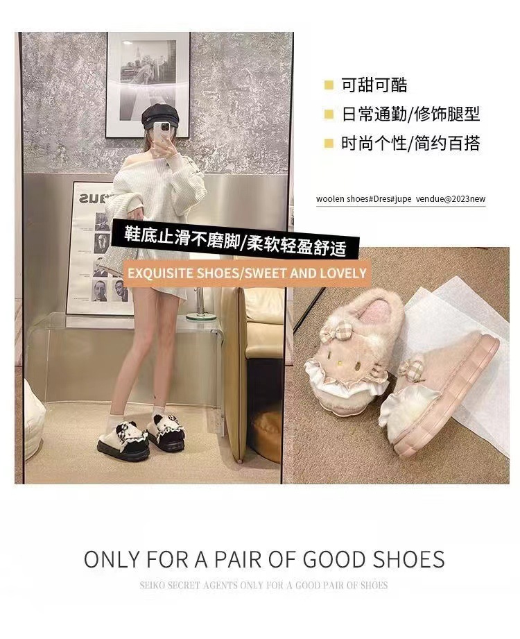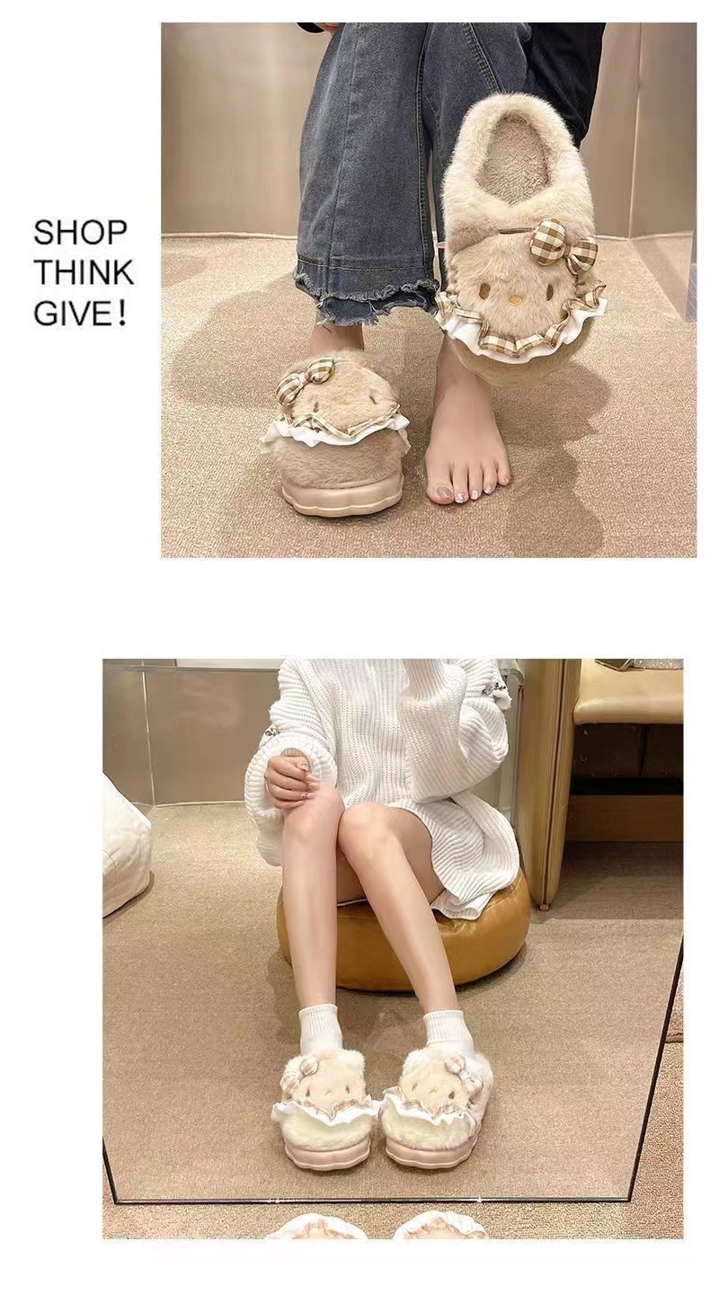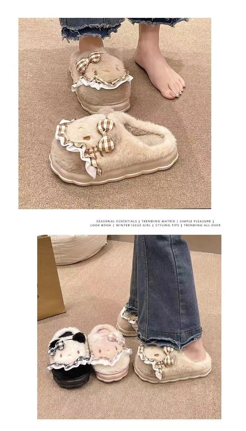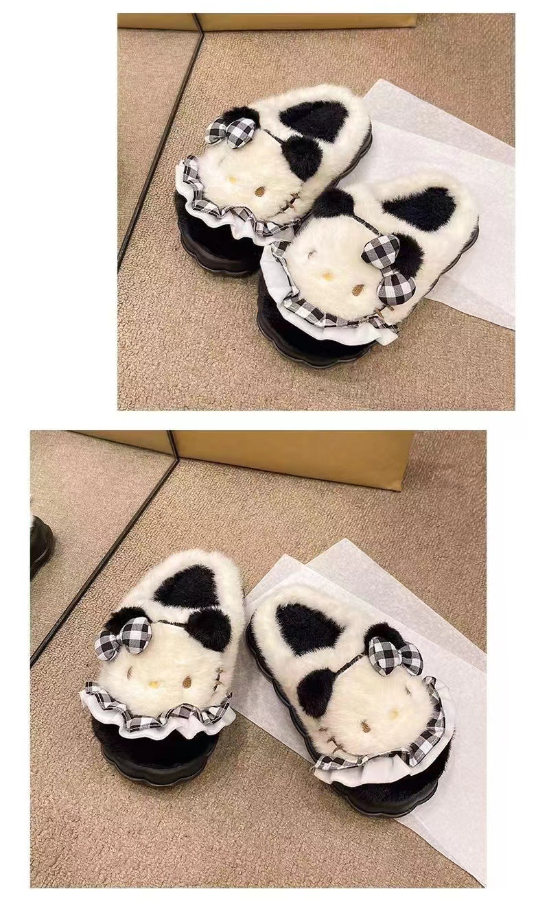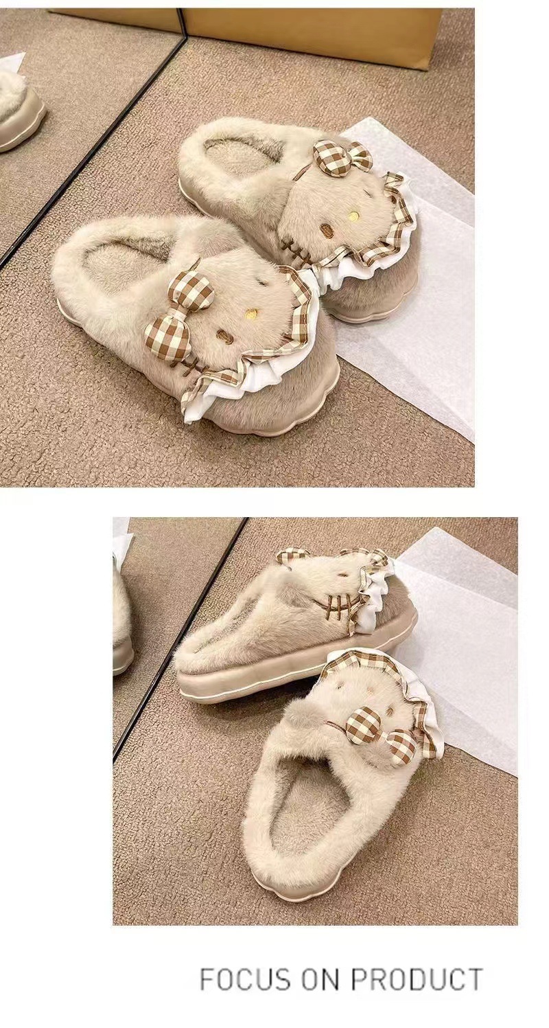 Тапочки KT Meow из хлопка для женщин, милые зимние тапочки с мультяшным принтом, на толстой нескользящей подошве, плюшевые, утолщенные, теплые, пушистые.