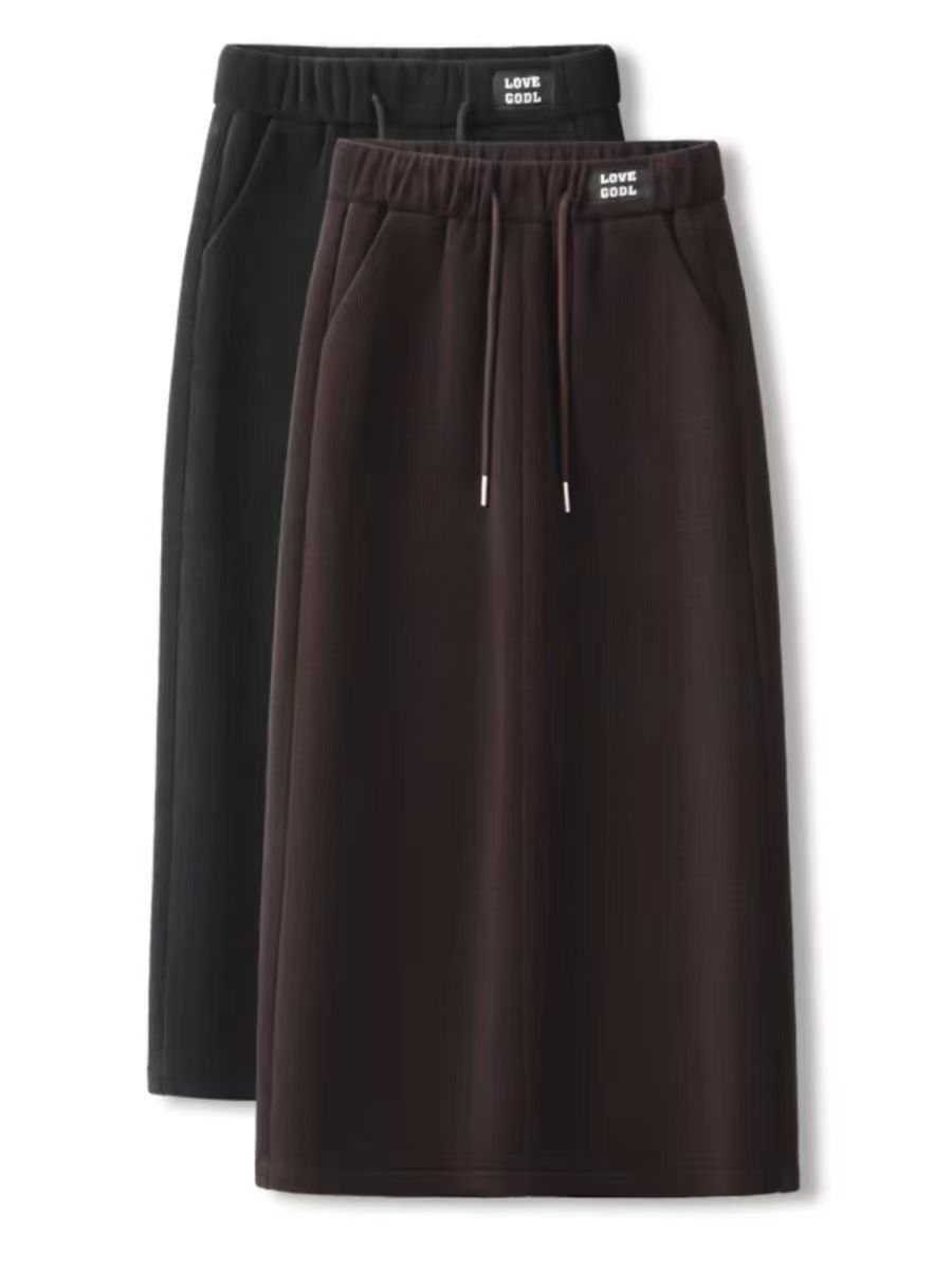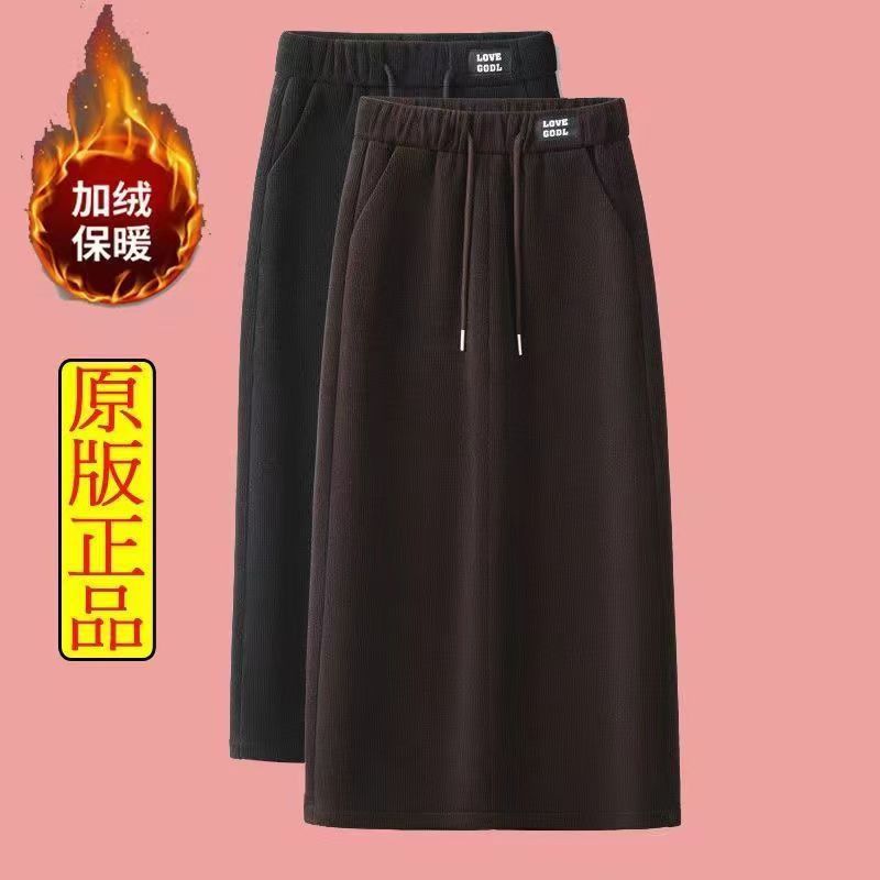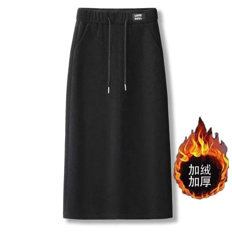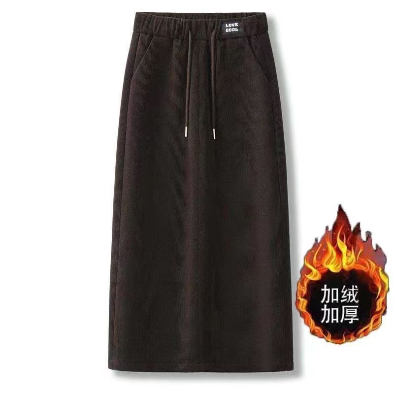 Трансграничная бархатная утолщеная юбка темперамент повседневная новая прямая труба осень-зима теплая средняя и длинная юбка