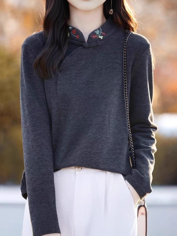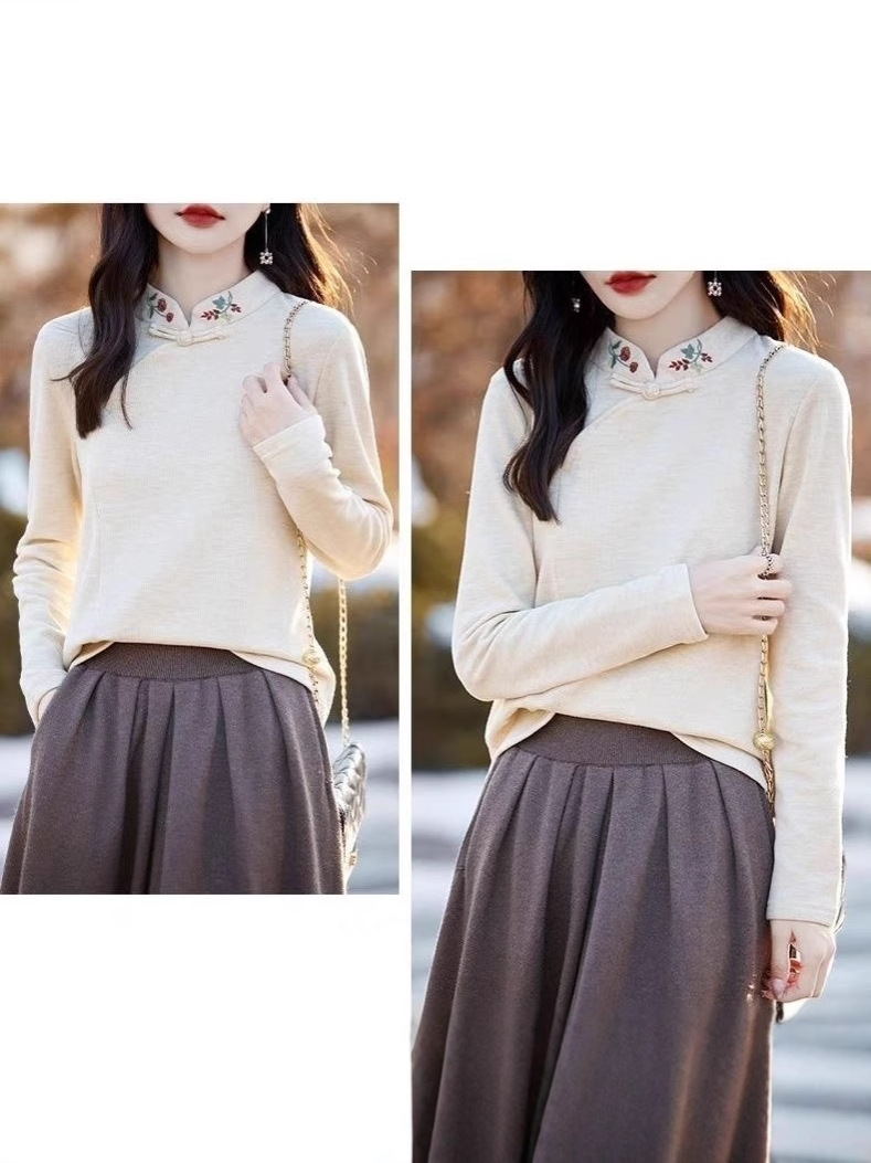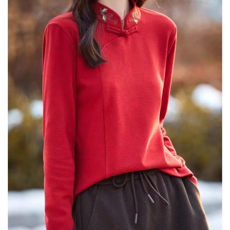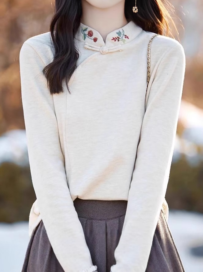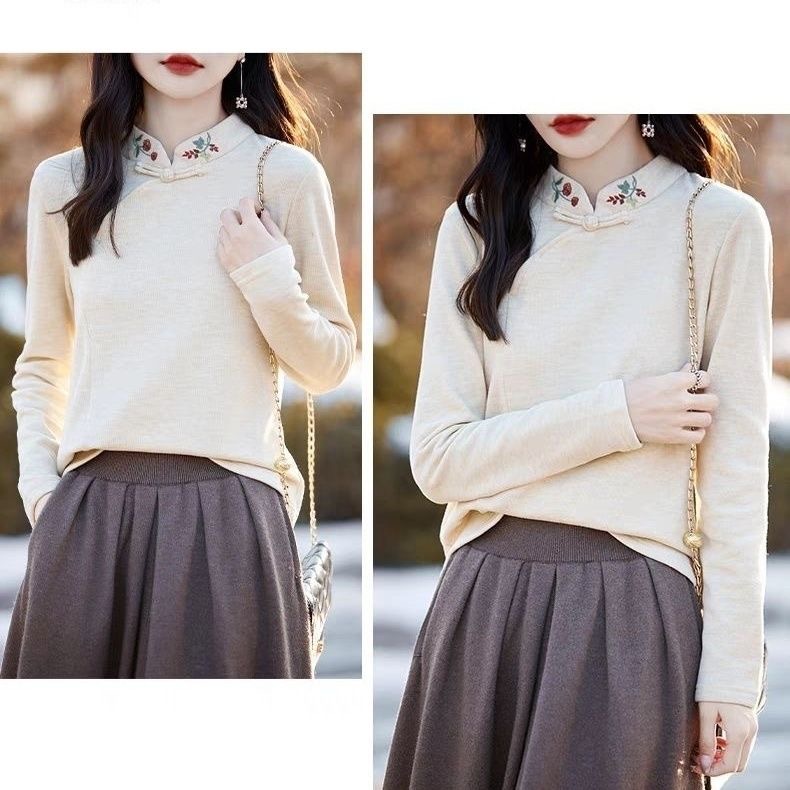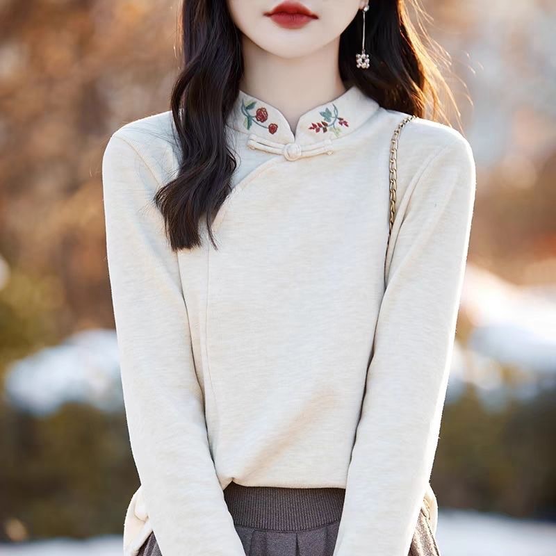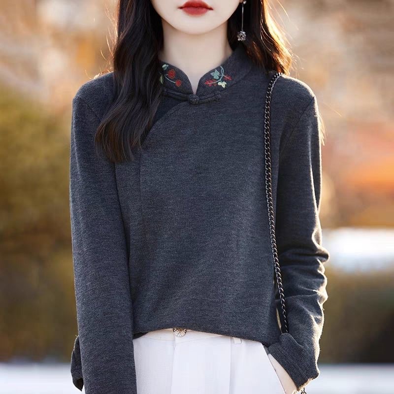 Новая китайская вышивка Derong нижняя рубашка женский полувысокий воротник осень-зима новый свободный китайский стиль дикий топ