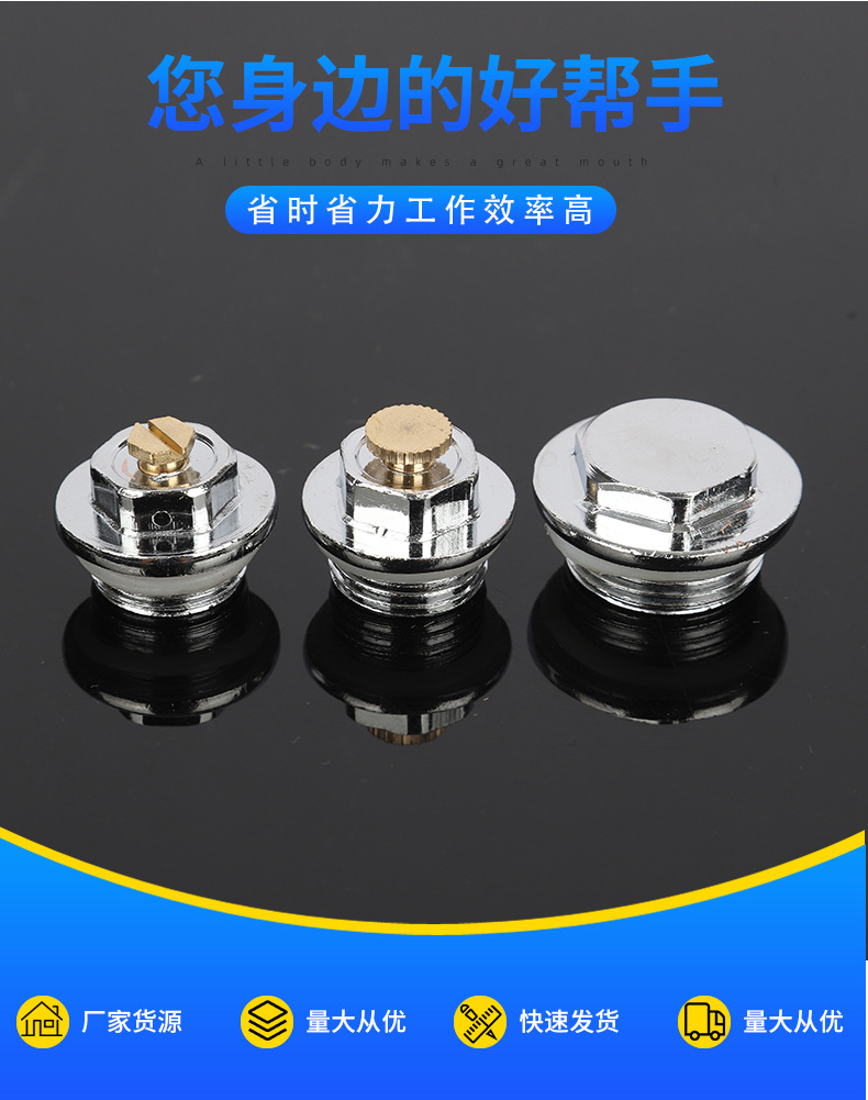 Шлицевая (отвертка) дефляционная пробка 4 точки; Шлицевая (отвертка) дефляционная пробка 6 точек; Шлицевая (отвертка) дефляционная пробка 1.0inch; Вилка внешнего провода радиатора (плоская) 6 точек; Вилка внешнего провода радиатора (плоская) 1.0inch; Проволочная вилка для ручной дефляции (железо) 4 точки; Проволочная вилка для ручной дефляции (железо) 6 точек; Вилка провода с ручной дефляцией (железо) 1.0inch