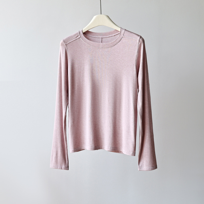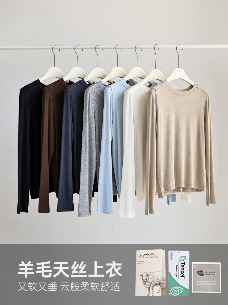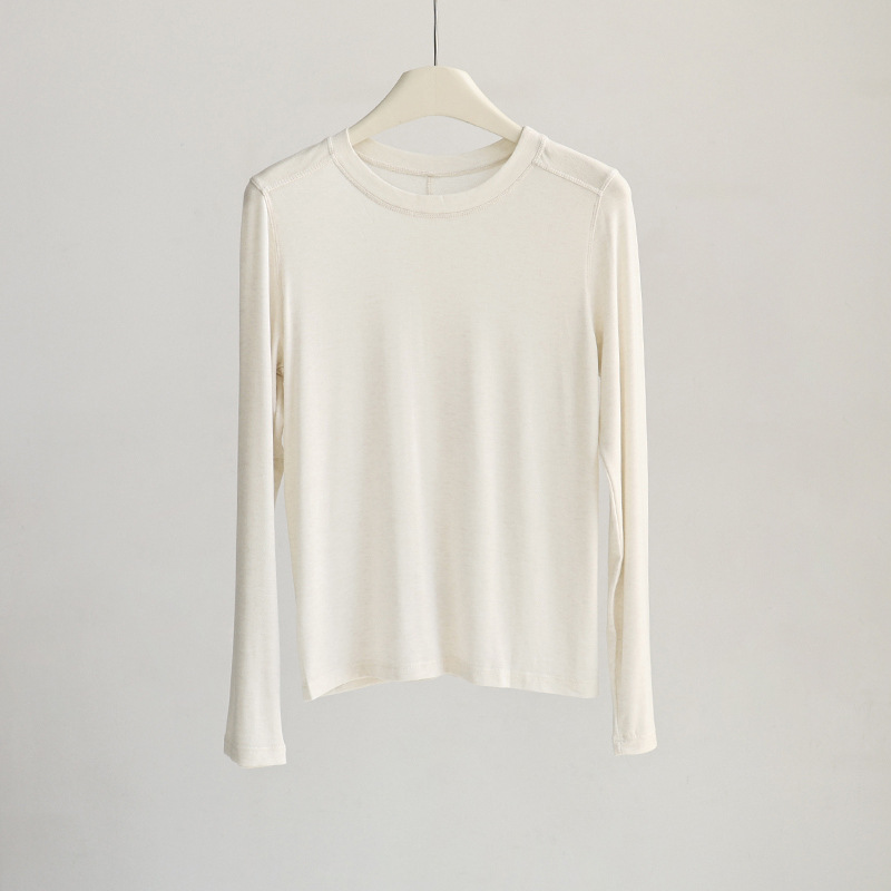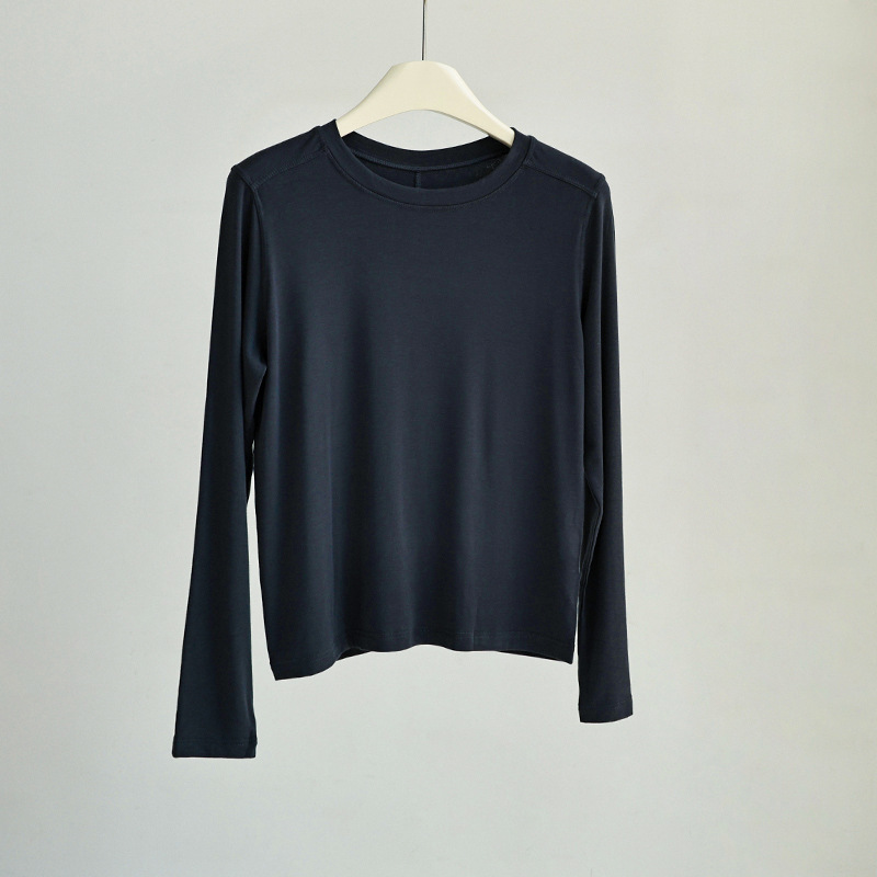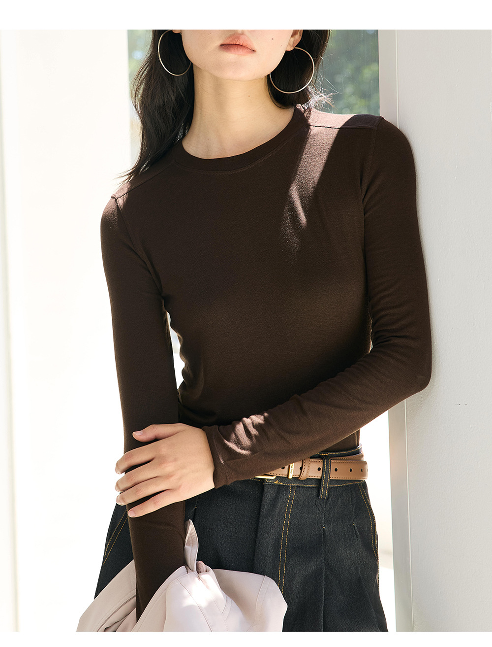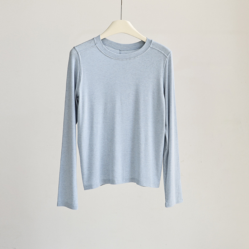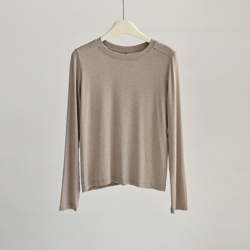Женская базовая футболка из шерсти и тенселя, весенне-осенняя, с длинным рукавом, круглым вырезом, высокой эластичностью, облегающая, повседневная, как верхняя одежда.