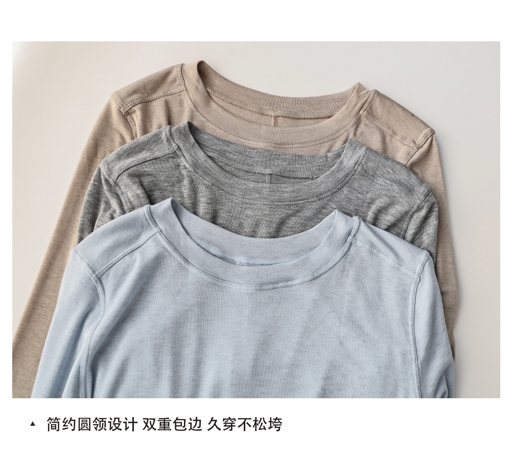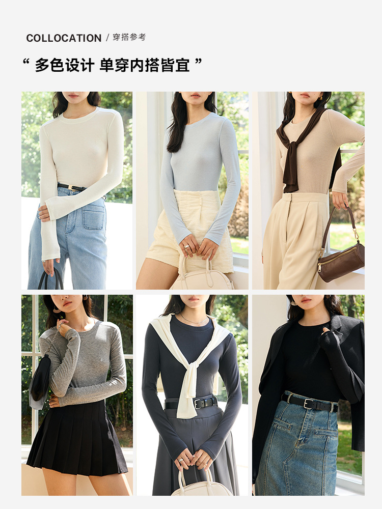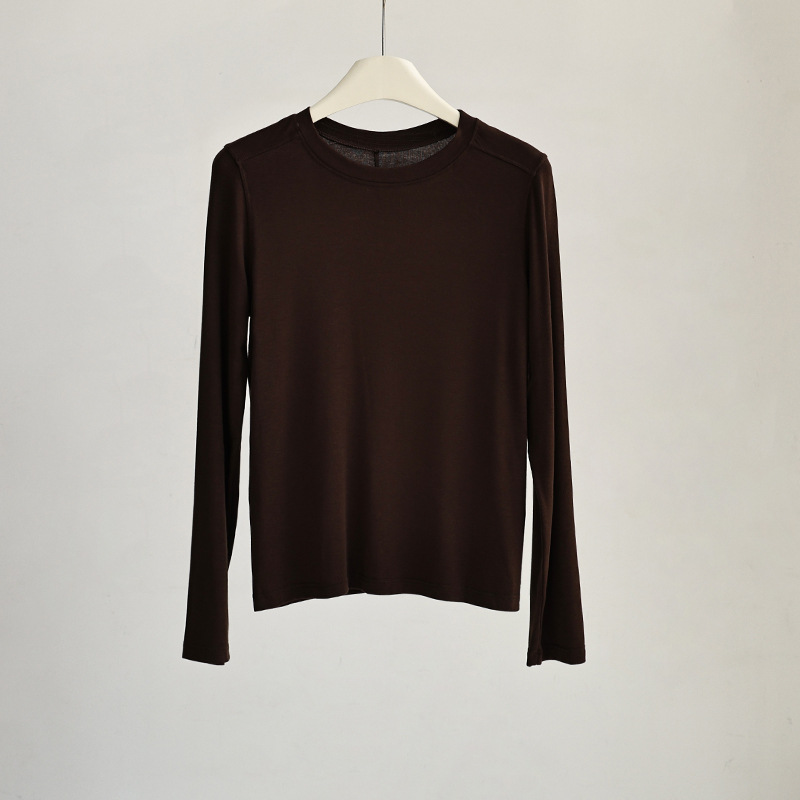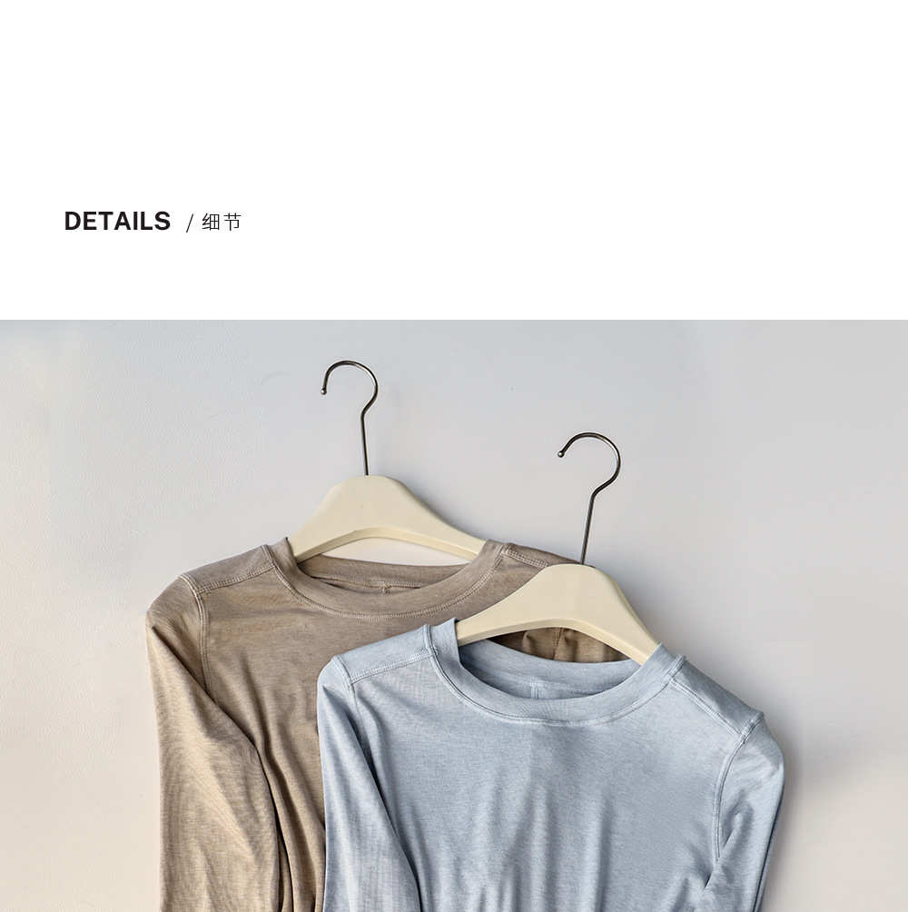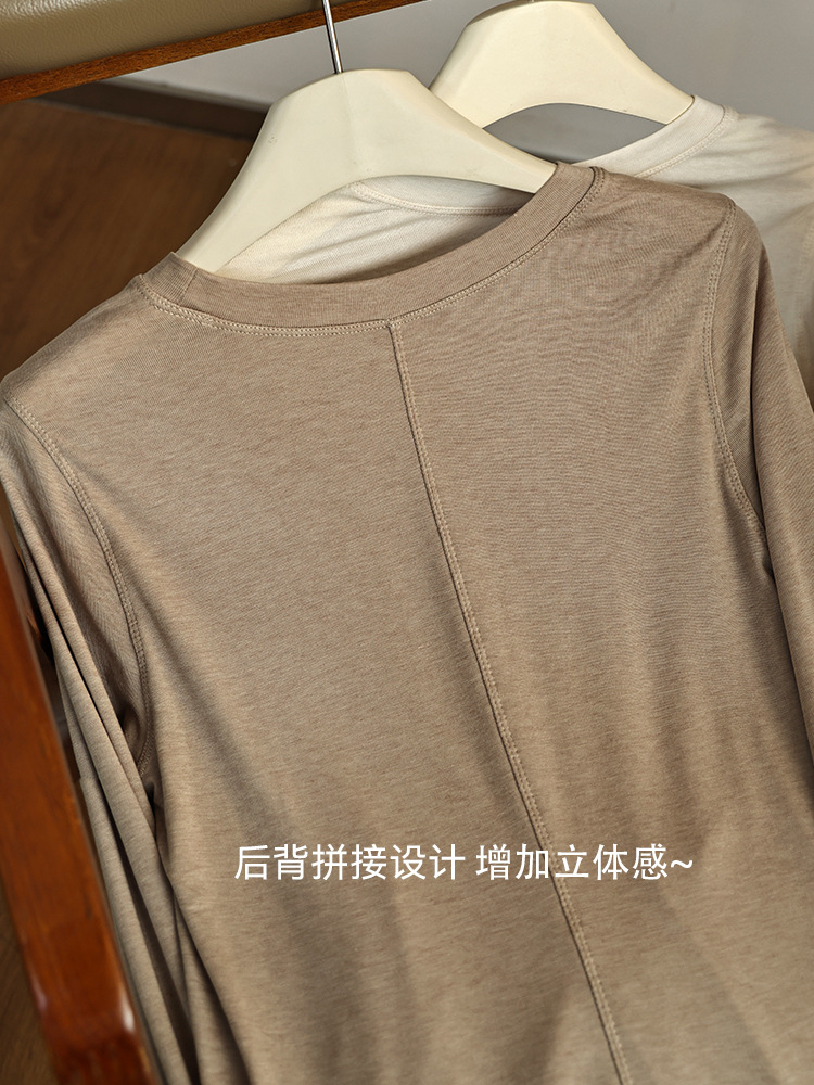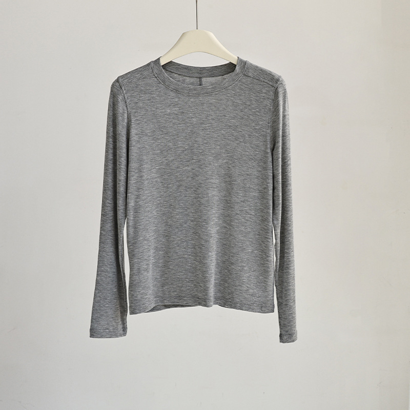 Женская базовая футболка из шерсти и тенселя, весенне-осенняя, с длинным рукавом, круглым вырезом, высокой эластичностью, облегающая, повседневная, как верхняя одежда.
