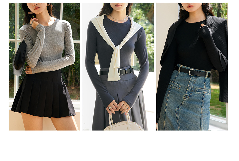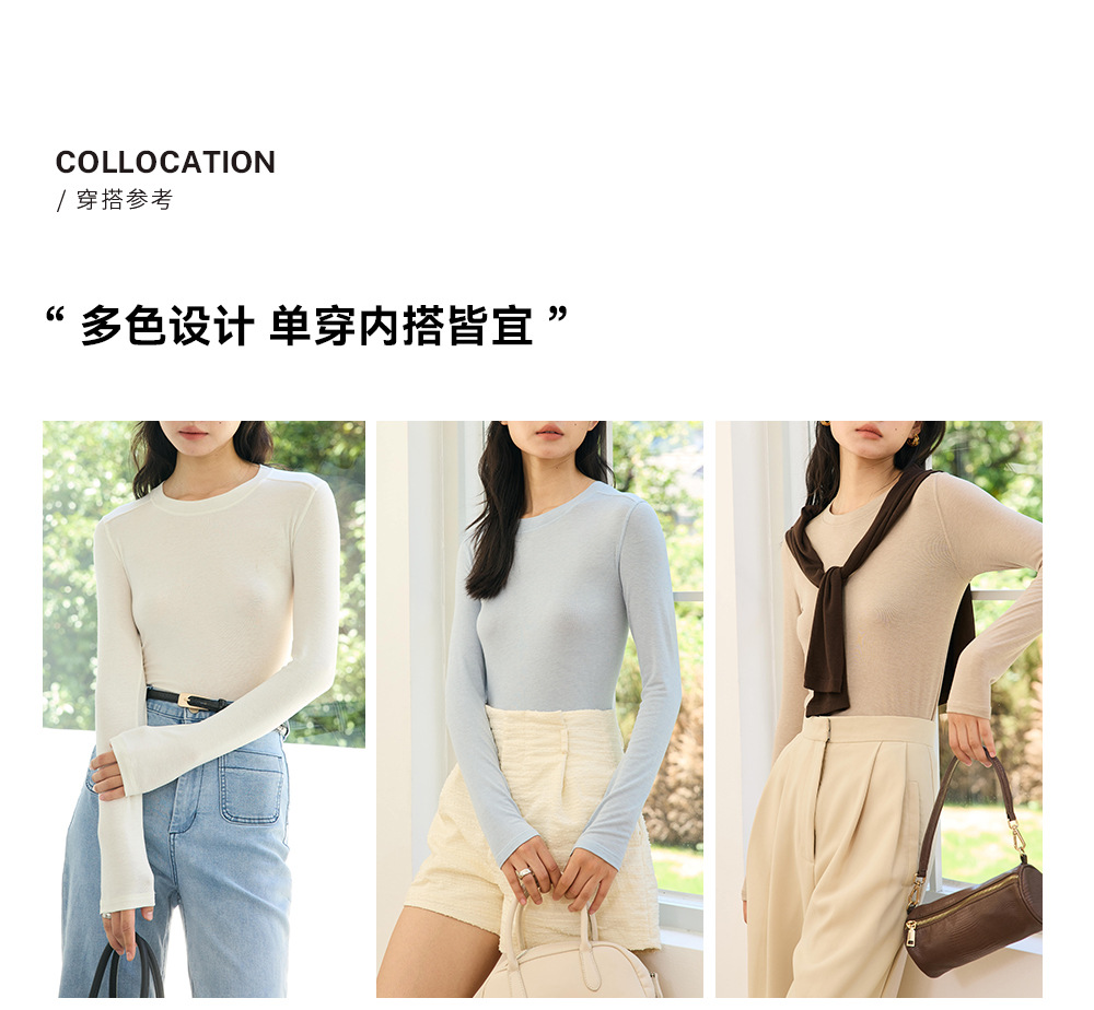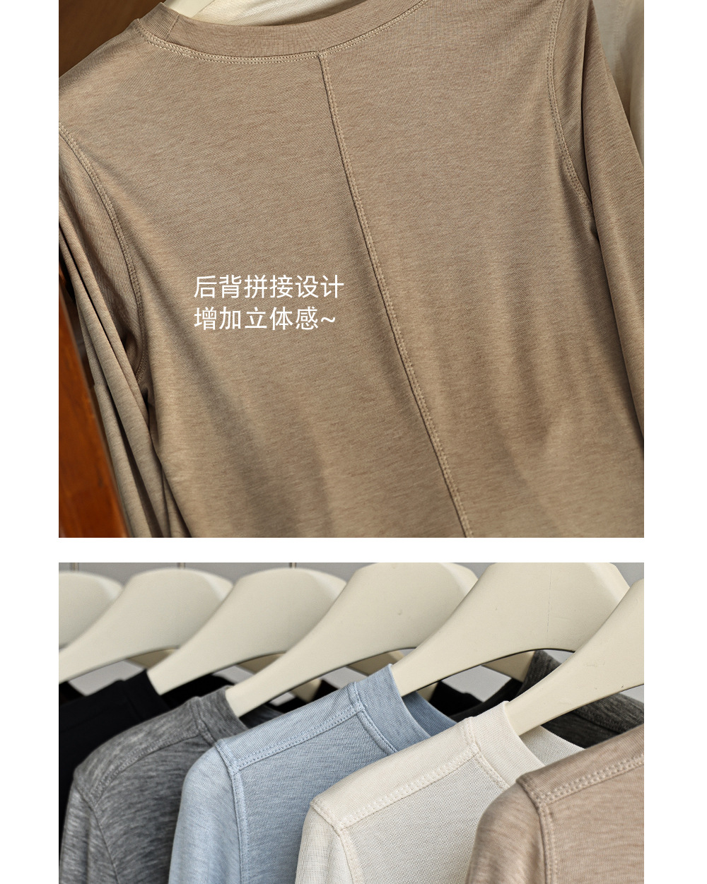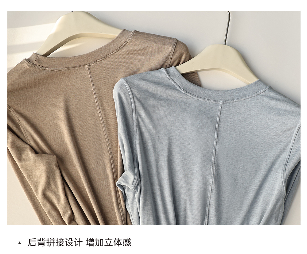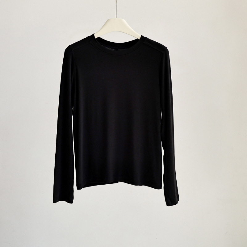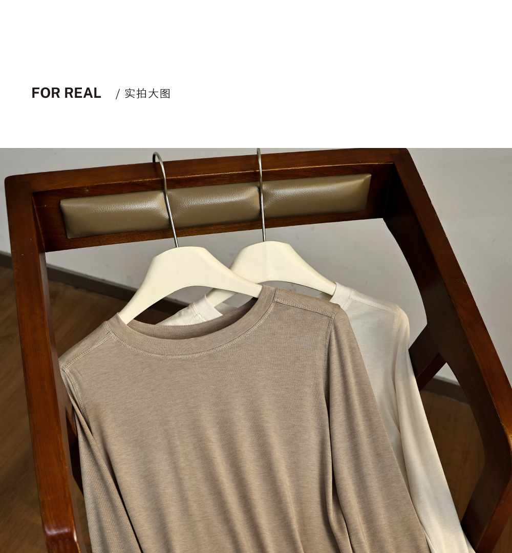 Женская базовая футболка из шерсти и тенселя, весенне-осенняя, с длинным рукавом, круглым вырезом, высокой эластичностью, облегающая, повседневная, как верхняя одежда.
