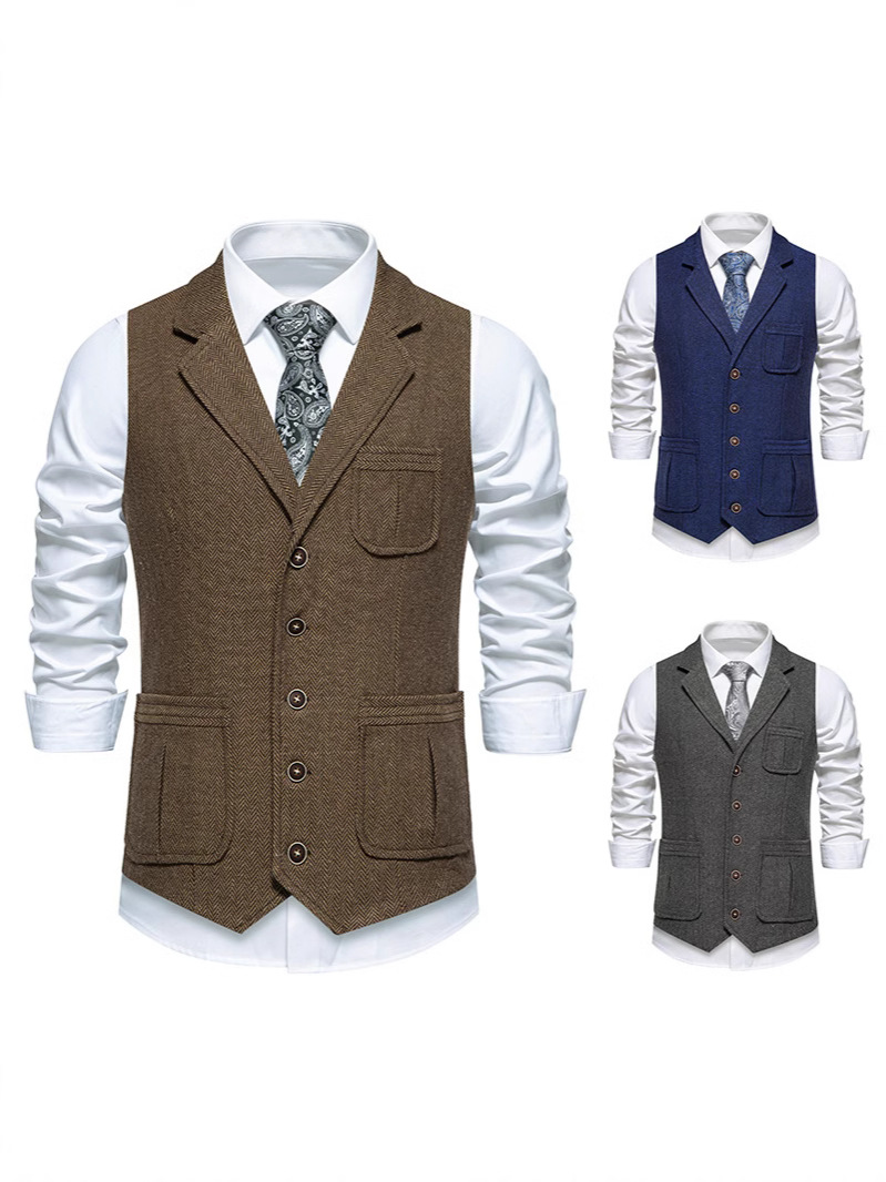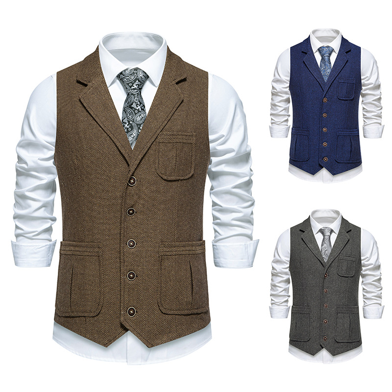 Amazon 2024 новая корейская версия тонкое платье костюм жилет мужское платье карман повседневный жилет мужское пальто