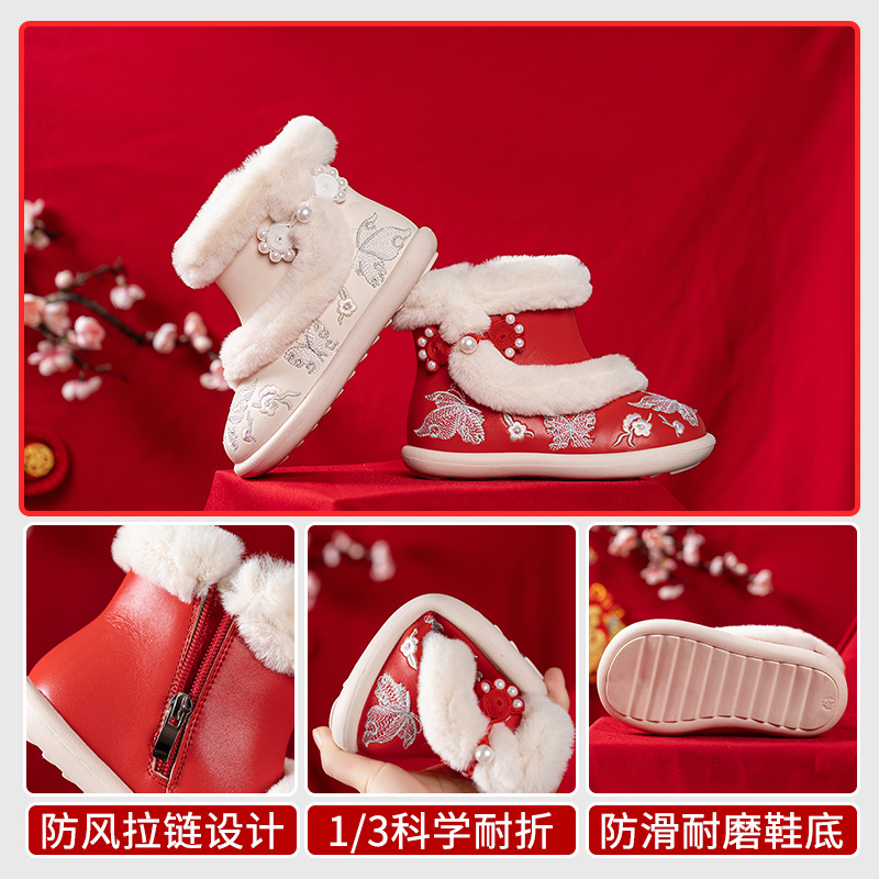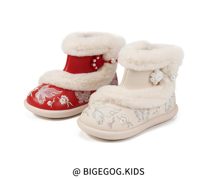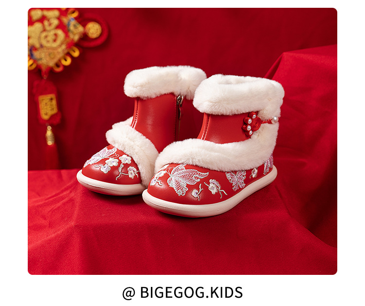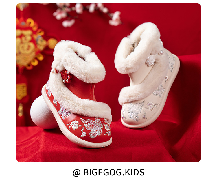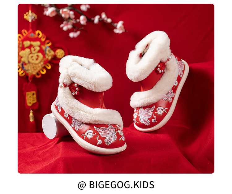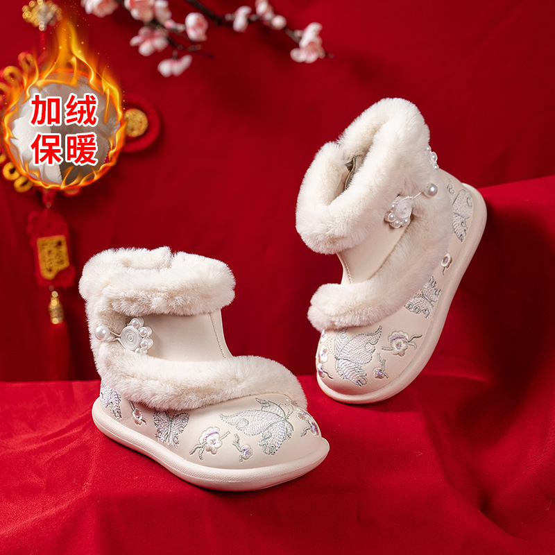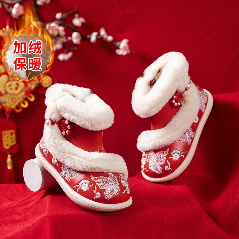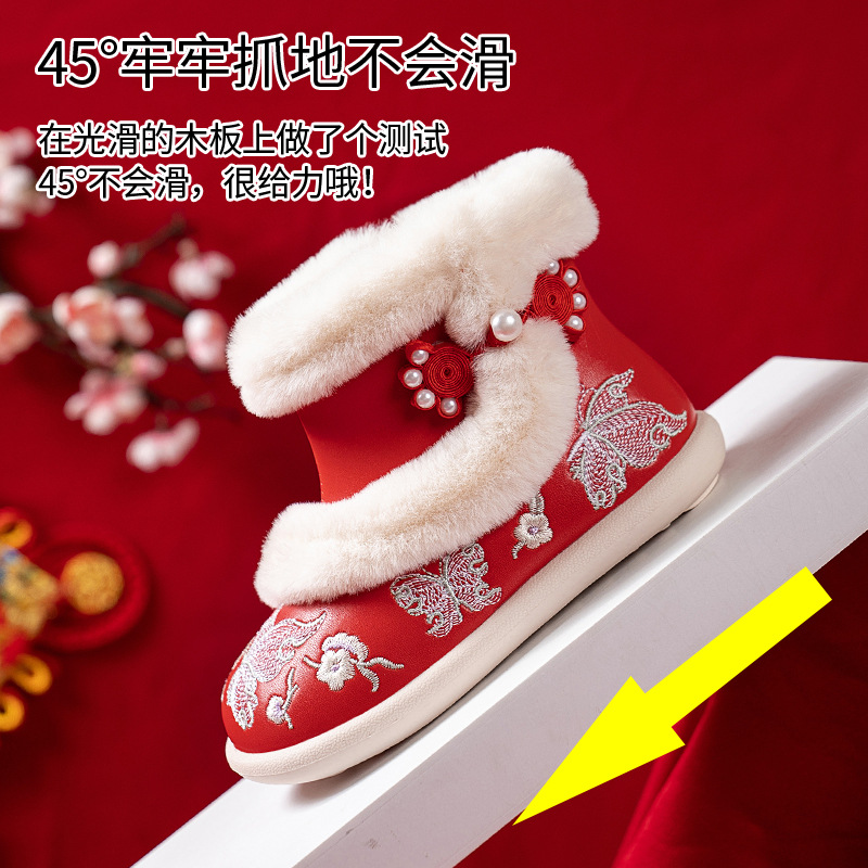 Обувь для девочек Hanfu обувь для новогодних зимних костюмов детские сапоги осенние и зимние конские юбки старинный стиль бархатные хлопчатобумажные туфли