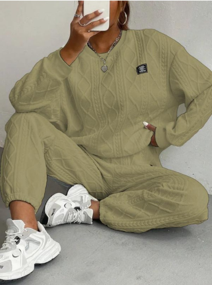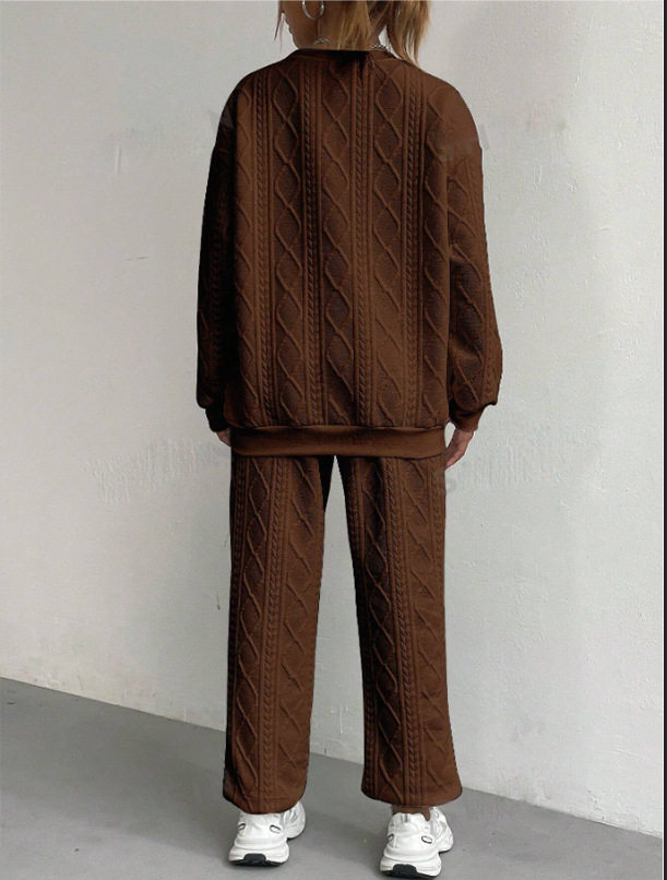 Amazon 2024 осень и зима новый европейский и американский трансграничный женский жаккардовый с длинными рукавами повседневный круглый воротник брюки брюки