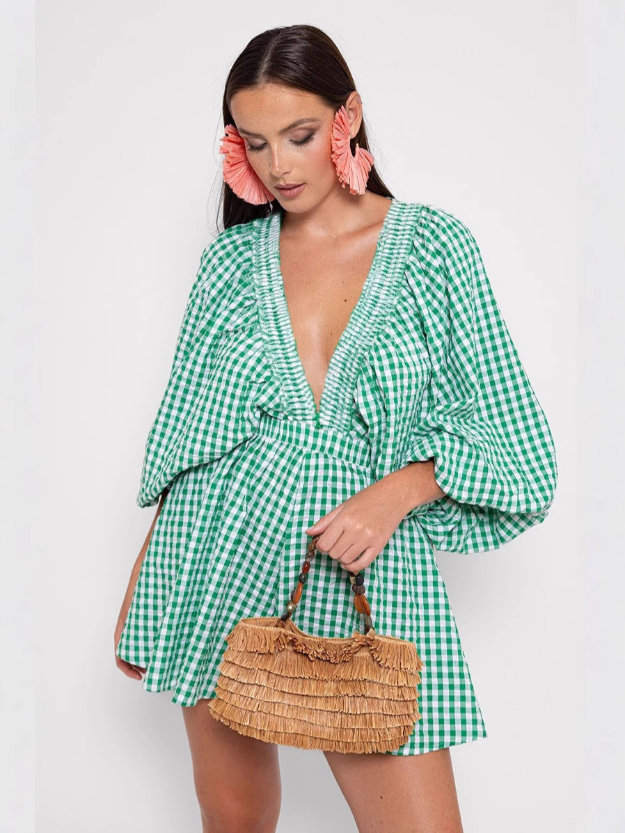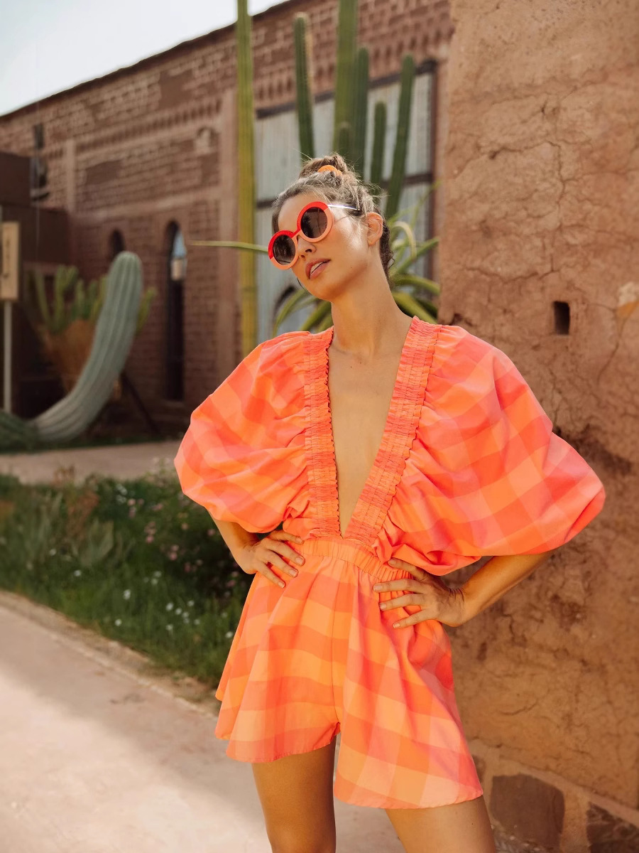 Новые европейские и американские Amazon AliExpress горячие распродажи свободные большие V с рукавами с высокой талией комбиненные шорты для женщин топ