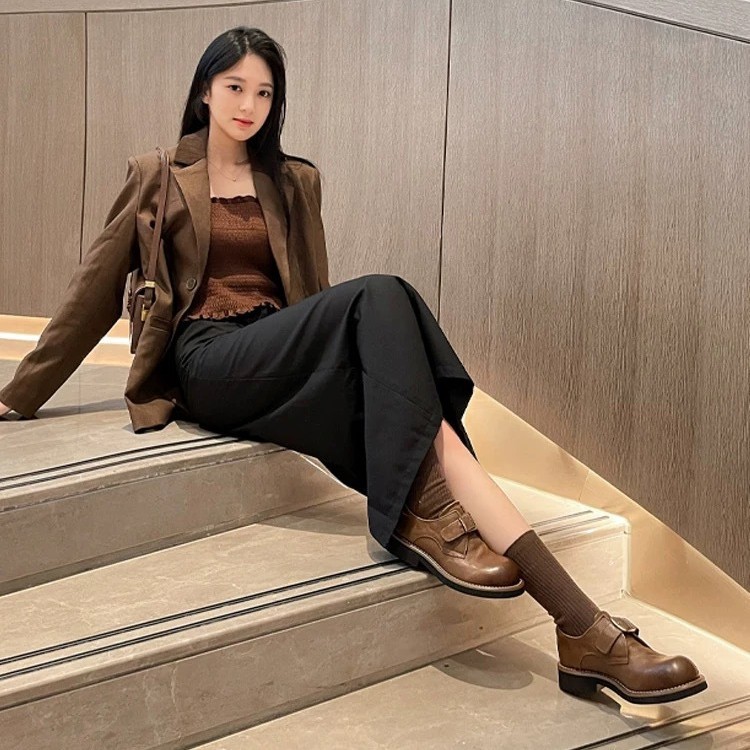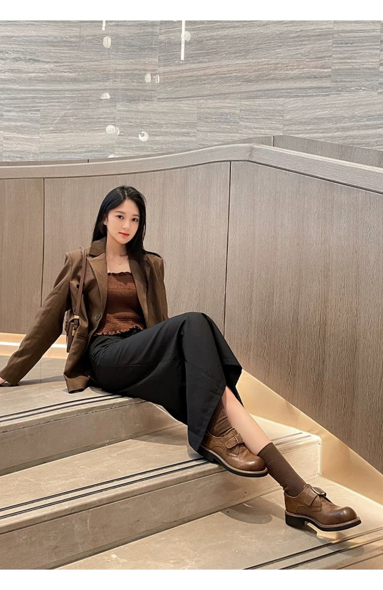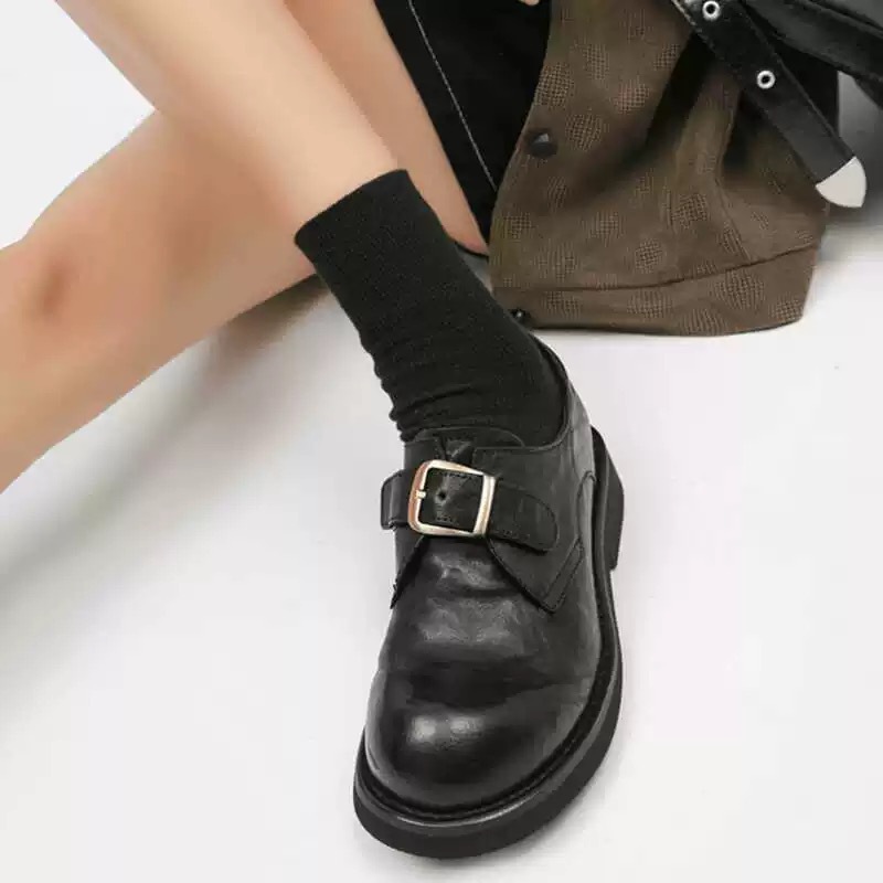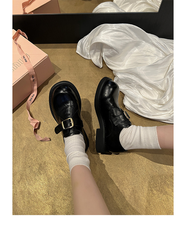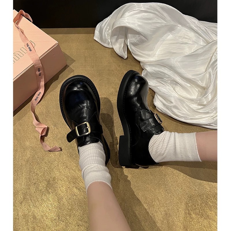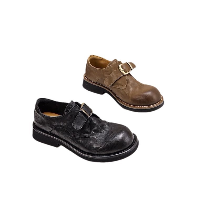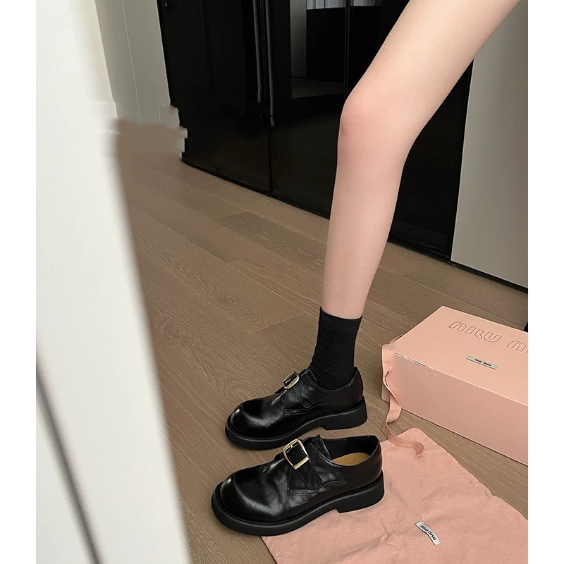 Европейские и американские маленькие кожаные туфли Lofu женские 2024 новые тонкие пуговицы толстые каблуки Leofu обувь женские осенние и зимние повседневные дикие одиночные туфли