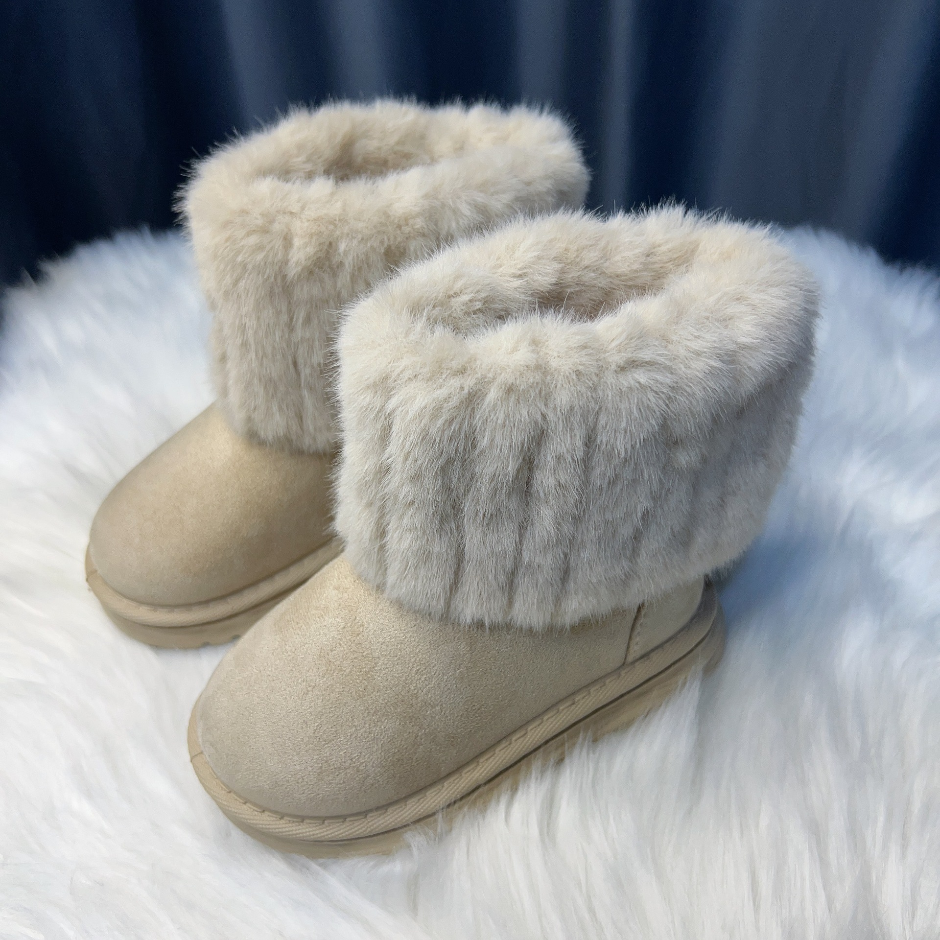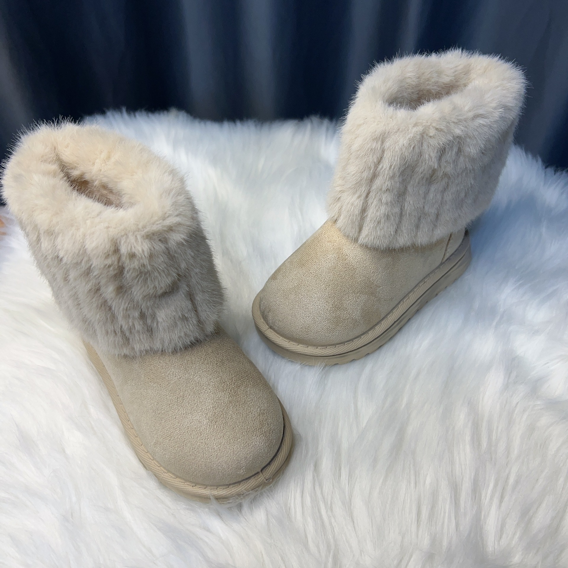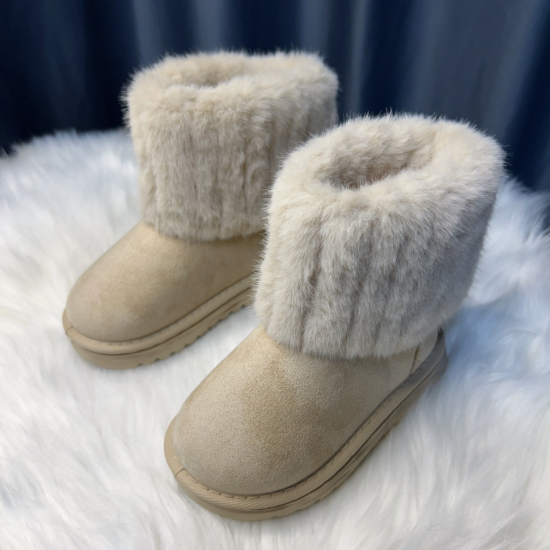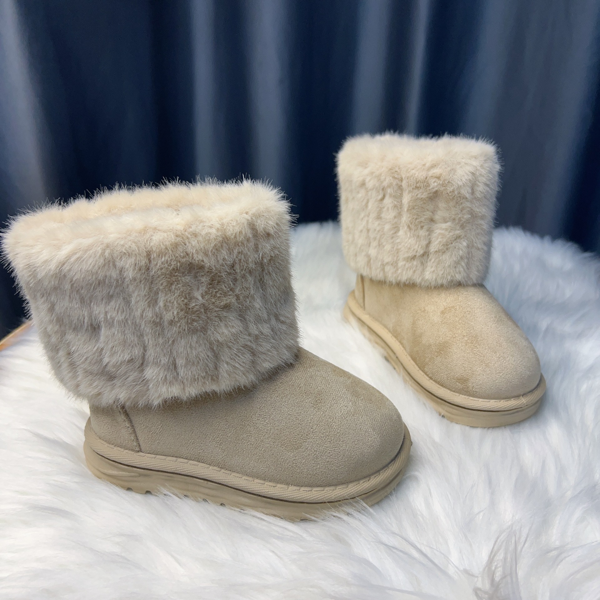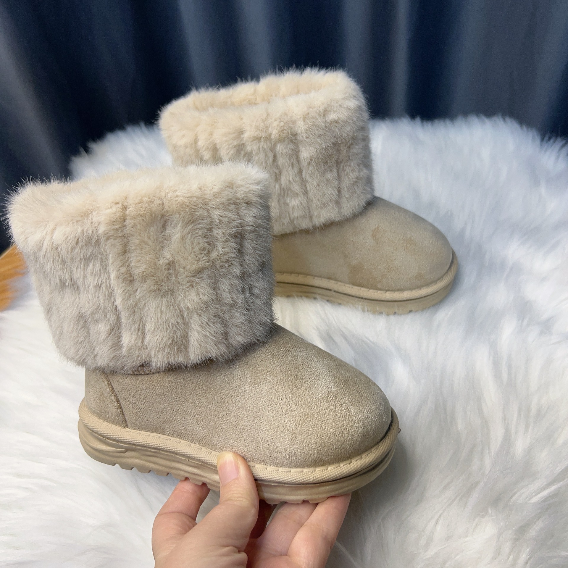2024 корейский интернет-красный теплый маленький ароматный ветер детская мода снежные сапоги маленькая девочка принцесса хлопчатобумажная обувь осенняя и зимняя детская обувь