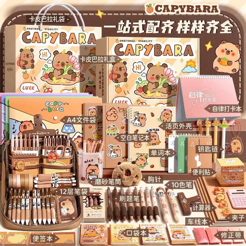 [Подарочный набор Capibala] Обновленный A-1; [Подарочный набор Капибала] B1-2; Подарочная коробка Capibala + базовый набор + популярный 9-слойный пенал; [Портативный кожаный чехол Capibala] Набор канцелярских принадлежностей для входа из 25 штук; [Маленький кожаный чехол Capibala] Комплект 466; [Дорожная коробка с паролем Capibala] Набор из 603 предметов; [Маленький кожаный чехол Capibala] Комплект 632; [Маленький кожаный чехол Capibala] Комплект 812; [Маленький кожаный чехол Capibala] Комплект 1021; [Дорожная коробка с паролем Capibala] Базовый набор + подарки премиум-класса