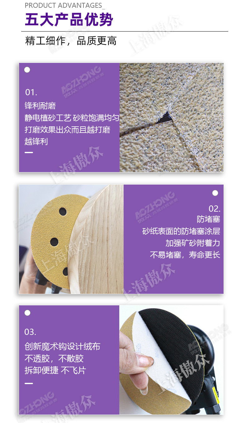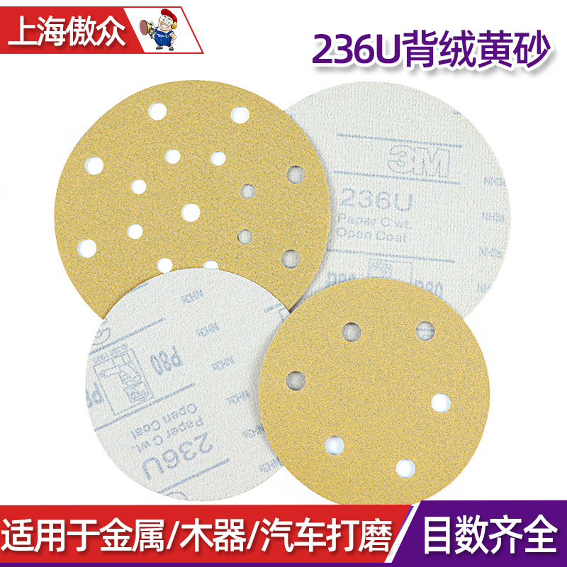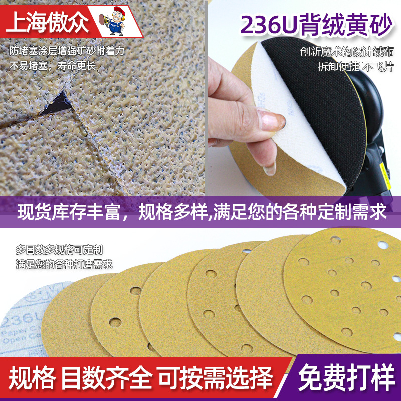 Оптовая продажа 3M236u желтый песок 5 дюймов 6 дюймов бархат автомобиля красоты деревообрабатывающий шлифовальный шлифовальный эффективный шлифовальный анти-засорение наждачной бумаги