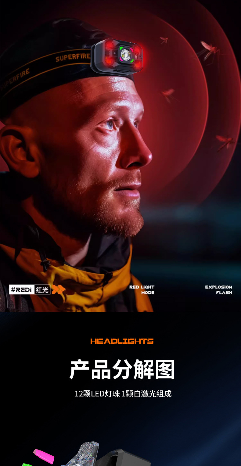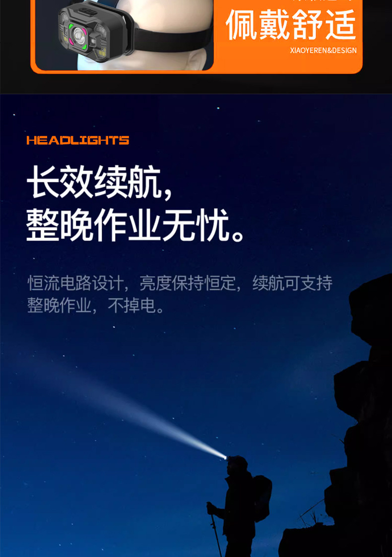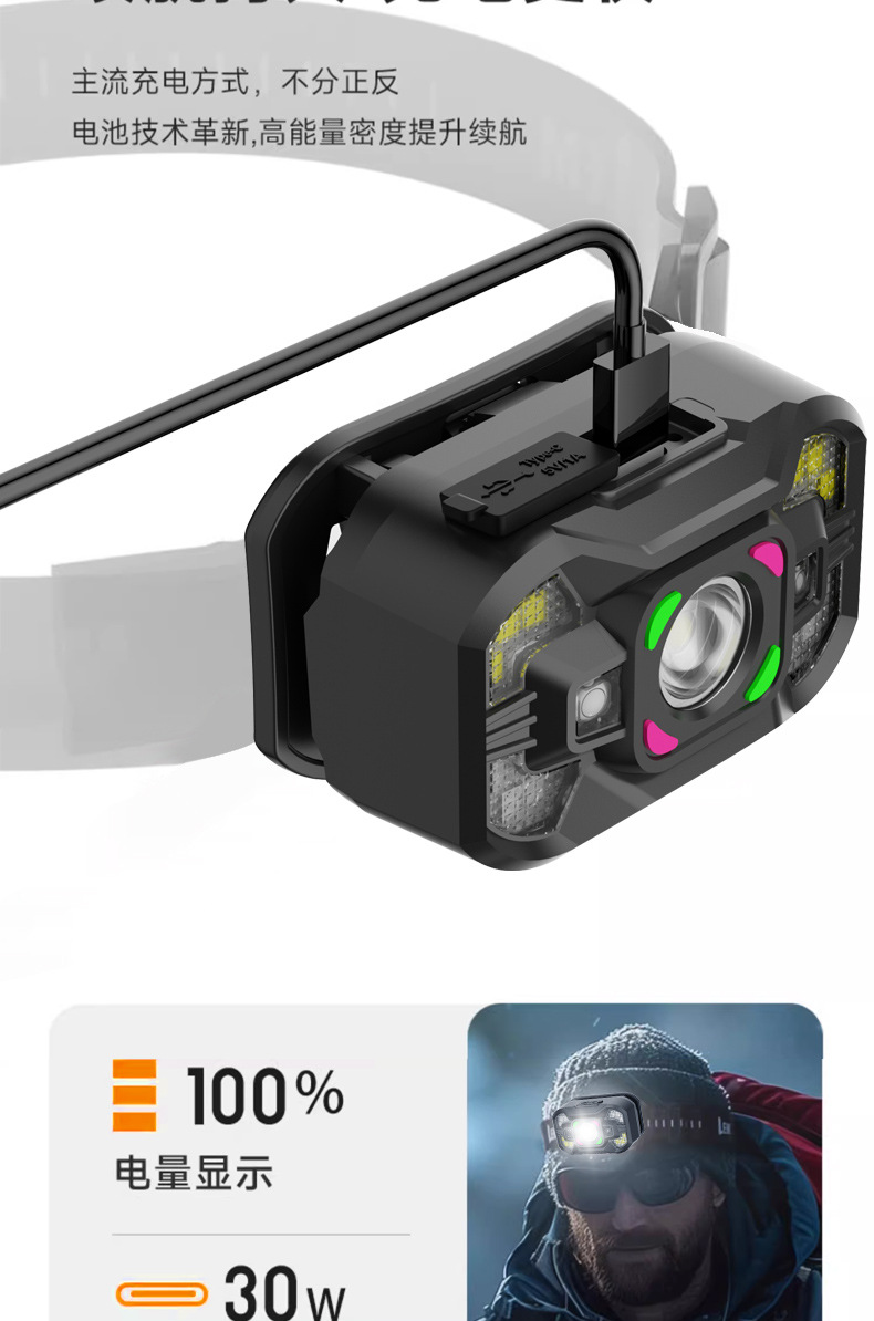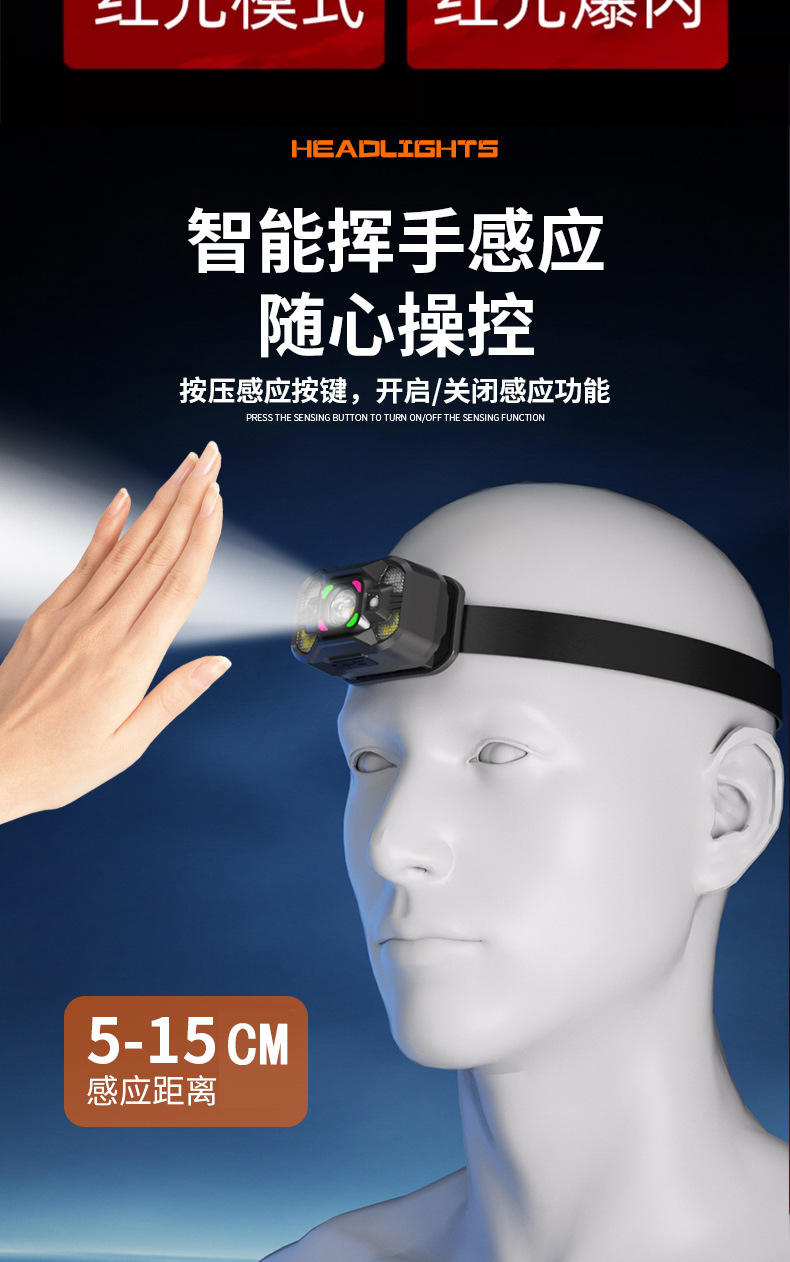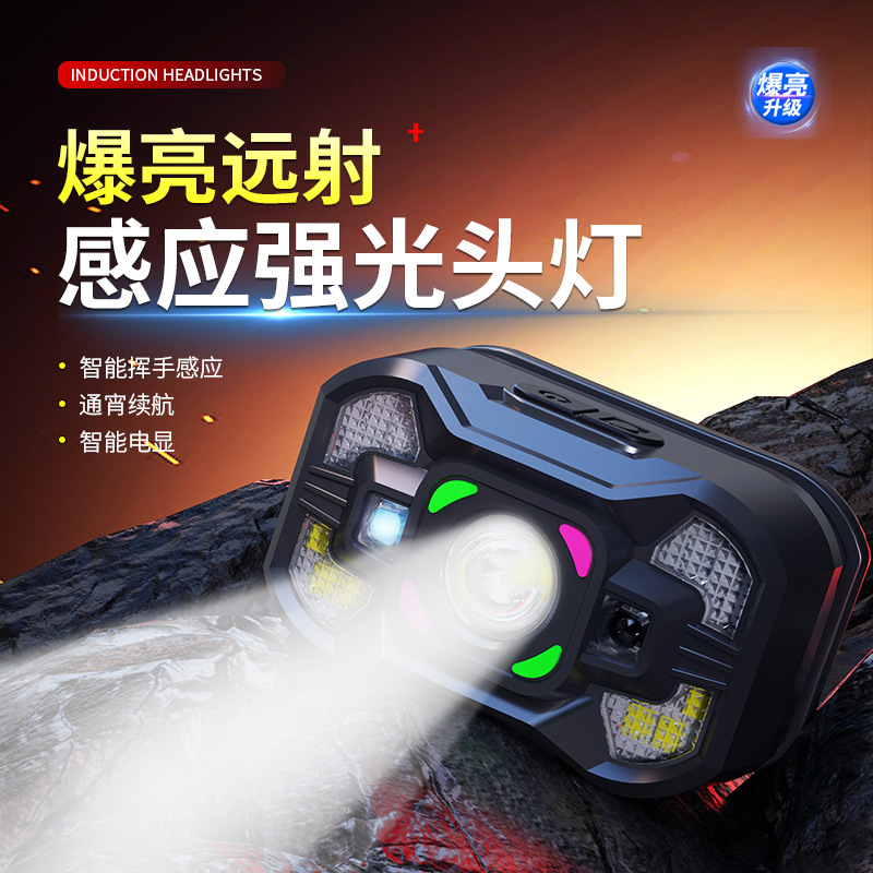 Трансграничные наружные индукционные фары с длинным сияющим светом сверхяркий перезаряжаемый водонепроницаемый головный портативный Встроенный аккумулятор