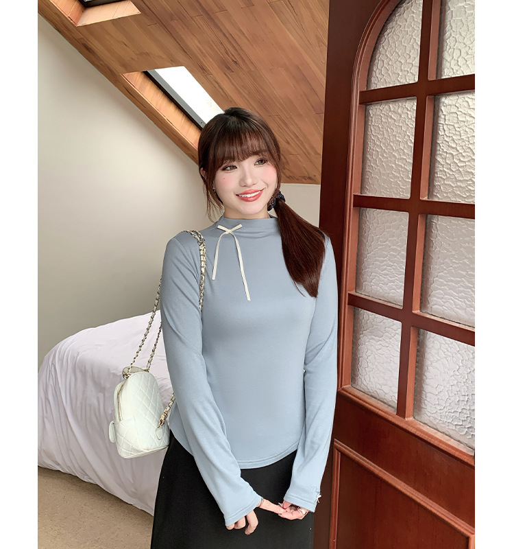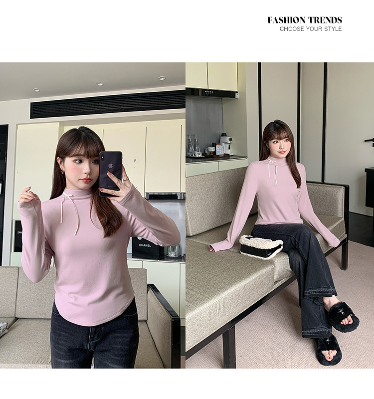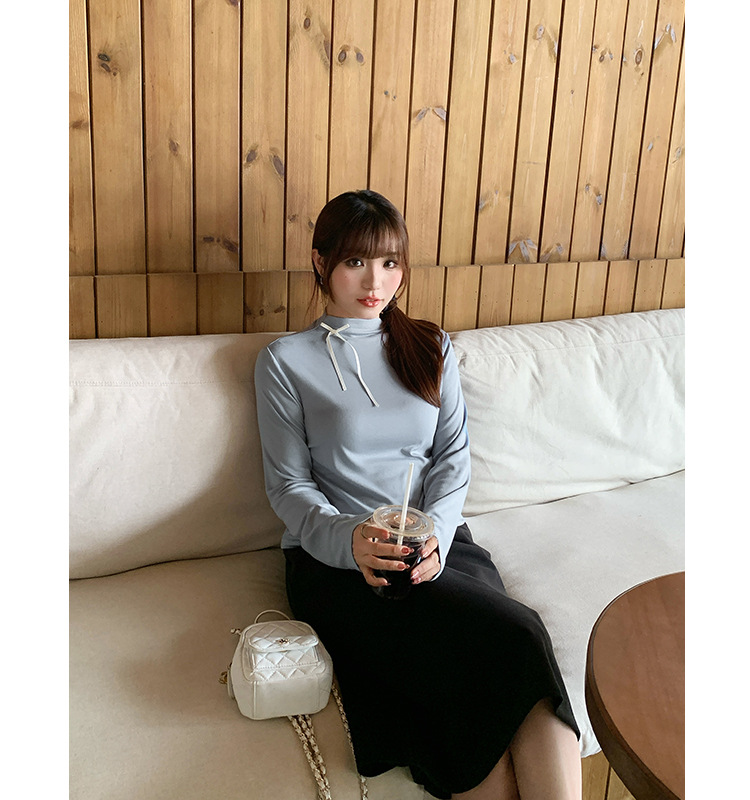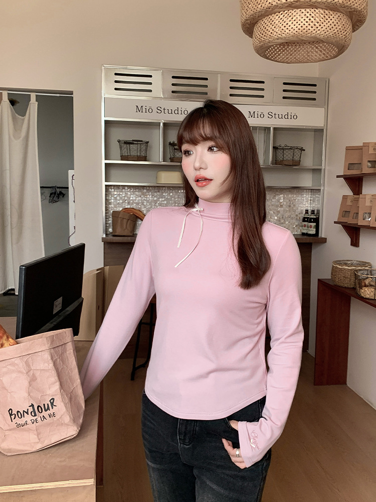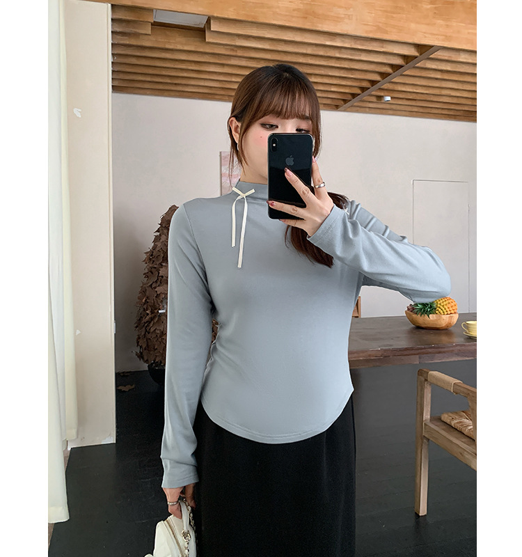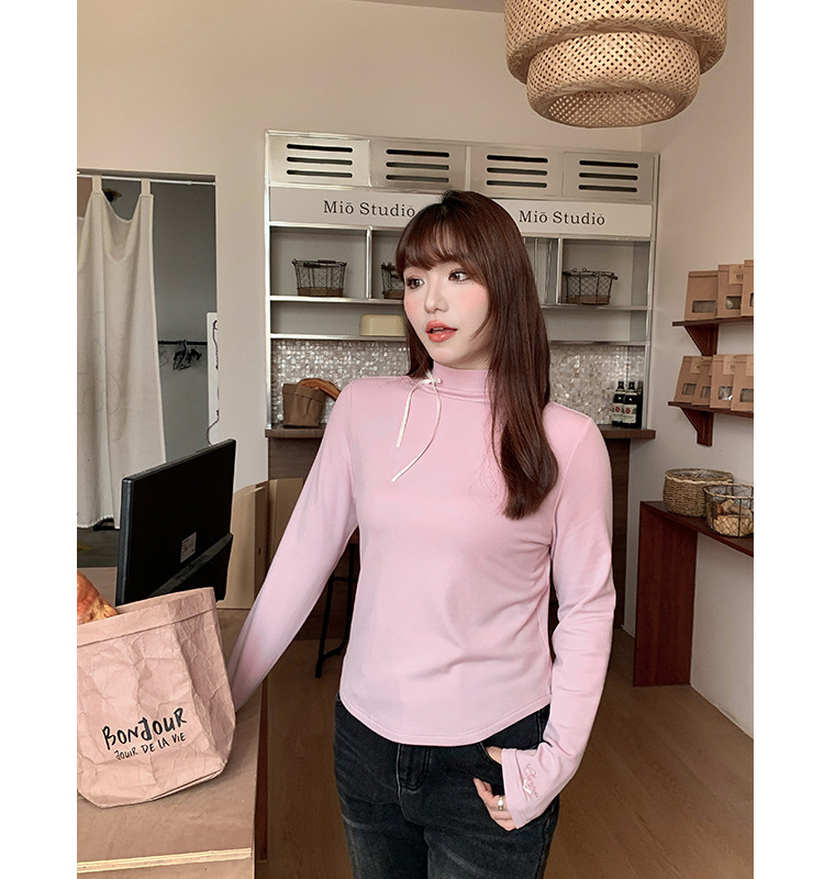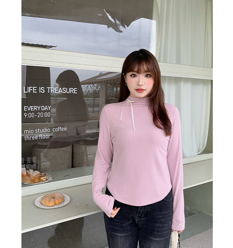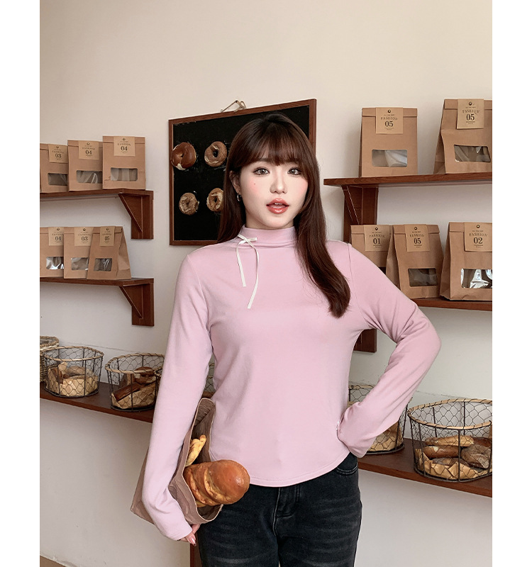 Свитер с воротником-стойкой и бантом, весенний, больших размеров, женская одежда, облегающий трикотаж с воротником-стойкой 63646