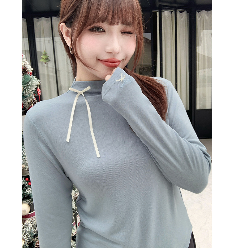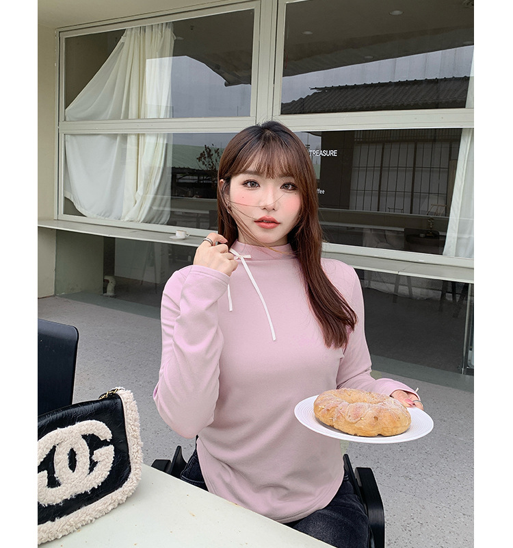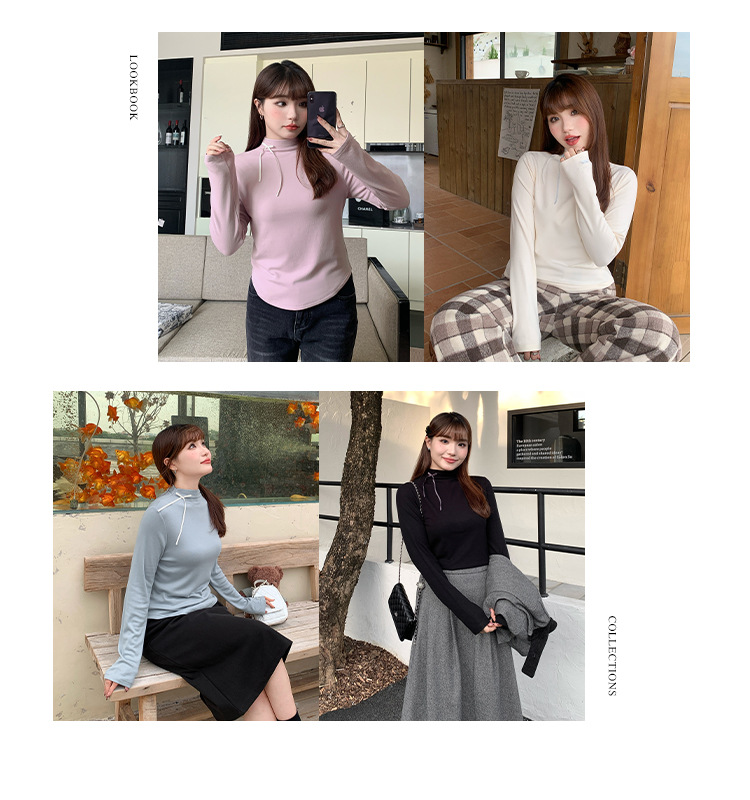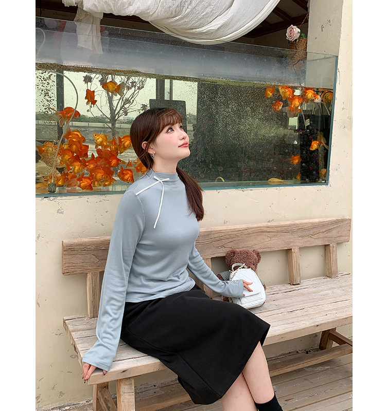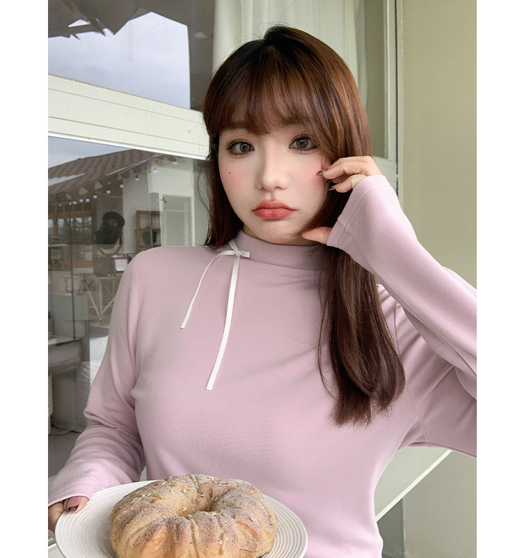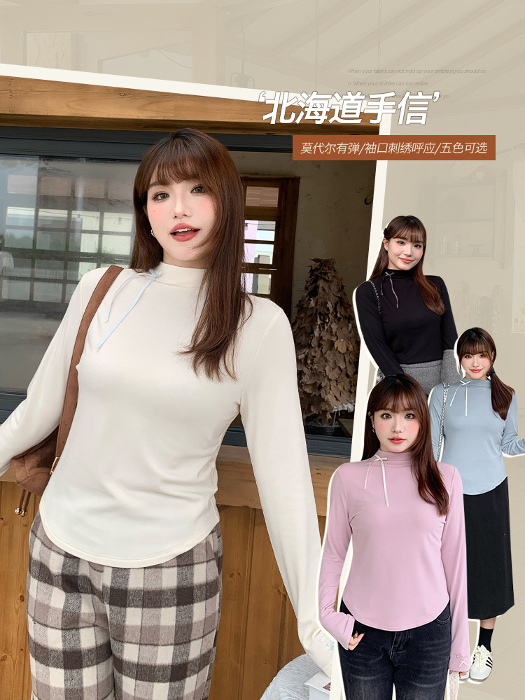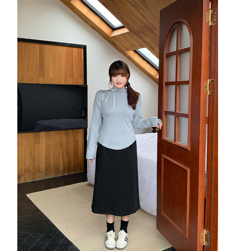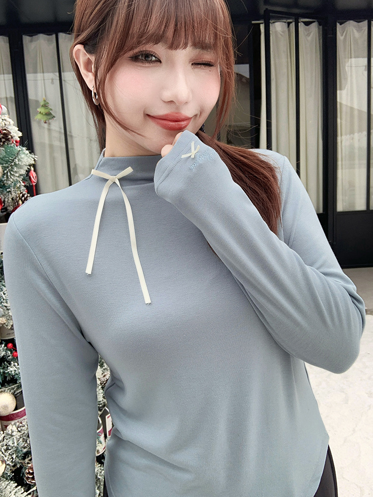 Свитер с воротником-стойкой и бантом, весенний, больших размеров, женская одежда, облегающий трикотаж с воротником-стойкой 63646