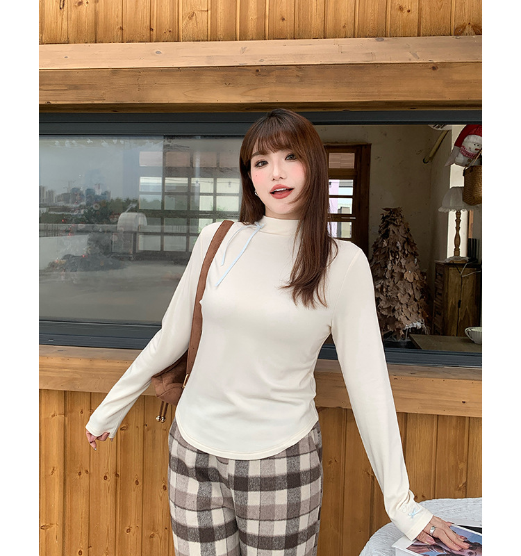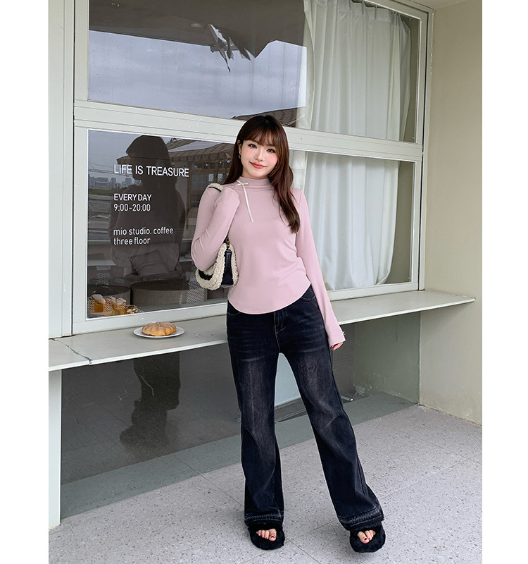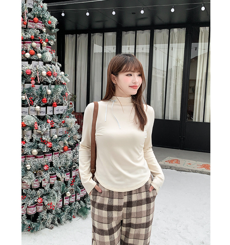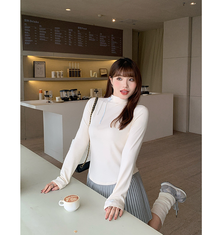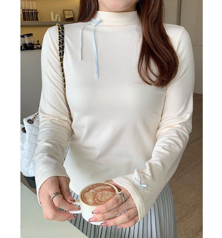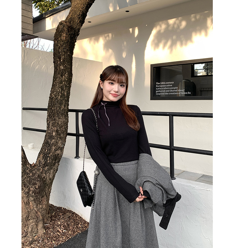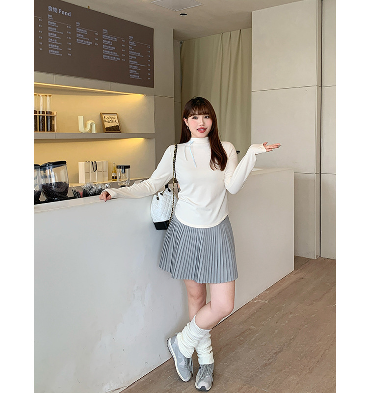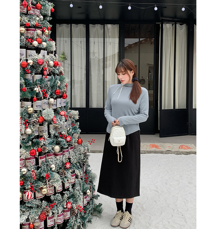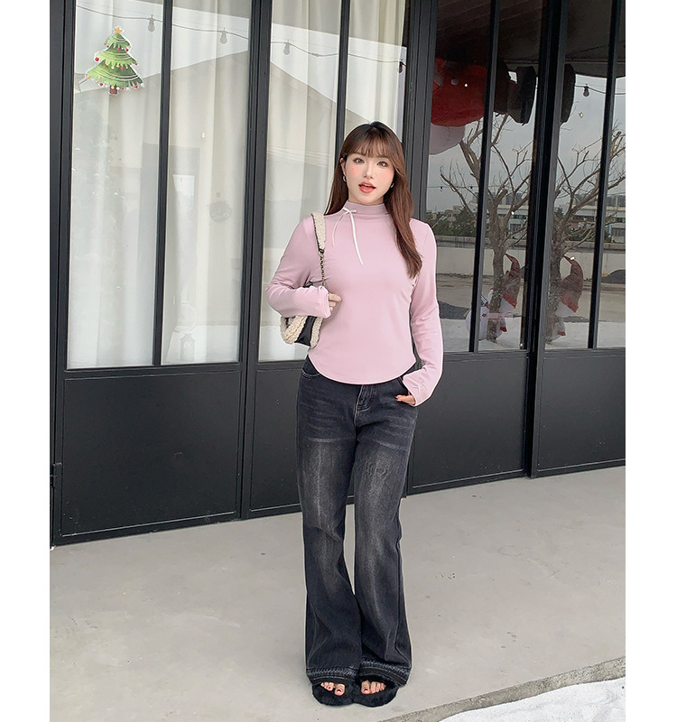 Свитер с воротником-стойкой и бантом, весенний, больших размеров, женская одежда, облегающий трикотаж с воротником-стойкой 63646
