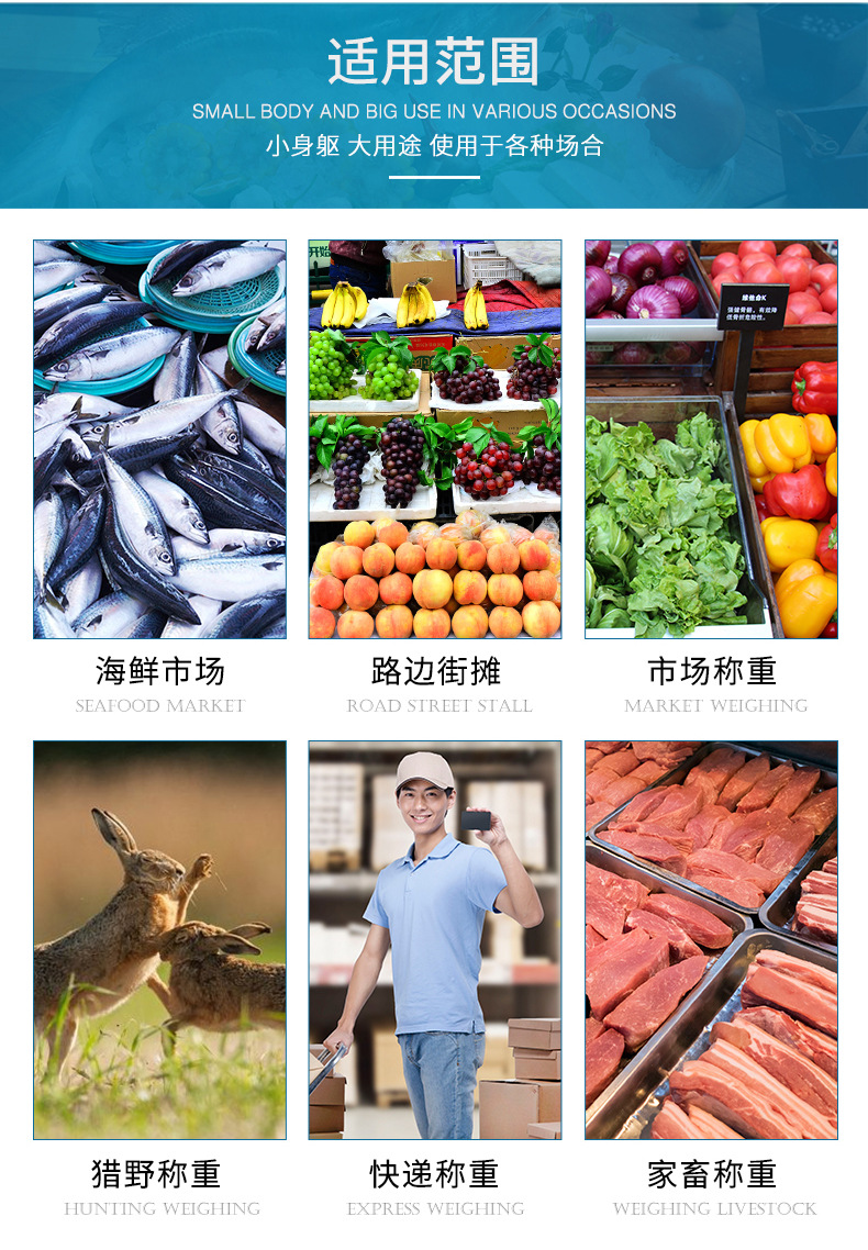 3. 量程:500kg/100g(上可称量500kg,分度值0.1kg,下可称量0.2kg,误差0.1-0.3kg)