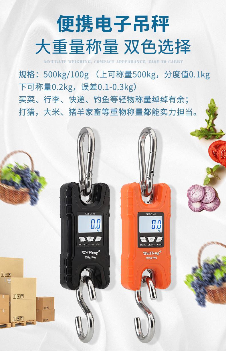 Wei Heng C500 500kg Электронные крановые весы 500 кг Электронные подвесные весы Крановые весы Портативные ручные весы с крючком
