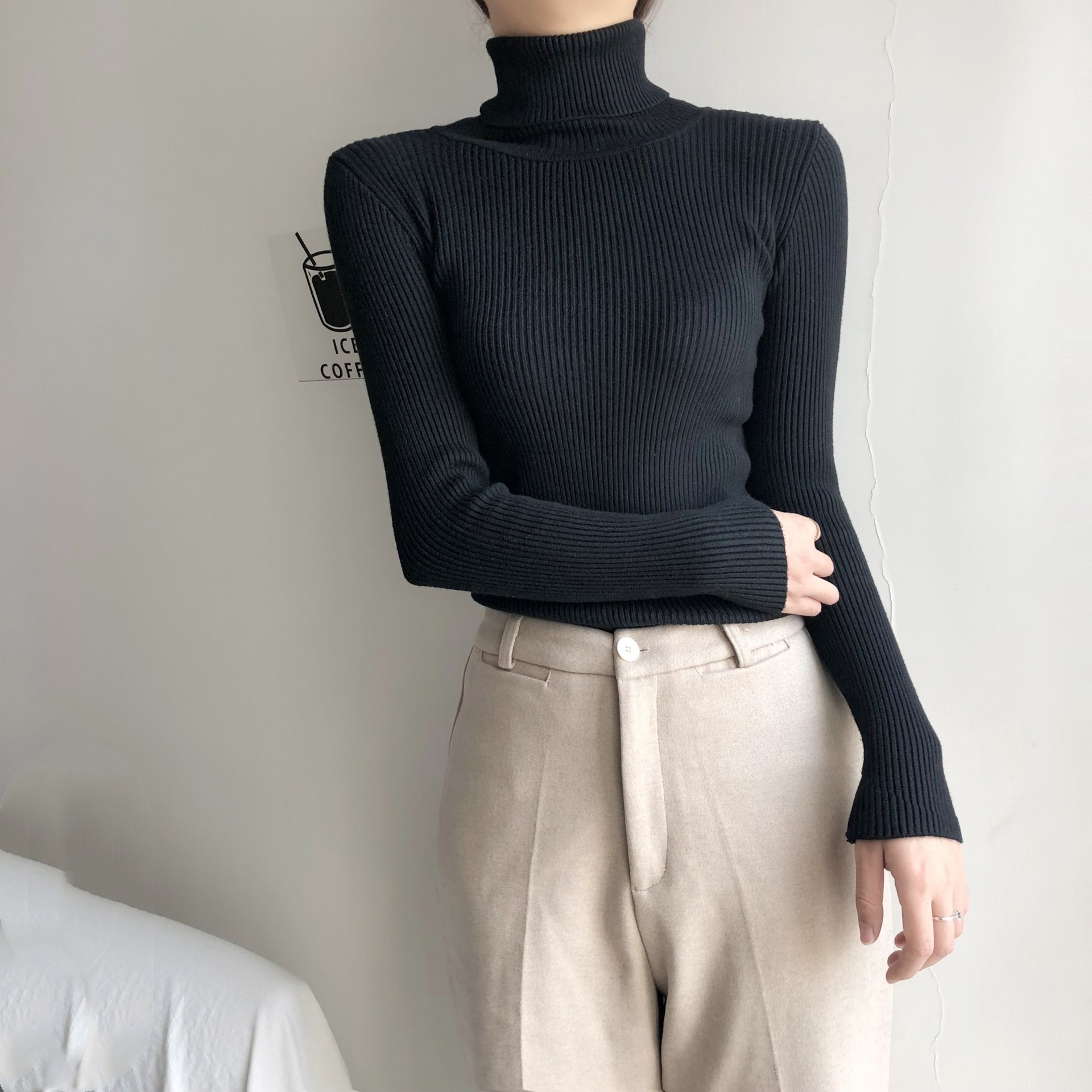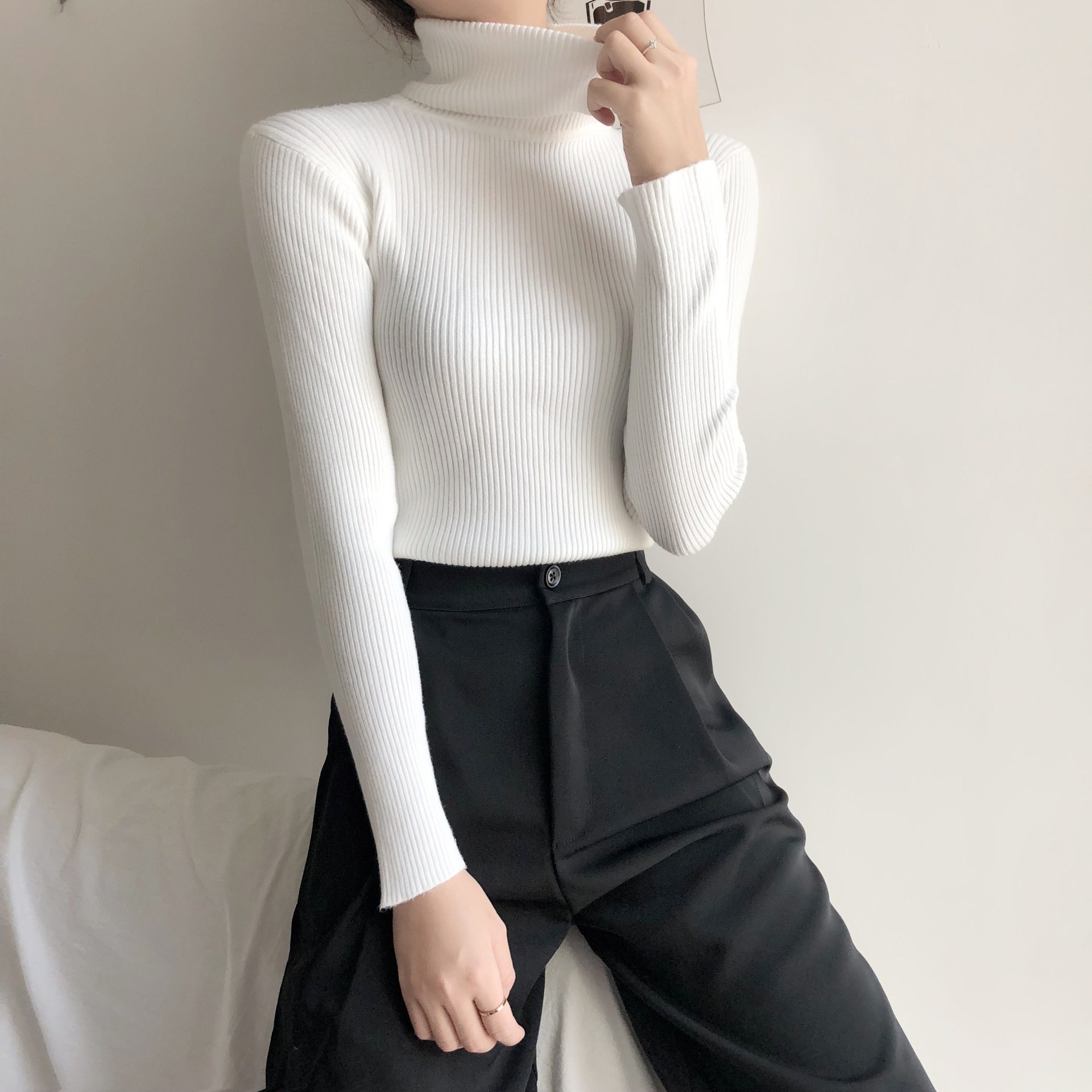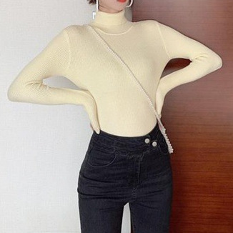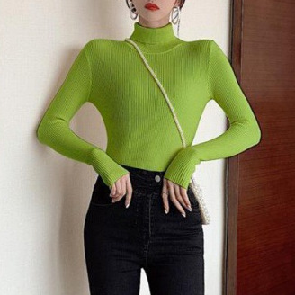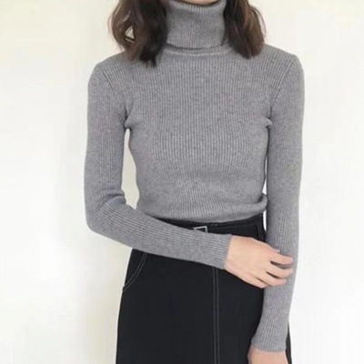 2025 осень-зима новый стиль ins свитер с высоким воротником сплошной цвет топ с длинными рукавами