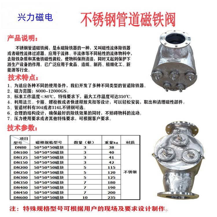Трубопровод с постоянным магнитом для удаления железа фланец жидкости 304 бумажная пищевая фабрика фармацевтическая нержавеющая сталь магнит фильтр отлично