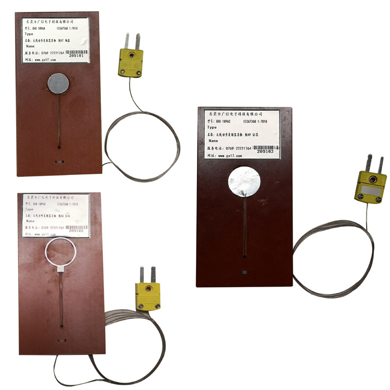 产品概述:金属异物温升试验套件是为了满足IEC62368 &GB4943 标准设计制造,用于检测无线功率发射器在工作时,对放置发射器上或者附近的金属异物的加热情况,防止因为高温产生灼伤。