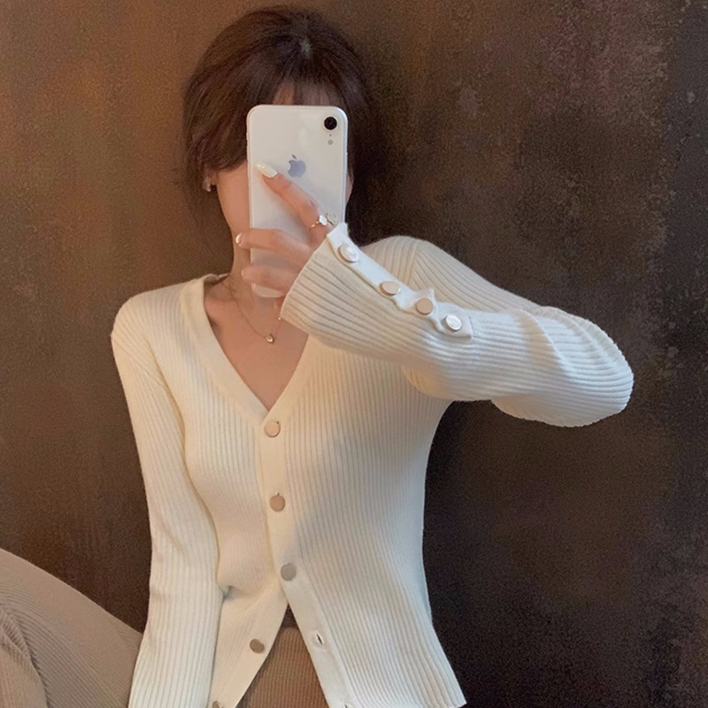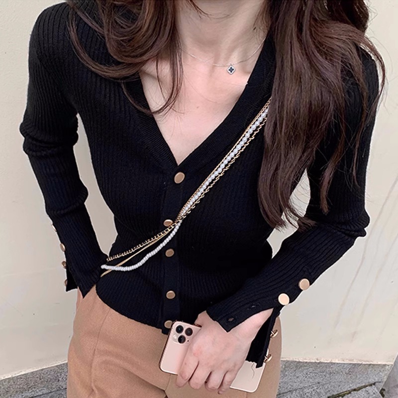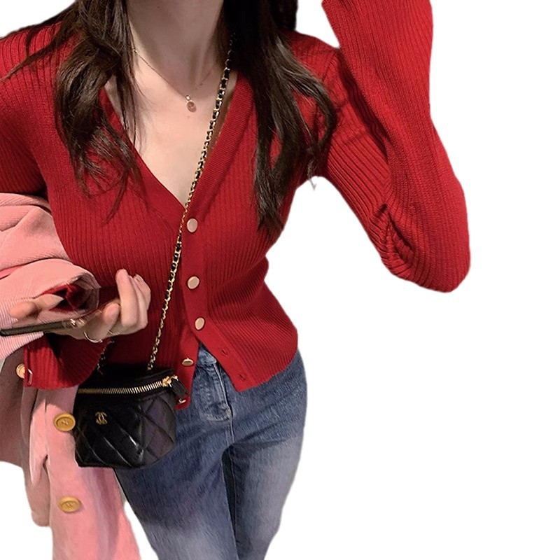 Трикотажная нижняя рубашка с V-образным вырезом 2024 осенне-зимний дизайн