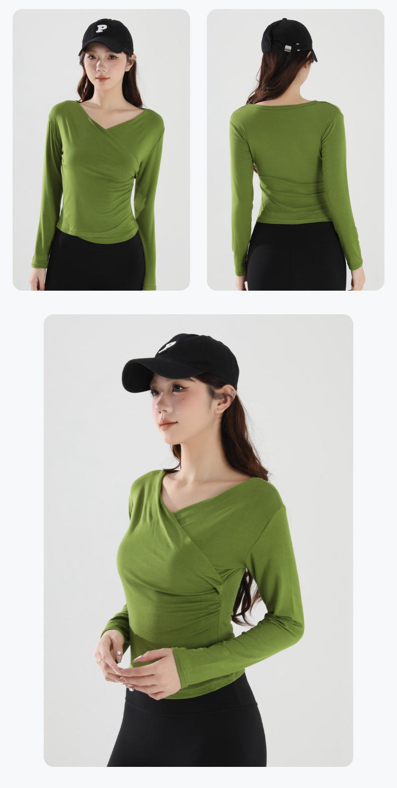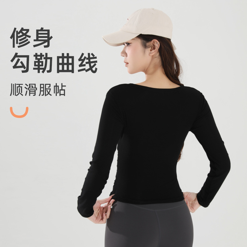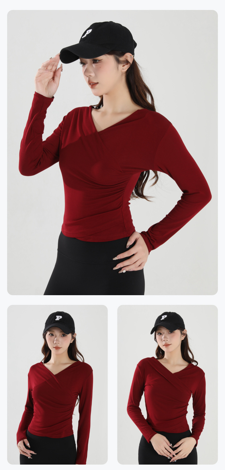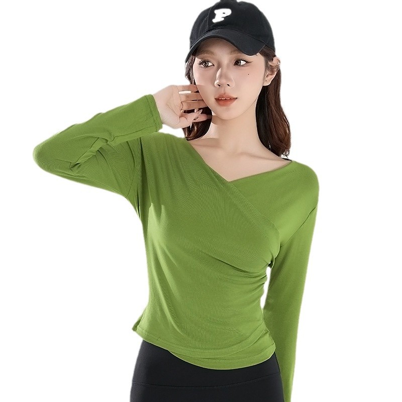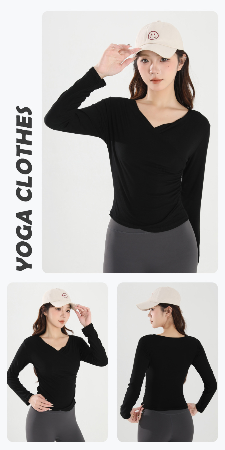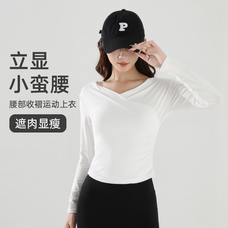 Новая осенне-зимняя одежда для йоги: футболка с длинным рукавом и плиссированной талией, облегающая и удобная, подходит для бега, тренировок и занятий фитнесом на открытом воздухе.
