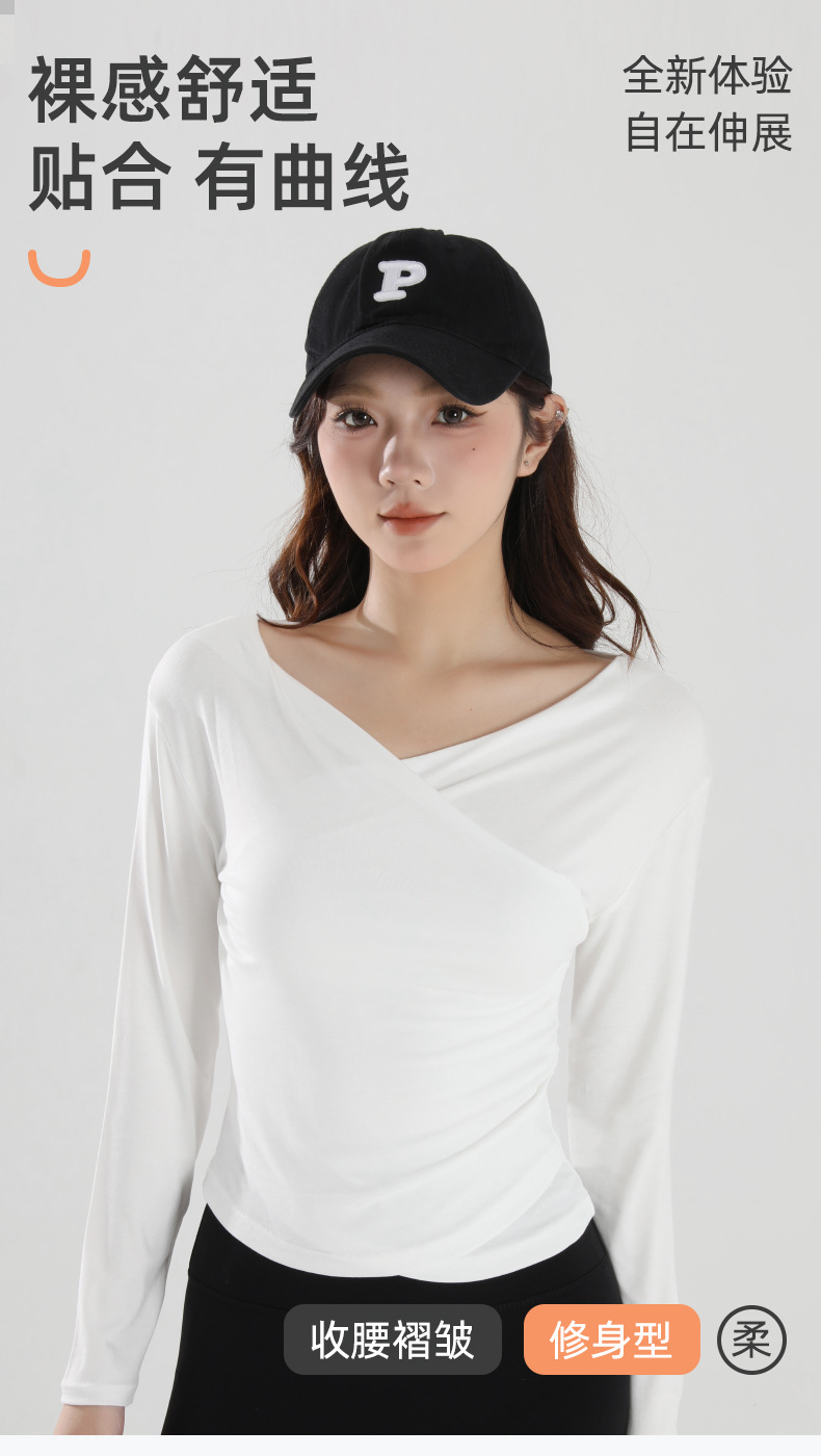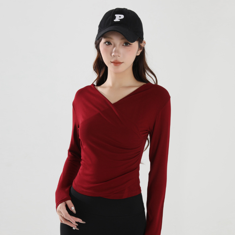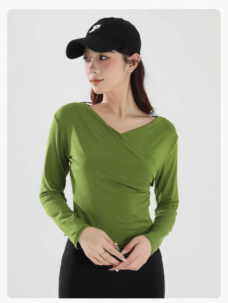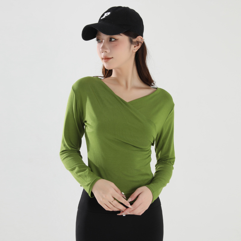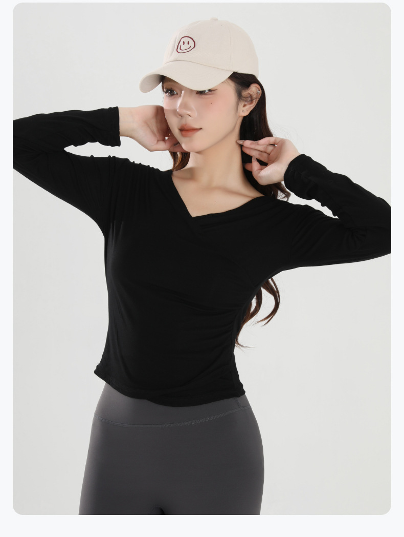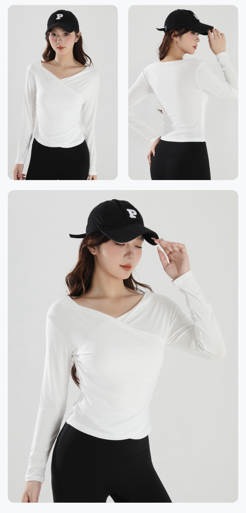 Новая осенне-зимняя одежда для йоги: футболка с длинным рукавом и плиссированной талией, облегающая и удобная, подходит для бега, тренировок и занятий фитнесом на открытом воздухе.