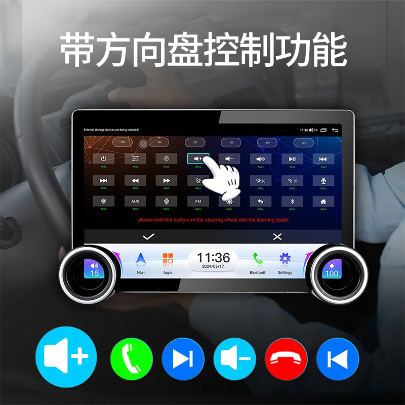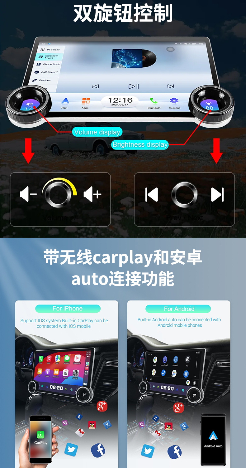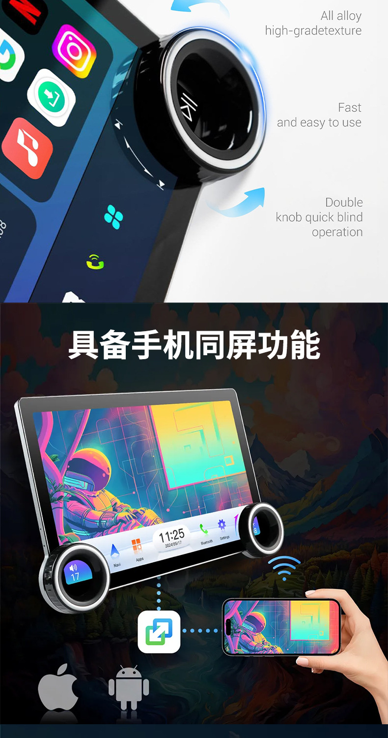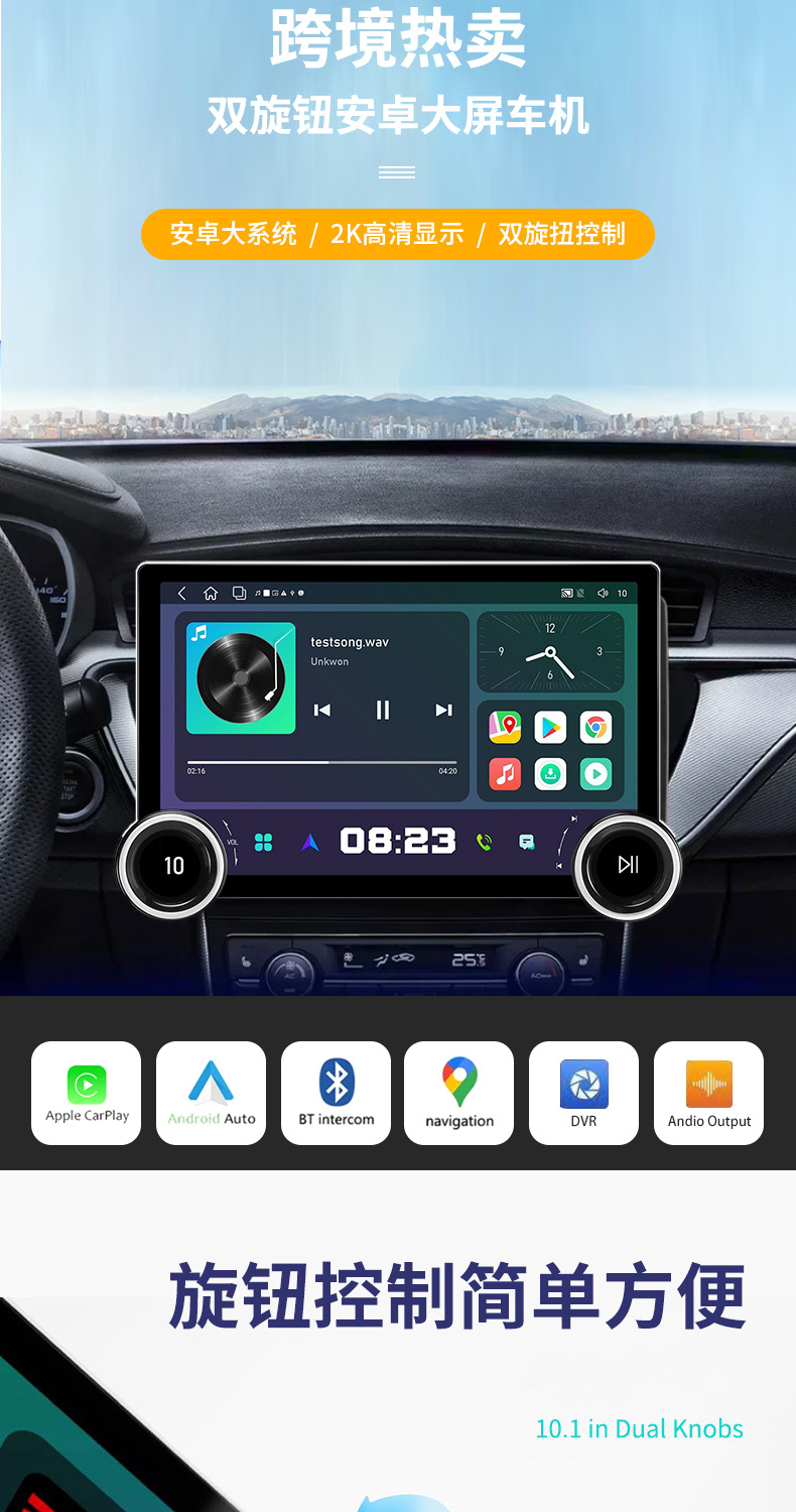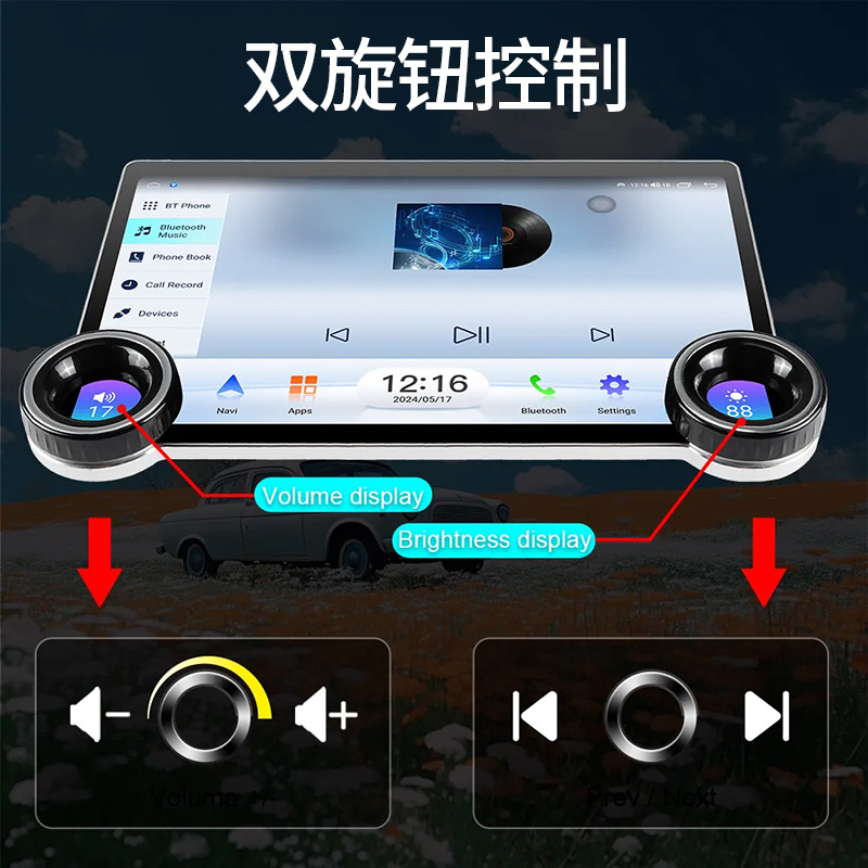 Многофункциональный автомобильный видеорегистратор 2K с большим экраном, двумя поворотными регуляторами, GPS-навигацией и беспроводным CarPlay для трансграничной торговли