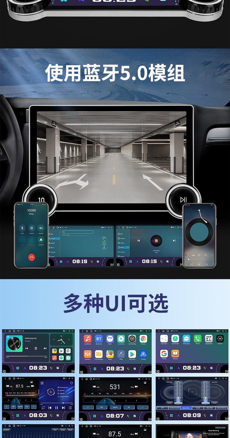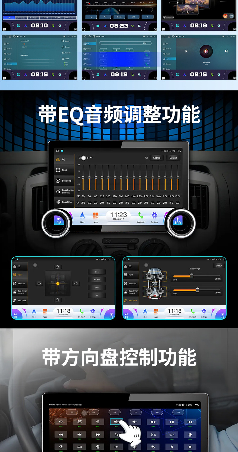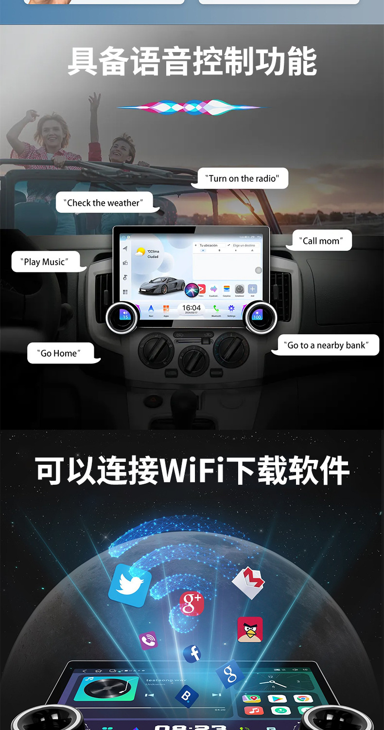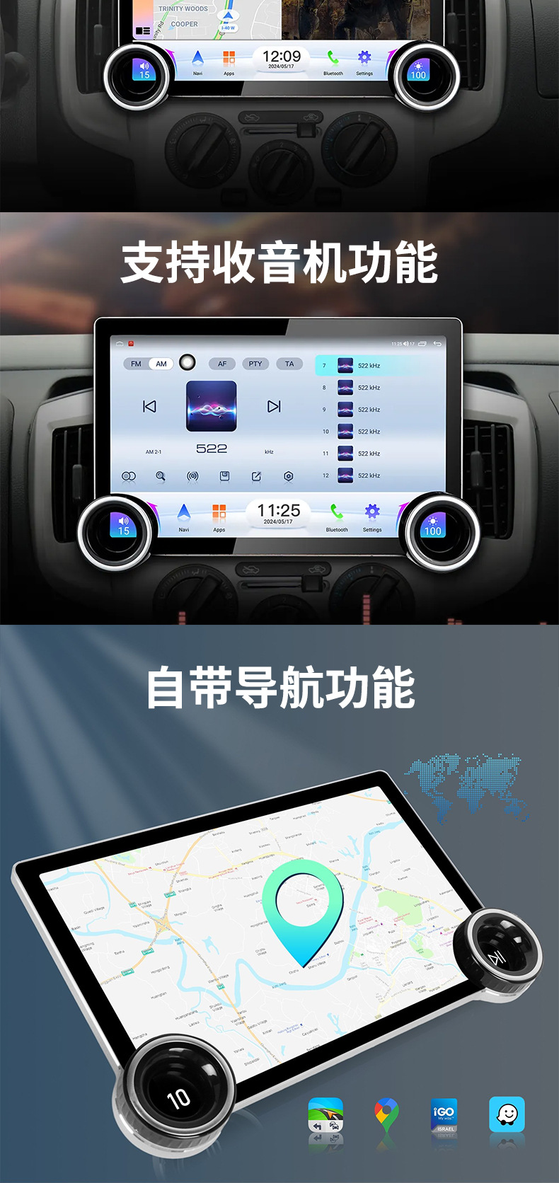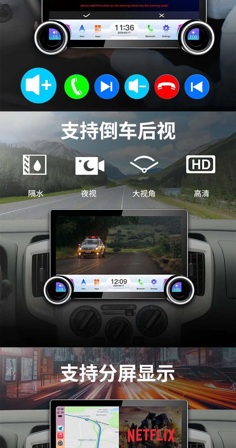 Многофункциональный автомобильный видеорегистратор 2K с большим экраном, двумя поворотными регуляторами, GPS-навигацией и беспроводным CarPlay для трансграничной торговли