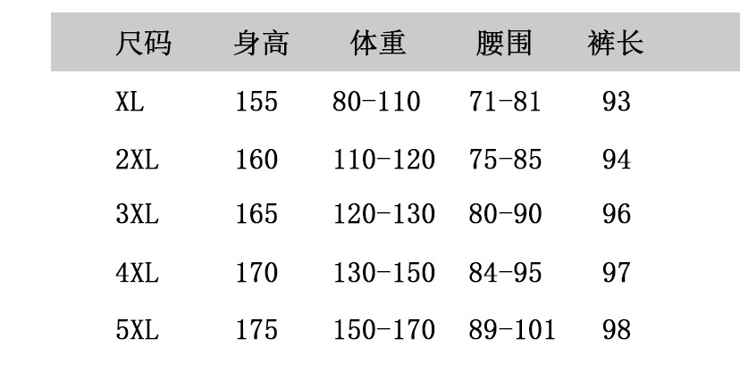 XL (рекомендуется 42.5-55kg); 2XL (рекомендуется 55-62.5kg); 3XL (рекомендуется 62.5-70kg); 4XL (рекомендуется 70-77.5kg); 5XL (рекомендуется 77.5-87.5kg)