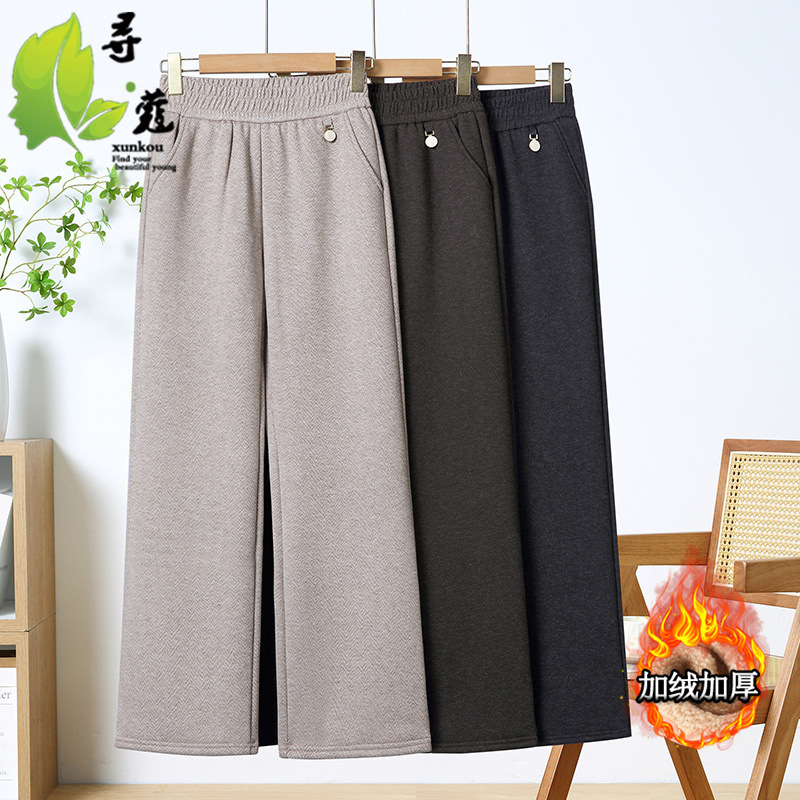 Новые женские брюки среднего возраста осенью и зимой плюшевые шерстяные брюки носят зимнюю одежду мама брюки 60 лет среднего и пожилого возраста одежда повседневная