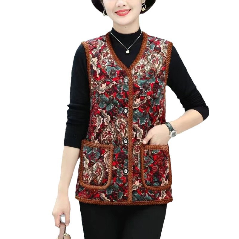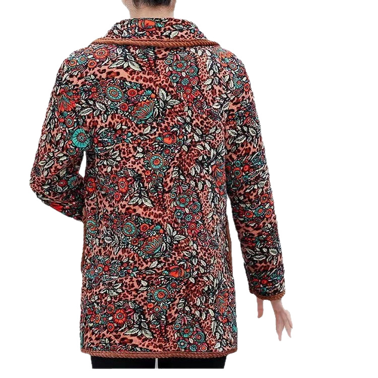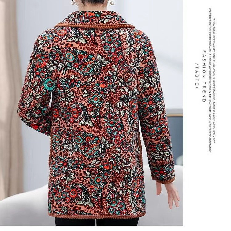 A Женщины среднего и пожилого возраста зимняя хлопчатобумажная куртка зимняя толстая и бархатная теплая куртка для пожилых людей с принтом