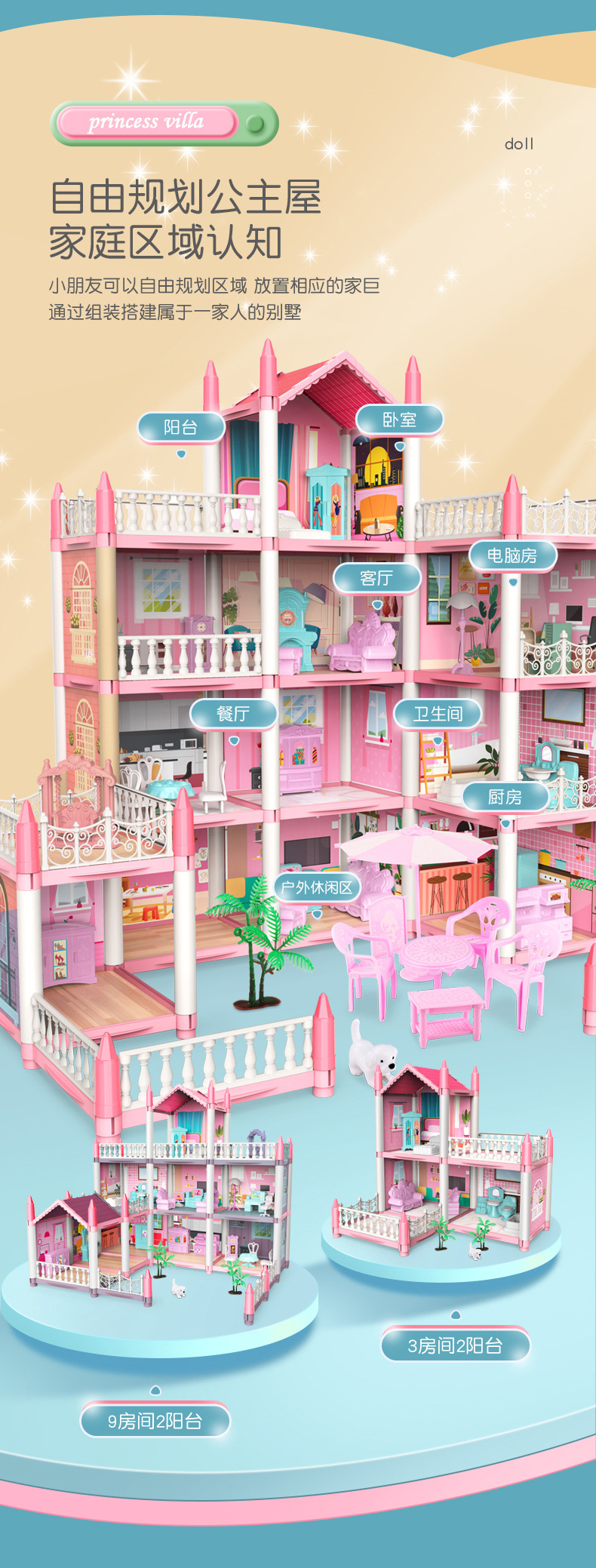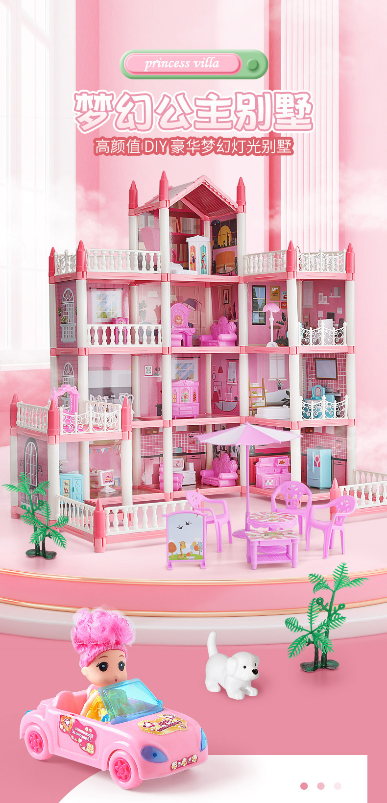 Розовый-2 спальни и 1 терраса [второй пол вилла] бесплатно 1 лампа 2 куклы; Розовый — 3 спальни, 2 террасы [вторая напольная вилла] бесплатно 1 лампа и 2 куклы.; Розовый — 4 спальни [другая вилла] бесплатно 1 лампа 2 куклы; Розовый-5 спален, 2 террасы [второй пол, вилла] бесплатно 1 лампа, 2 куклы; Розовый – 9 спален, 2 террасы [трехслойная вилла] бесплатно 2 фонаря и 3 куклы.; Розовый - 11 спален, 3 террасы [четырехслойная вилла] бесплатно 2 фонаря и 4 куклы; Розовый - 14 спален, 2 террасы [четырехслойная вилла] бесплатно 2 фонаря и 4 куклы