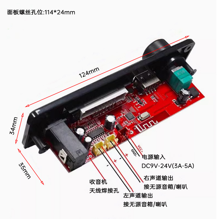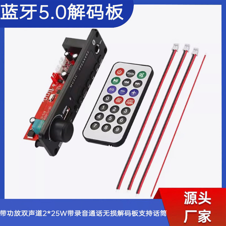 蓝牙5.0解码板带功放双声道2*25W带录音通话无损解码板支持话筒
