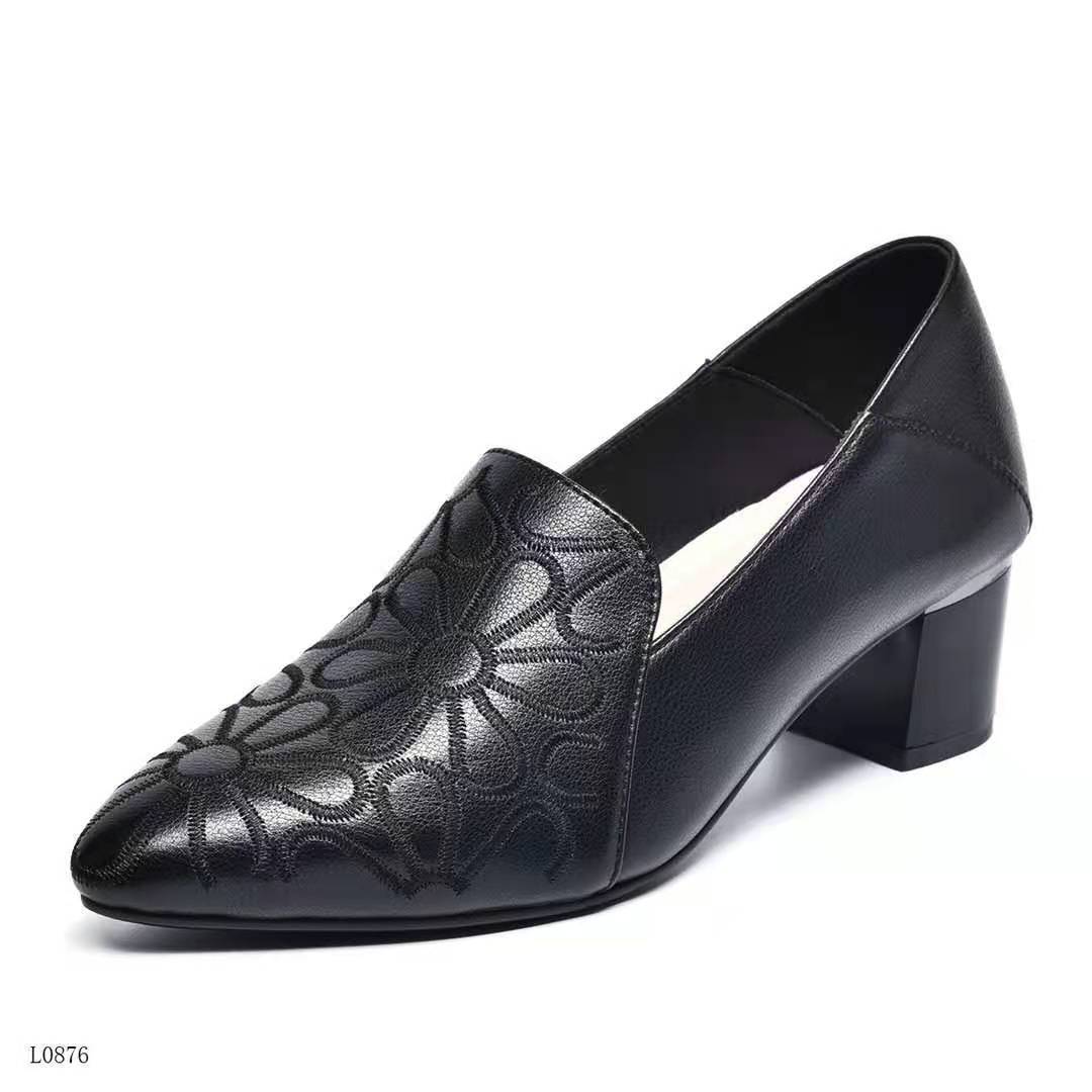 2024 Весна и осень Модные рабочие туфли на среднем каблуке с глубоким ртом и острым носком на среднем каблуке Интернет-знаменитости Популярные одинарные туфли на танкетке с вышивкой на весну и осень для женщин