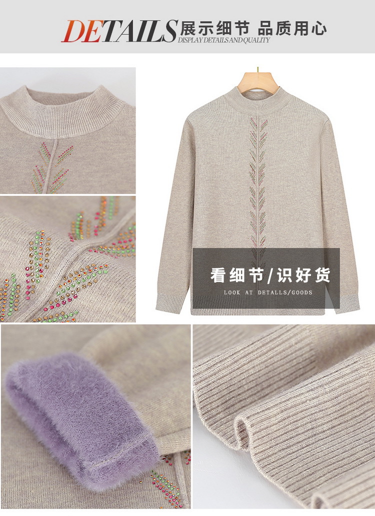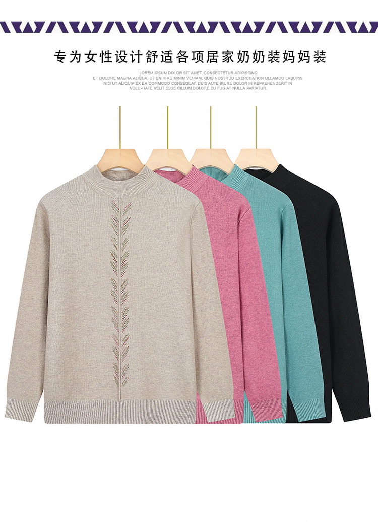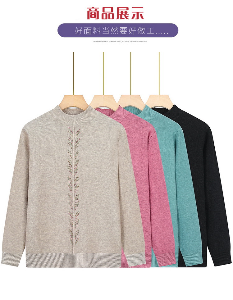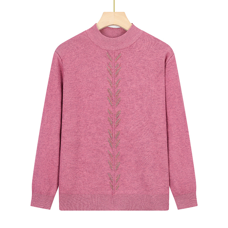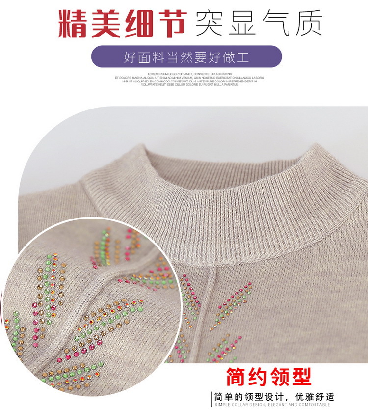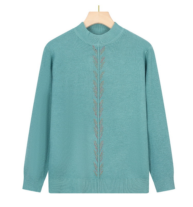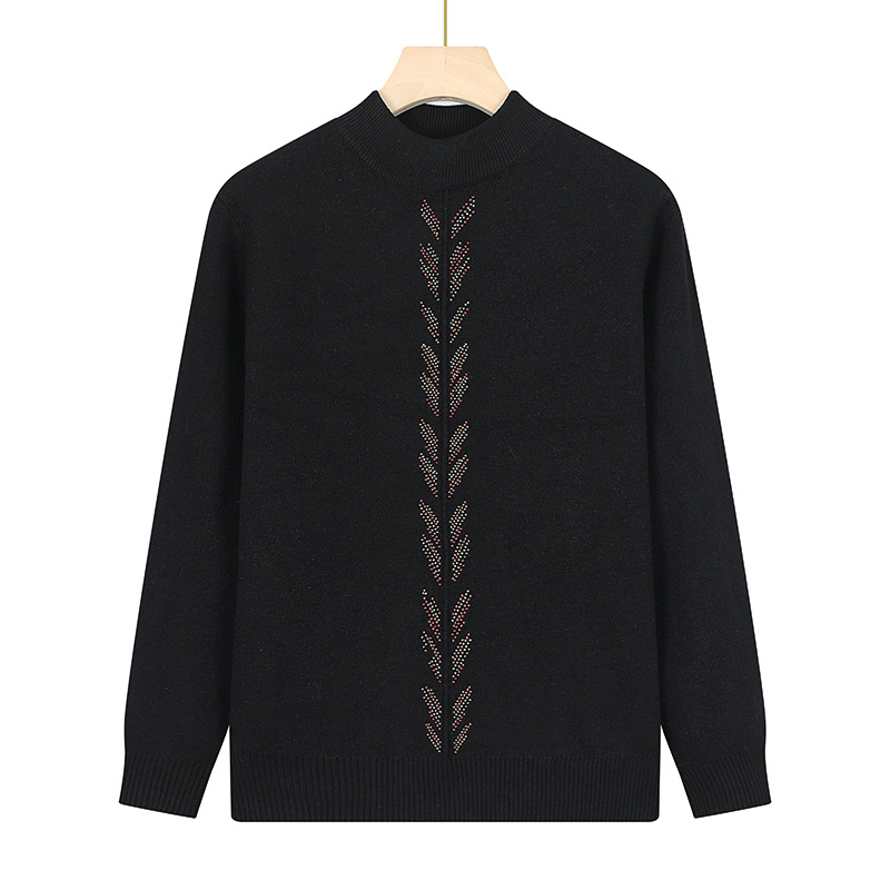 Осенне-зимняя базовая рубашка для женщин среднего возраста, одежда для молодых мам, однотонный топ с декором из страз, трикотаж для женщин среднего и старшего возраста.